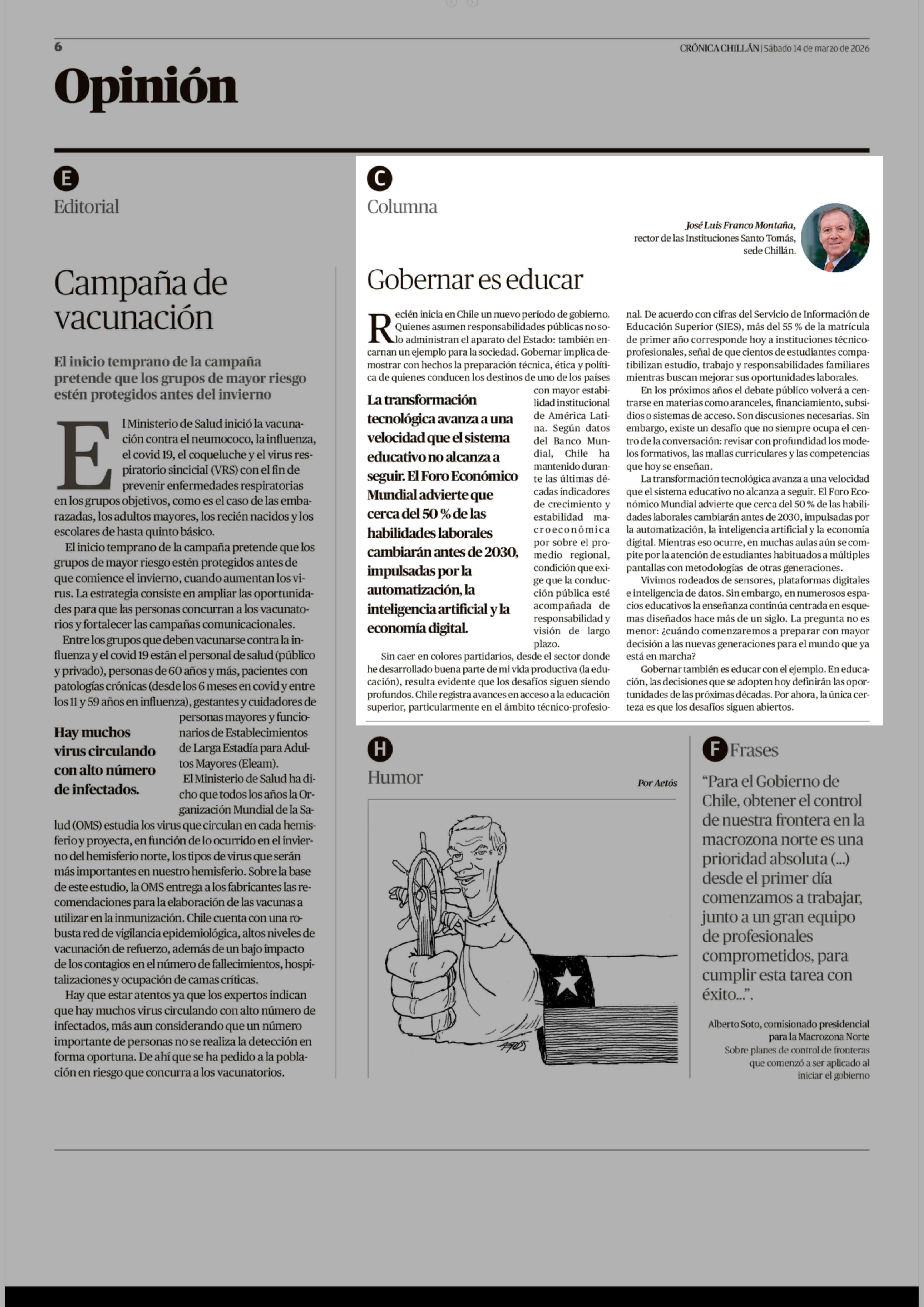 Fecha: 14-03-2026 Sector: Columnas de Opinión Región: Región del Ñuble