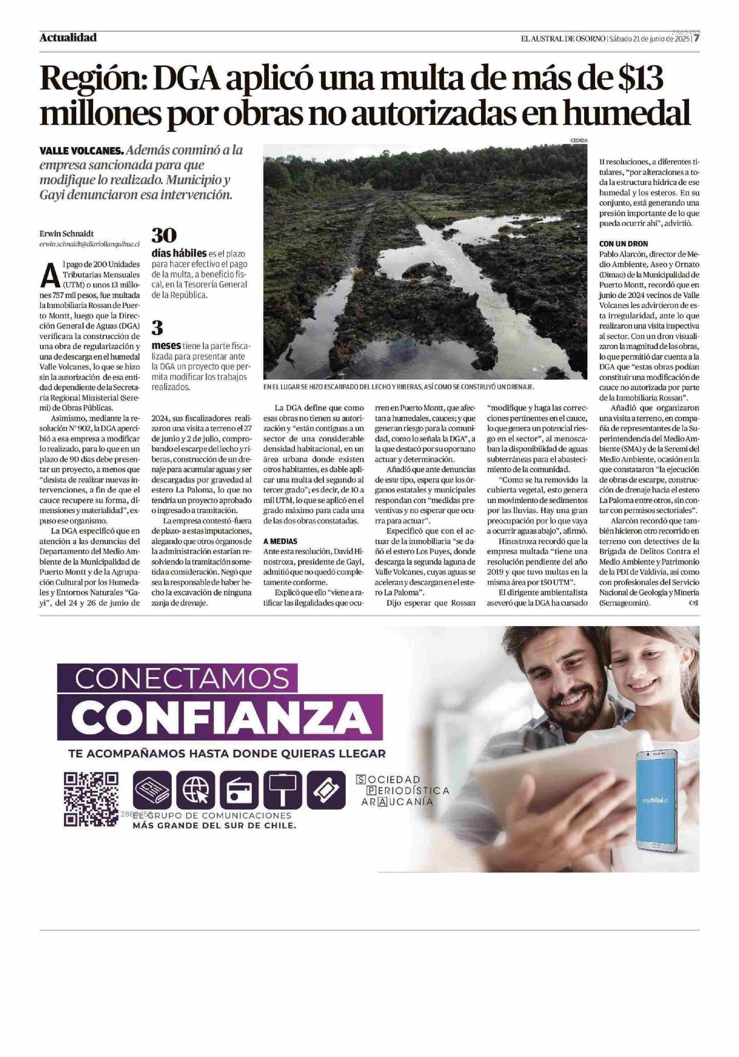 Región: DGA aplicó una multa de más de $13 millones por obras no autorizadas en humedal 21-06-2025 El Austral de Osorno |