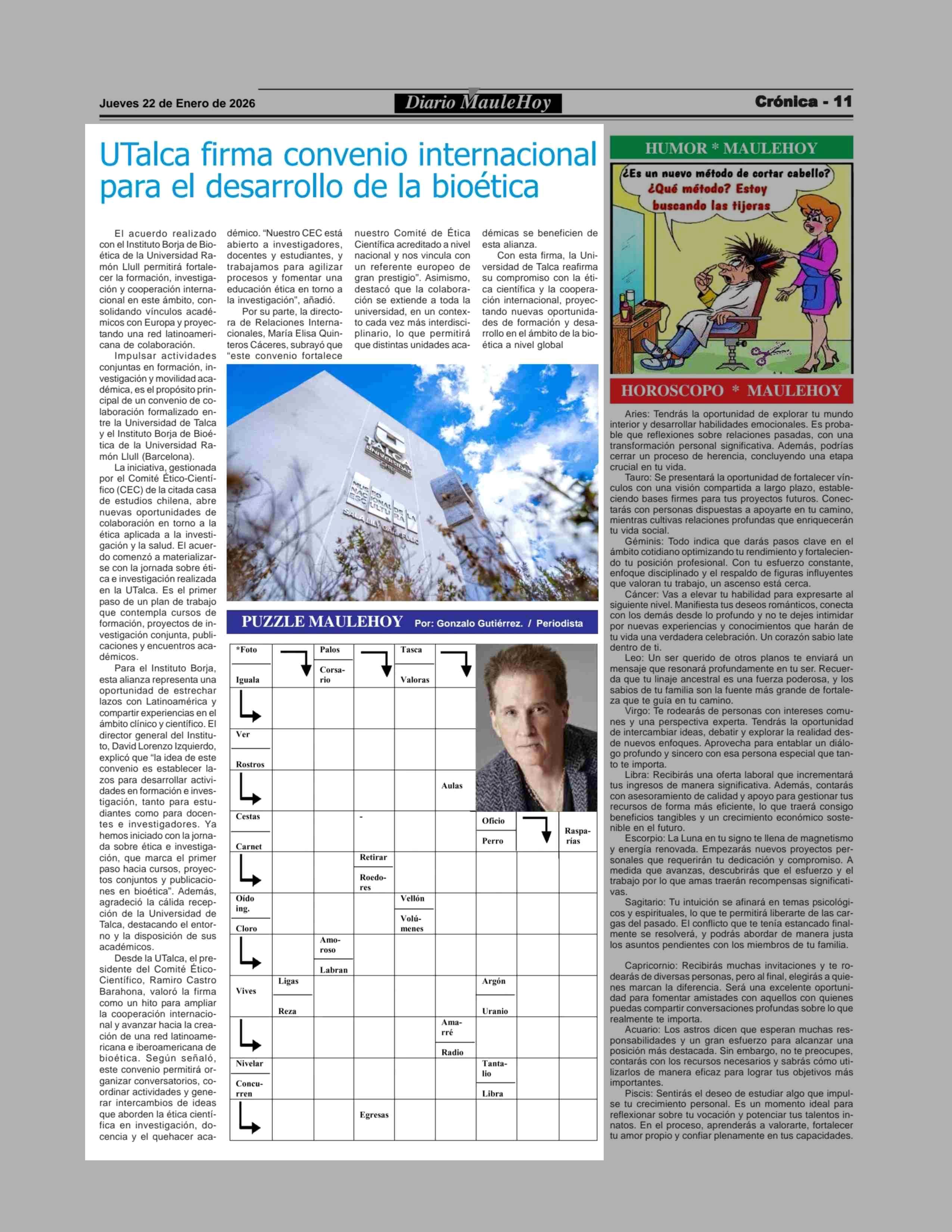 UTalca firma convenio internacional para el desarrollo de la bioética 22-01-2026 Maule Hoy |