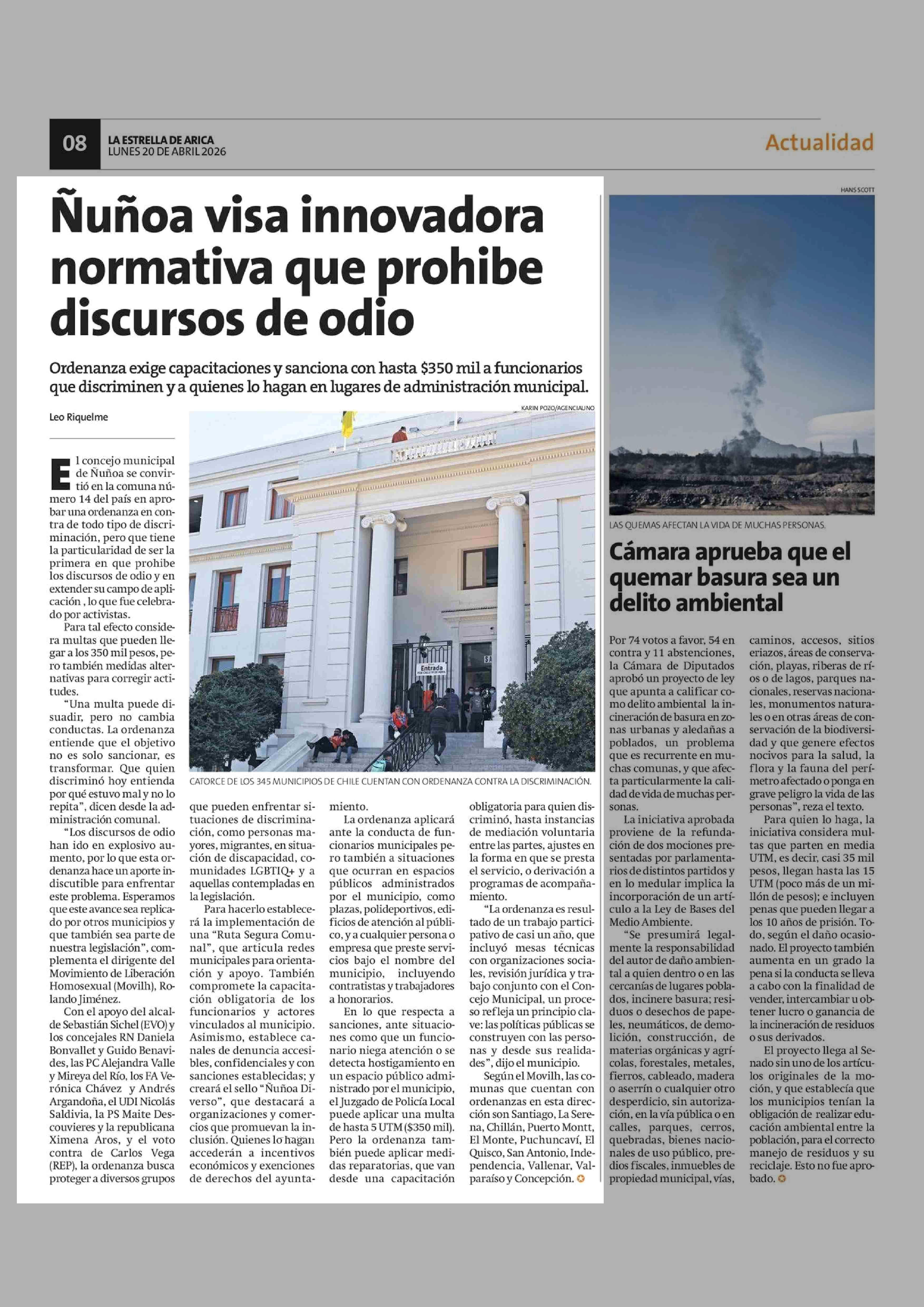 Ñuñoa visa innovadora normativa que prohibe 20-04-2026 La Estrella de Arica |