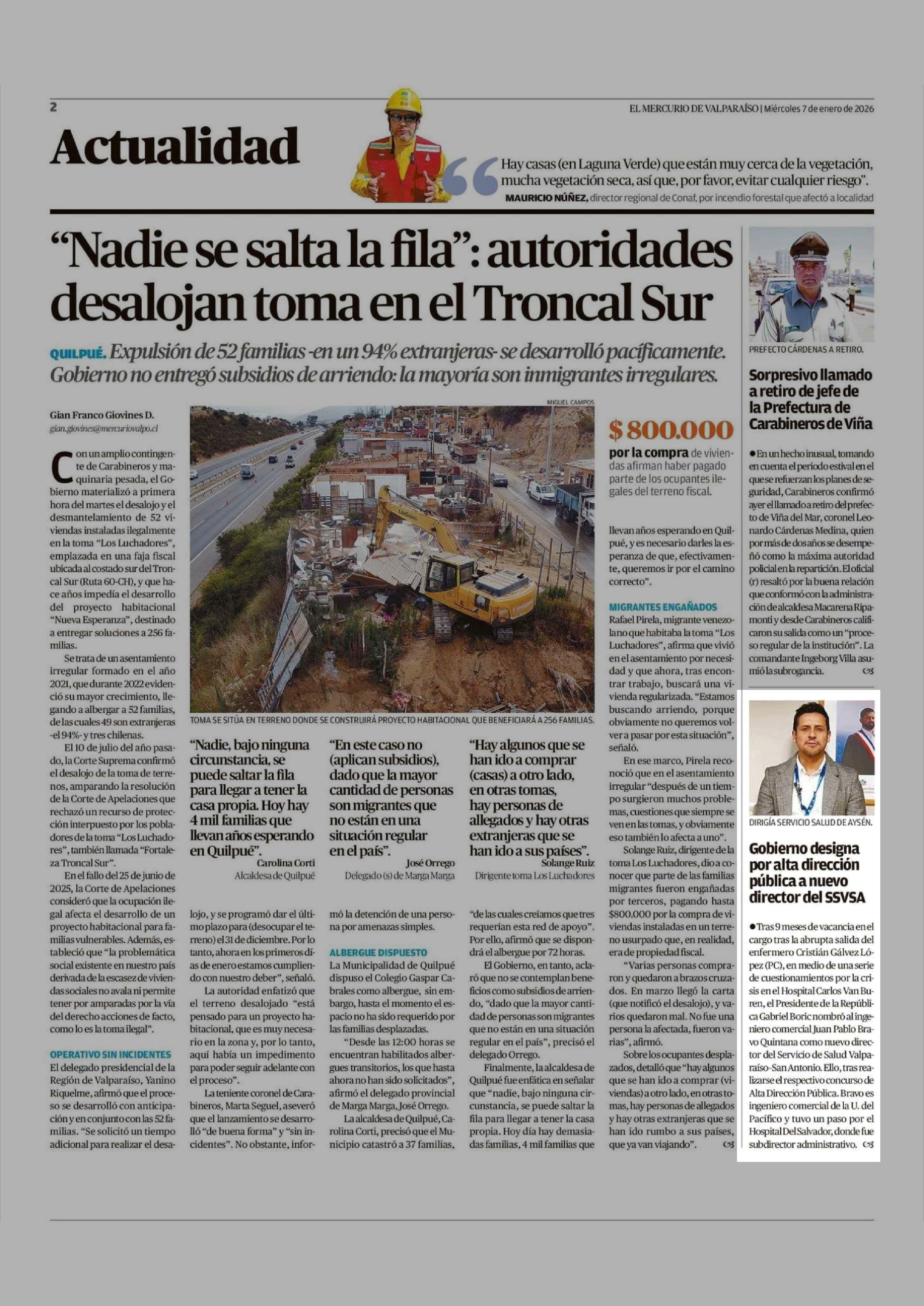 Gobierno designa por alta dirección pública a nuevo director del SSVSA 07-01-2026 El Mercurio de Valparaíso |