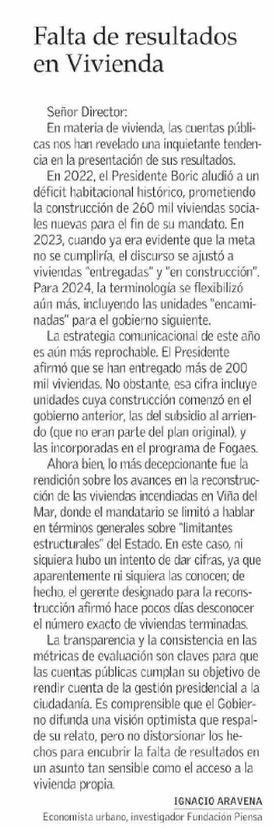 CARTAS: Falta de resultados en Vivienda 02-06-2025 El Mercurio |