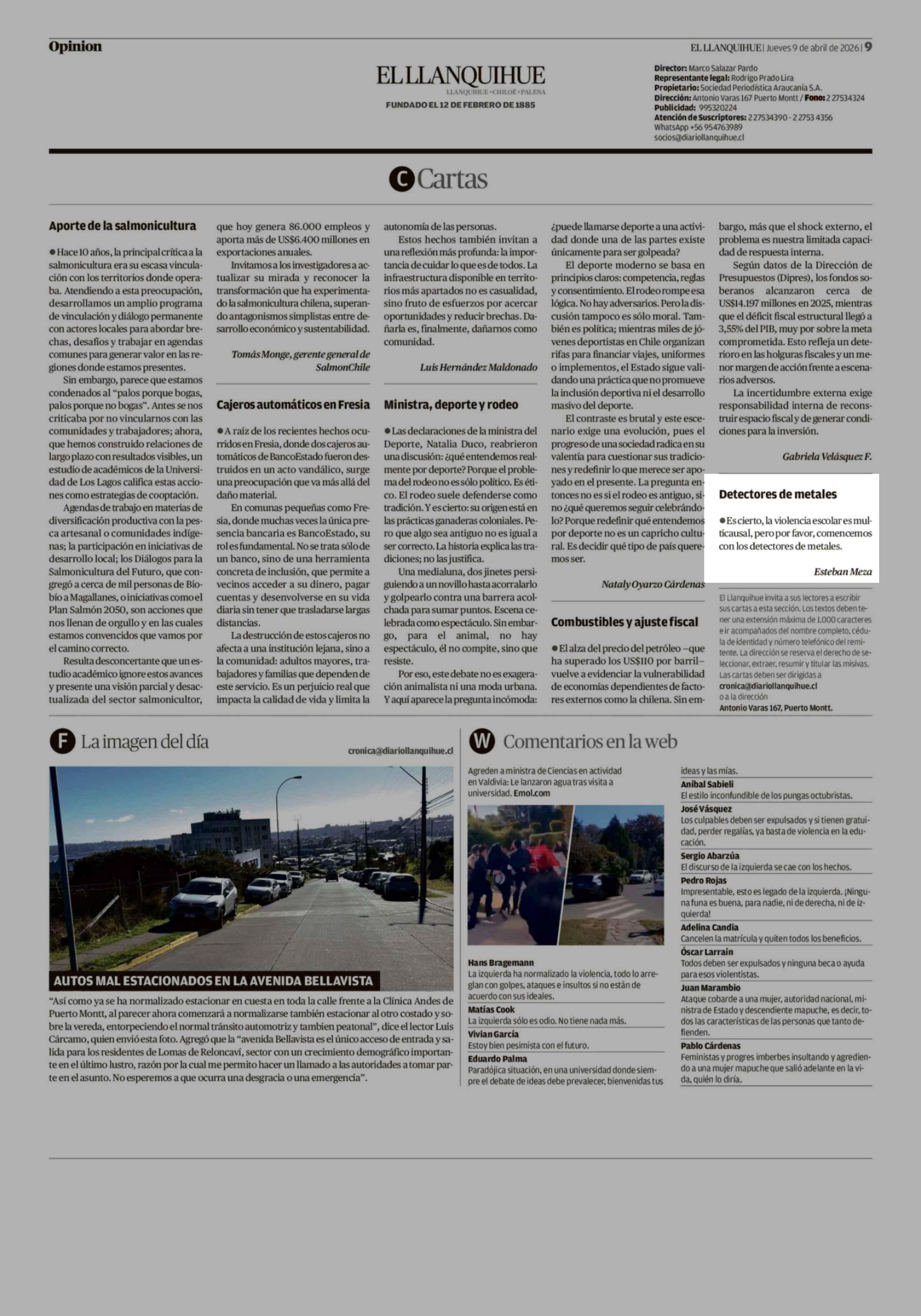 Cartas: Detectores de metales 09-04-2026 El Llanquihue |
