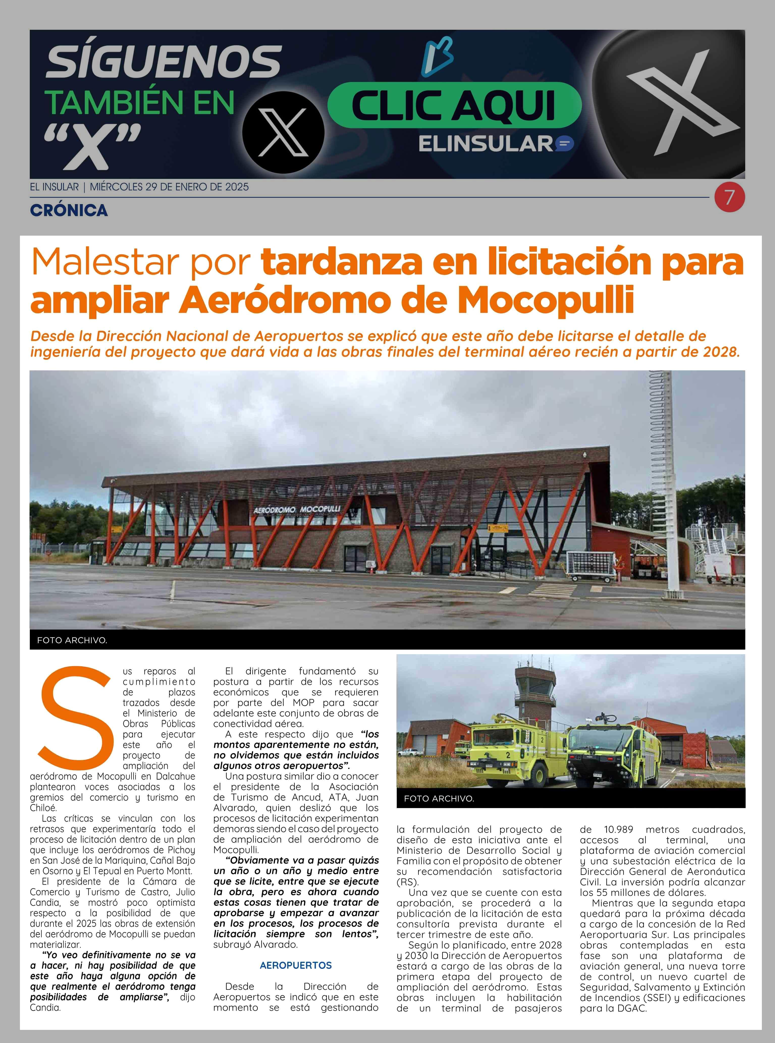 Malestar por tardanza en licitación para ampliar Aeródromo de Mocopulli 29-01-2025 El Insular |