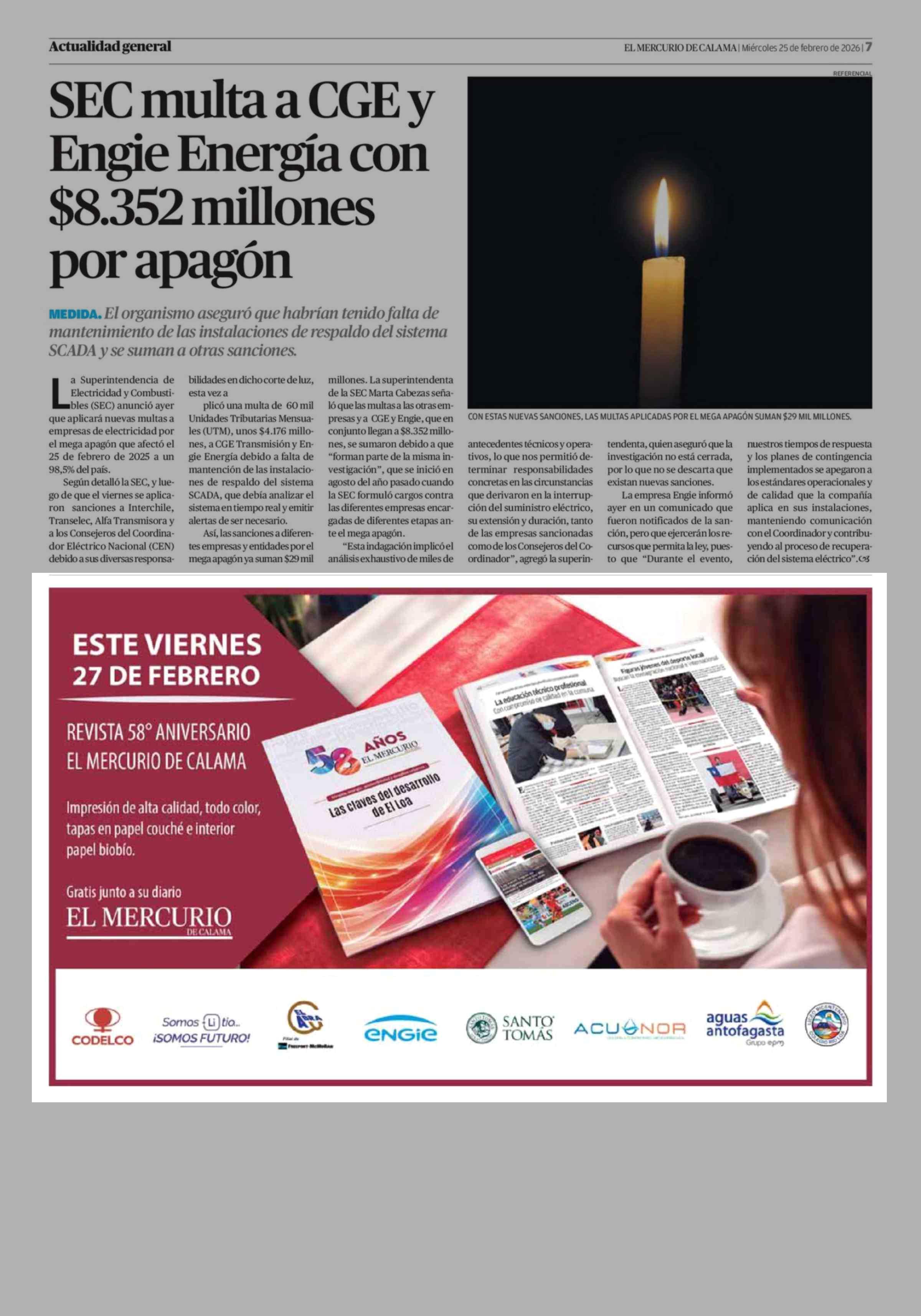 Aviso Publicitario: REVISTA 58° ANIVERSARIO EL MERCURIO DE CALAMA