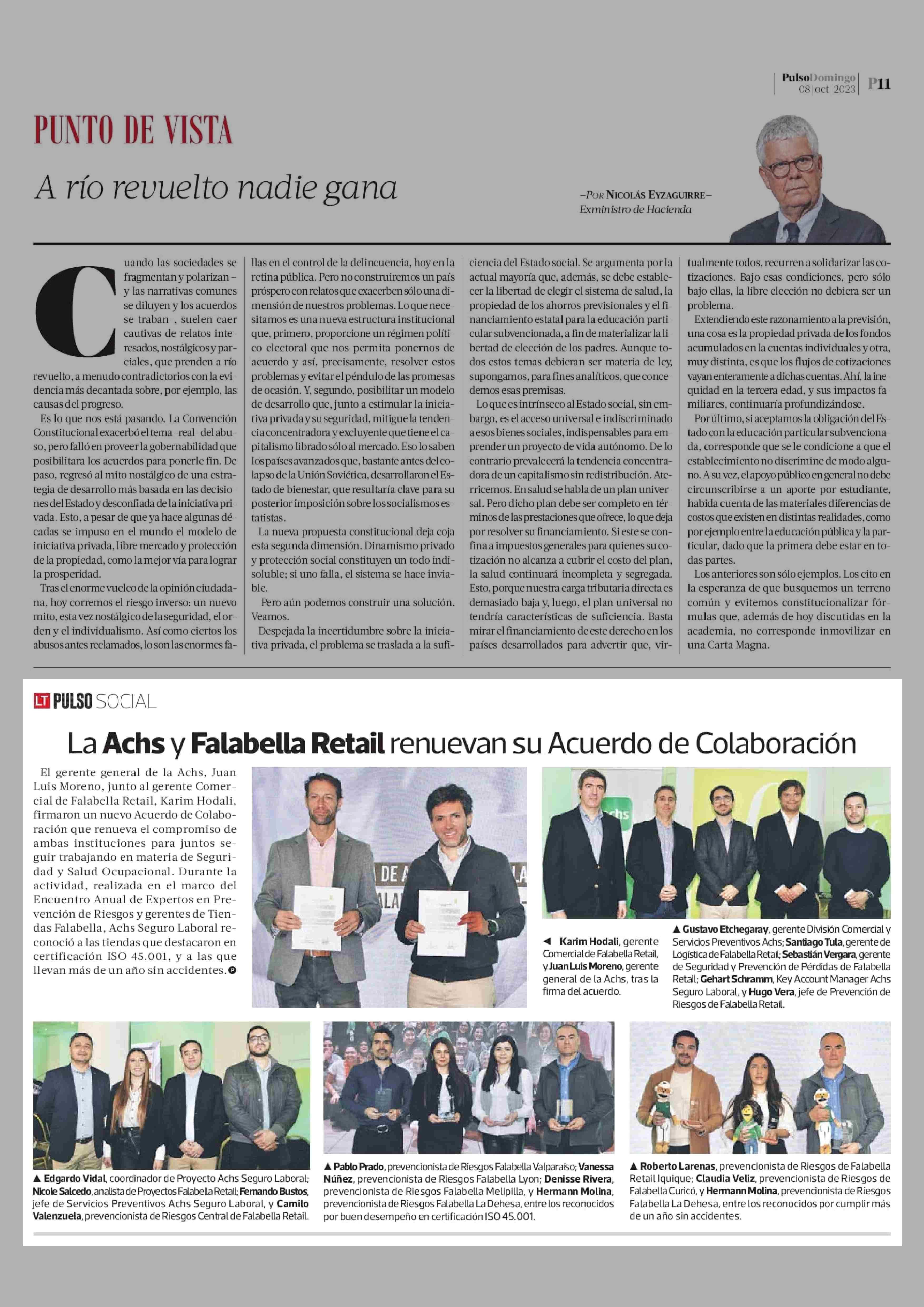 La Achs y Falabella Retail renuevan su Acuerdo de Colaboración 08-10-2023 La Tercera |