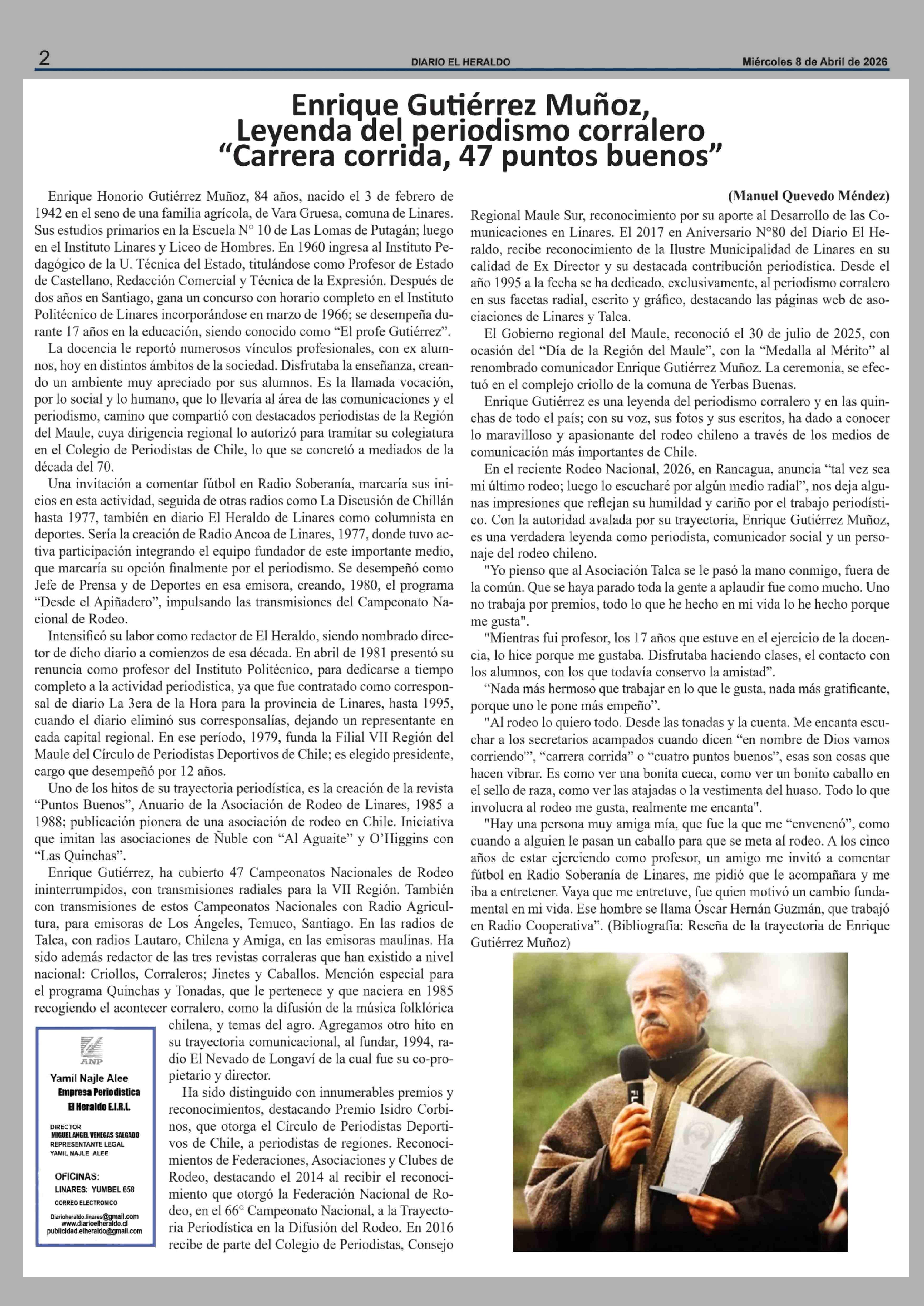 Título: Enrique Gutiérrez Muñoz, Leyenda del periodismo corralero "Carrera corrida, 47 puntos buenos"