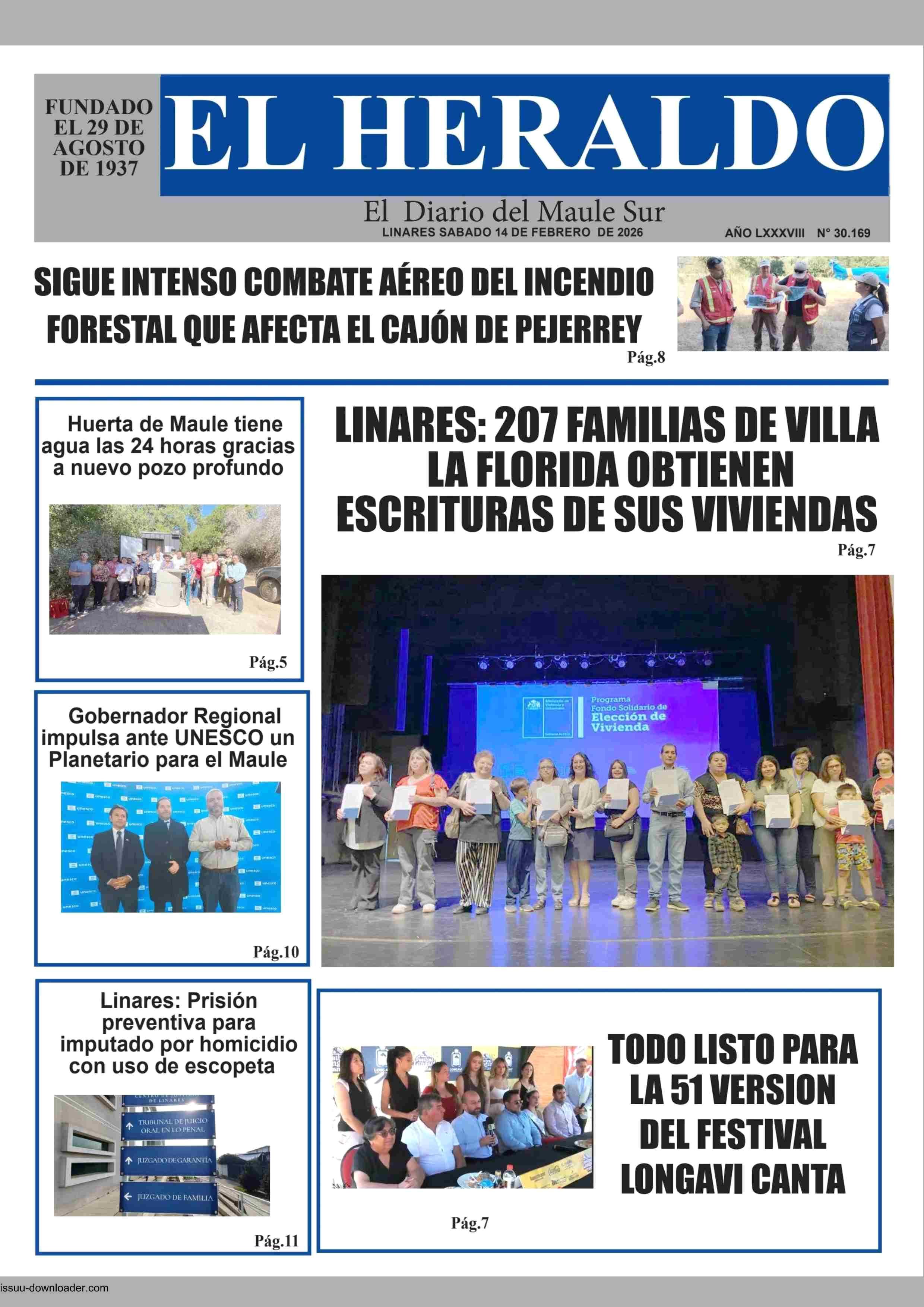 PORTADA EL HERALDO DE LINARES CHILE 14-02-2026 El Heraldo |