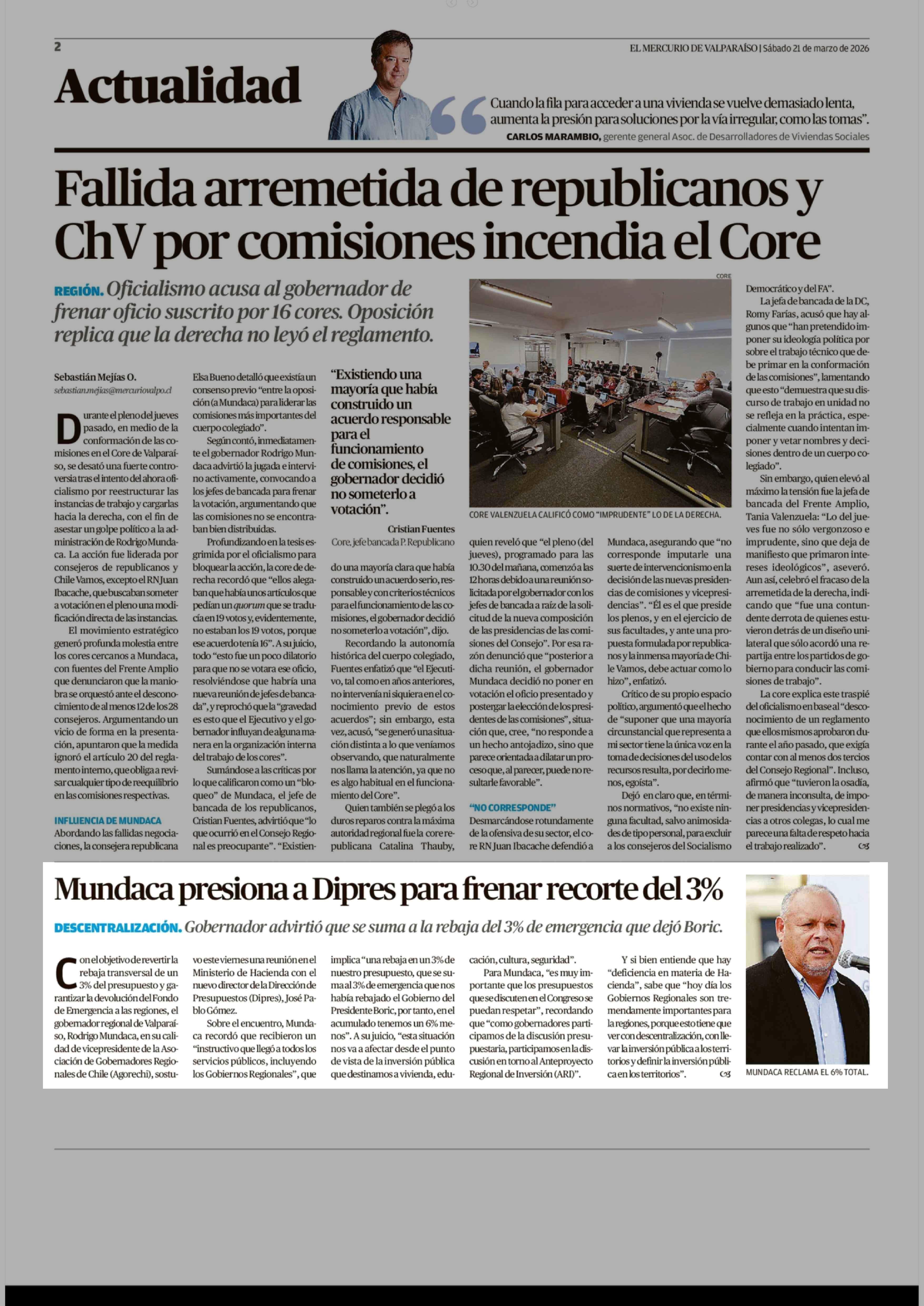Mundaca presiona a Dipres para frenar recorte del 3% 21-03-2026 El Mercurio de Valparaíso |