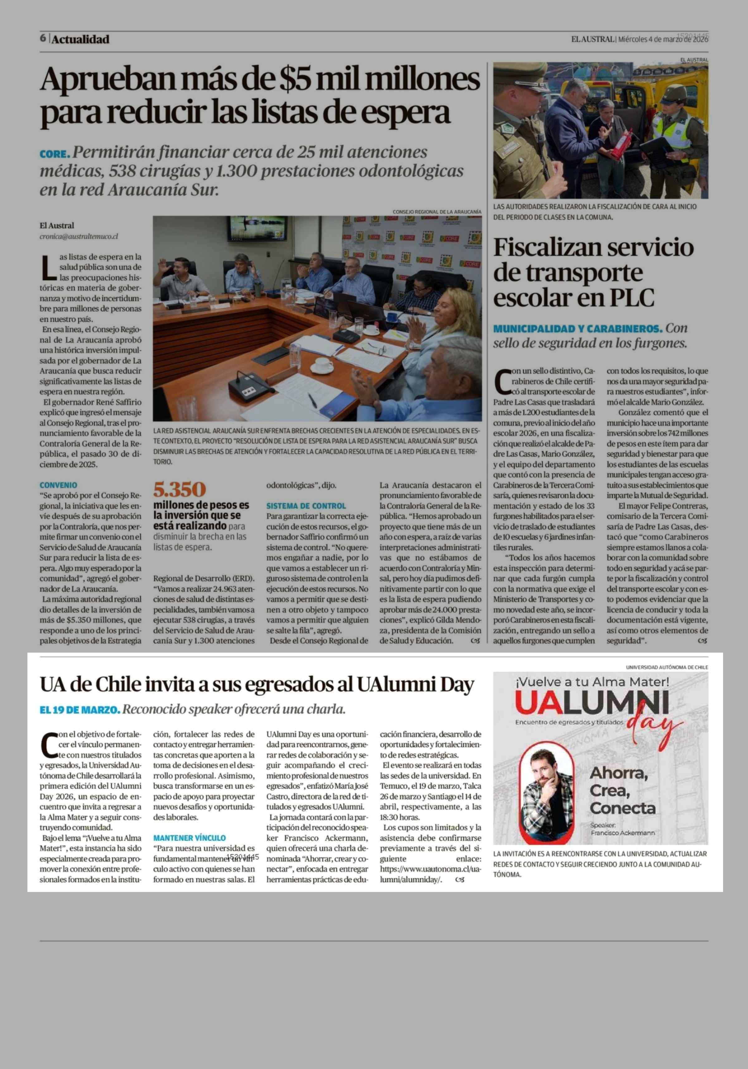 UA de Chile invita a sus egresados al UAlumni Day 04-03-2026 El Austral de la Araucanía |