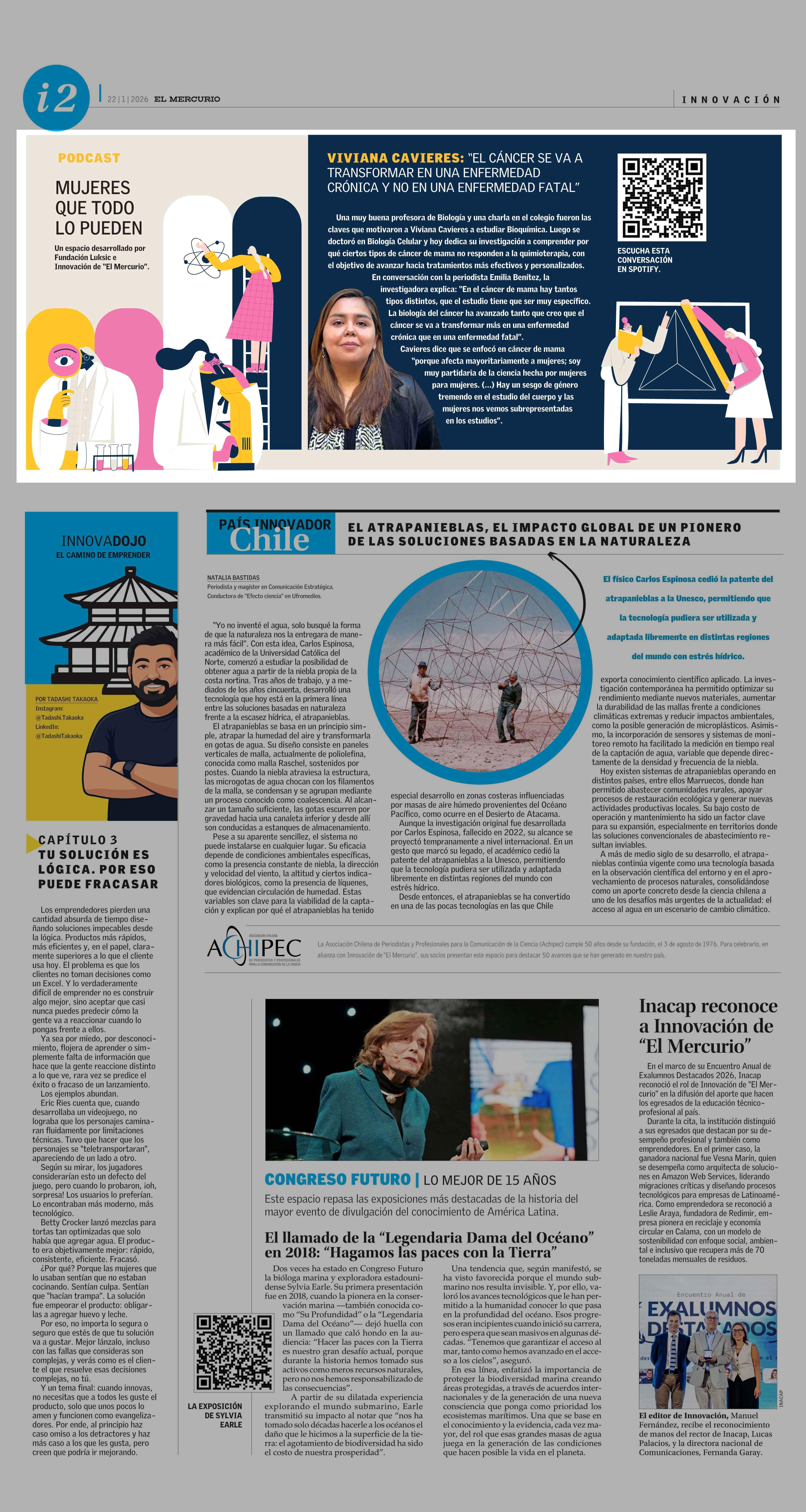 VIVIANA CAVIERES: “EL CÁNCER SE VAA TRANSFORMAR EN UNA ENFERMEDAD CRÓNICA Y NOEN UNA ENFERMEDAD FATAL” 22-01-2026 El Mercurio |