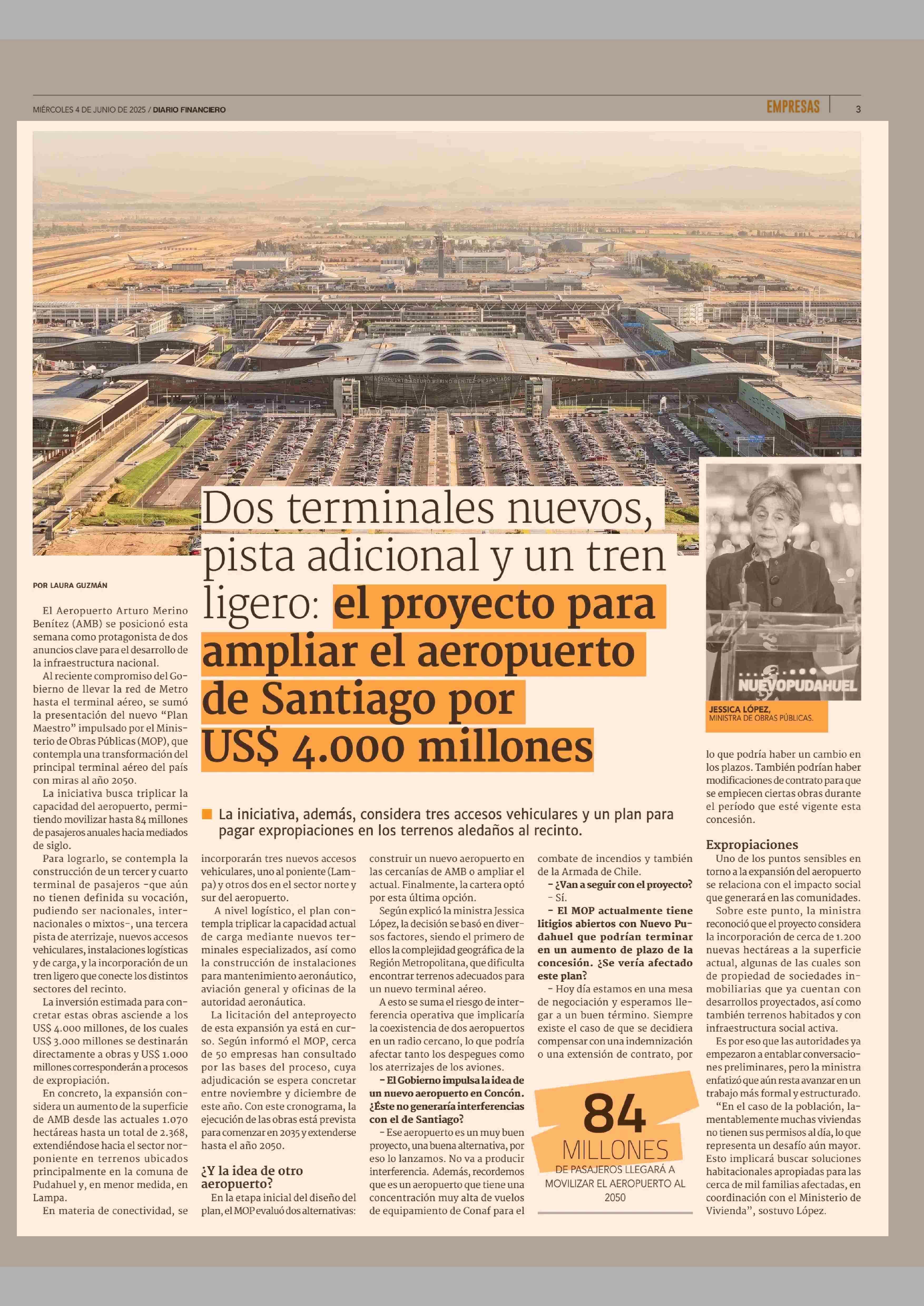 Título: Dos terminales nuevos, pista adicional y un tren ligero: el proyecto para ampliar el aeropuerto de Santiago por US$ 4.000 millones
