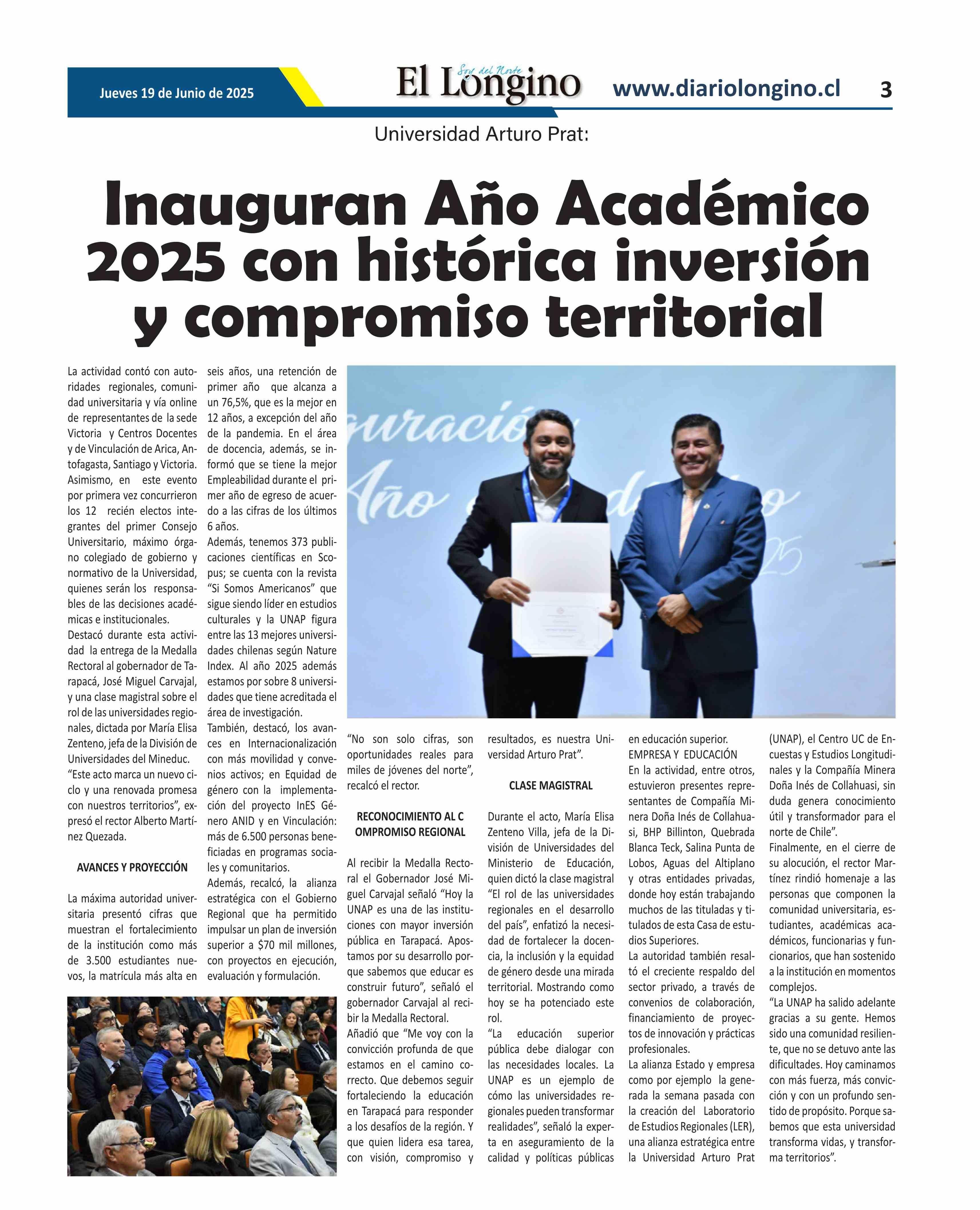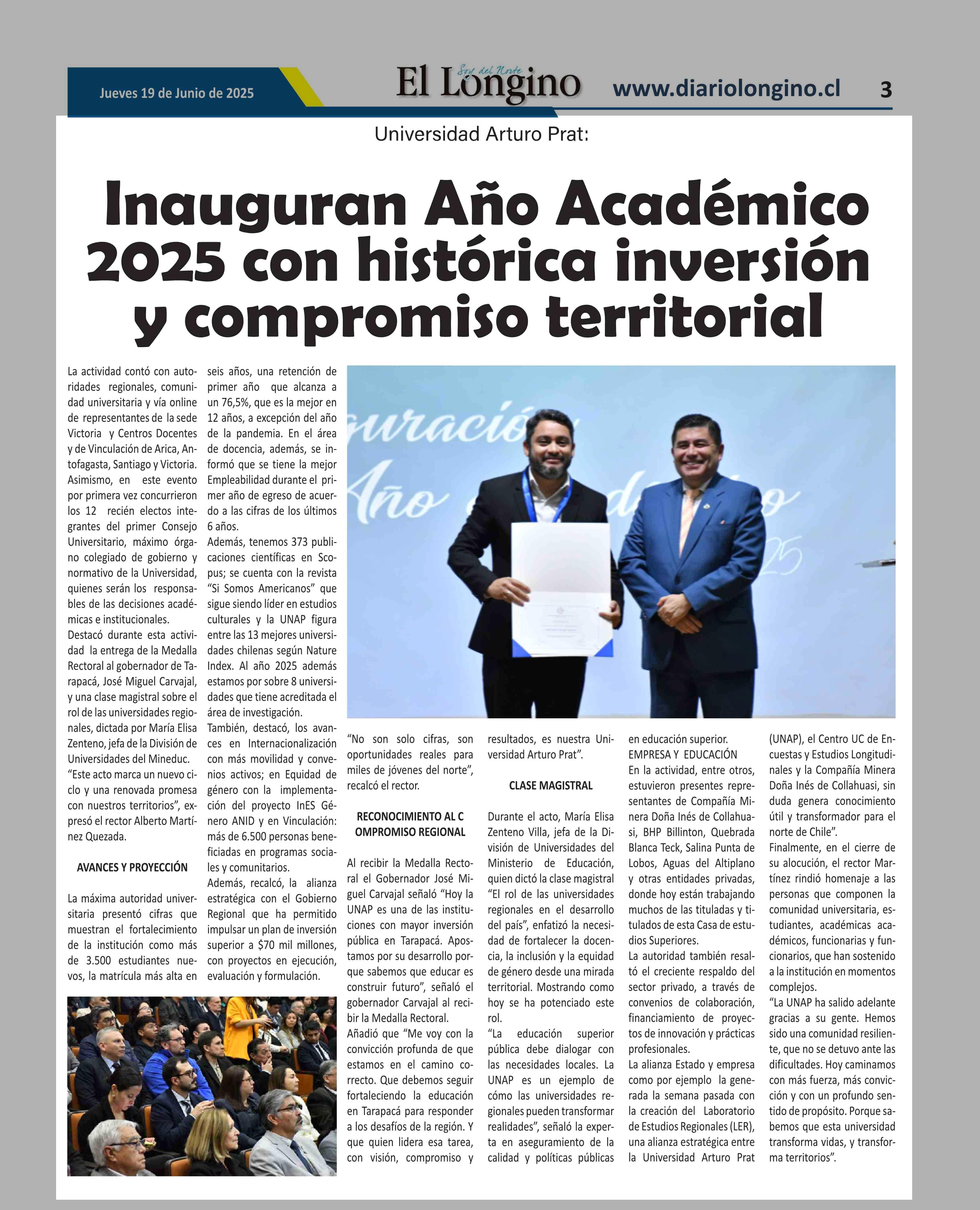Inauguran Año Académico 2025 con histórica inversión y compromiso territorial 19-06-2025 El Longino |