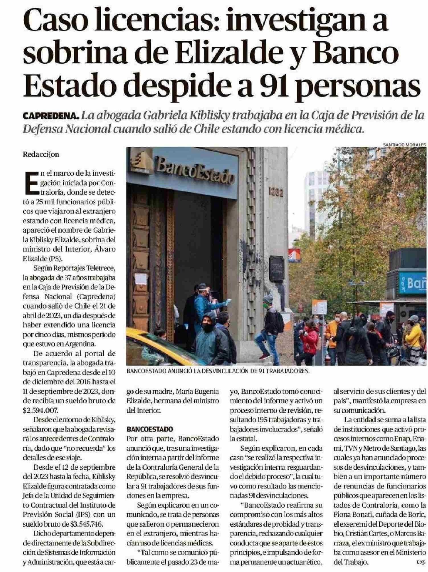 Título: Caso licencias: investigan a sobrina de Elizalde y Banco Estado despide a 91 personas