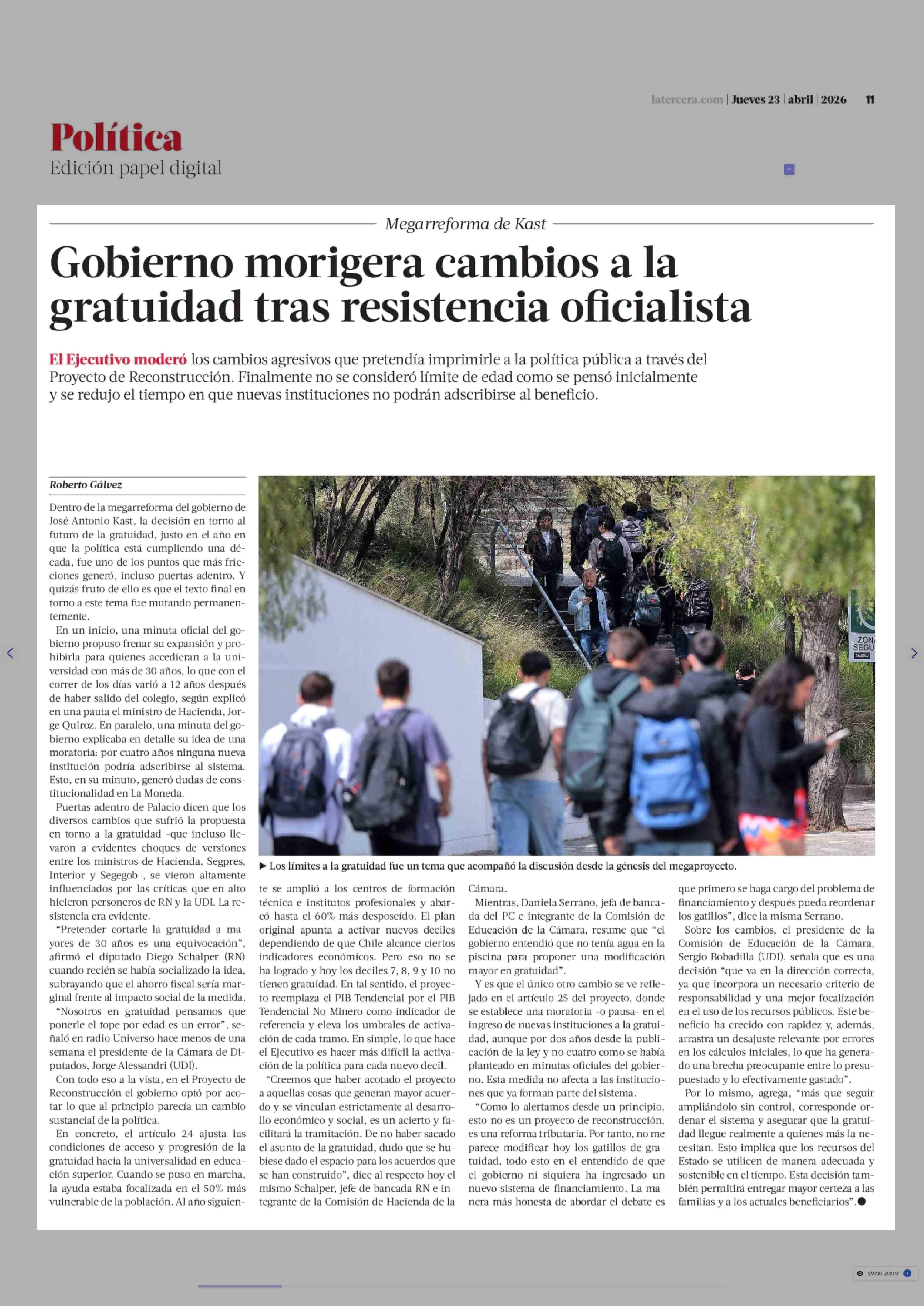 Título: Gobierno morigera cambios a la gratuidad tras resistencia oficialista