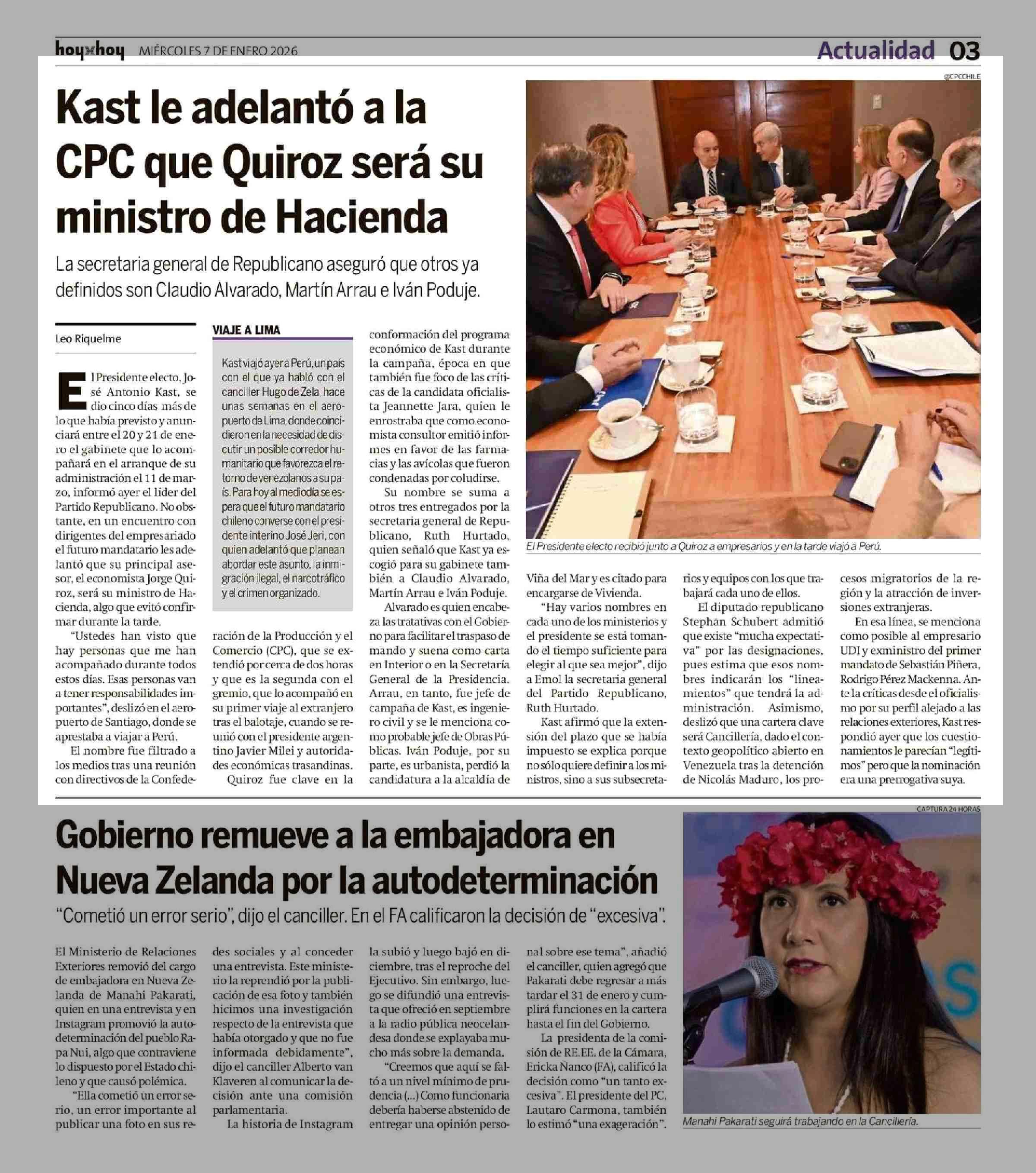 Kast le adelantó a la CPC que Quiroz será su ministro de Hacienda 07-01-2026 Hoy x Hoy |