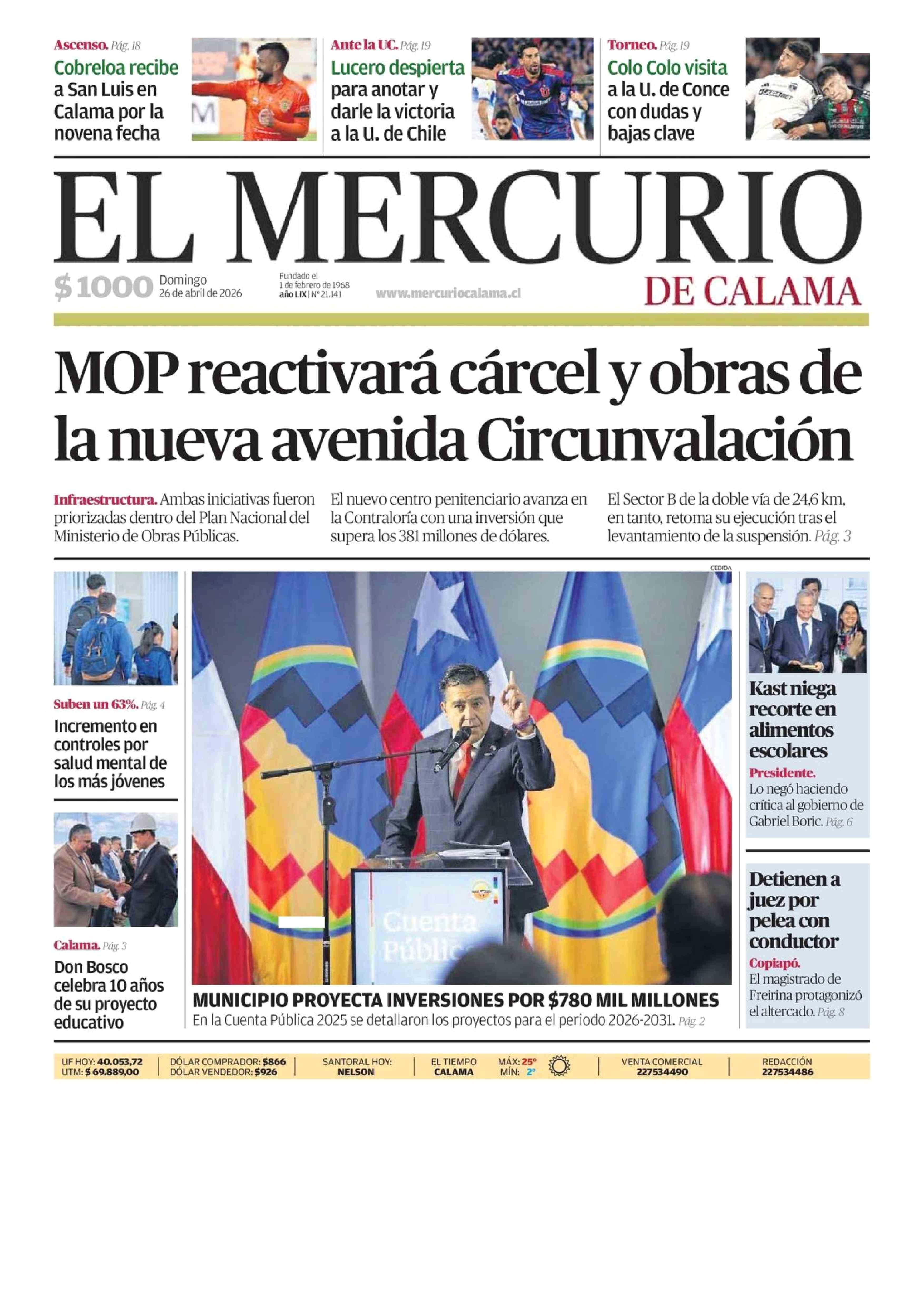Fecha: 26-04-2026 Sector: Portada Región: Región de Antofagasta