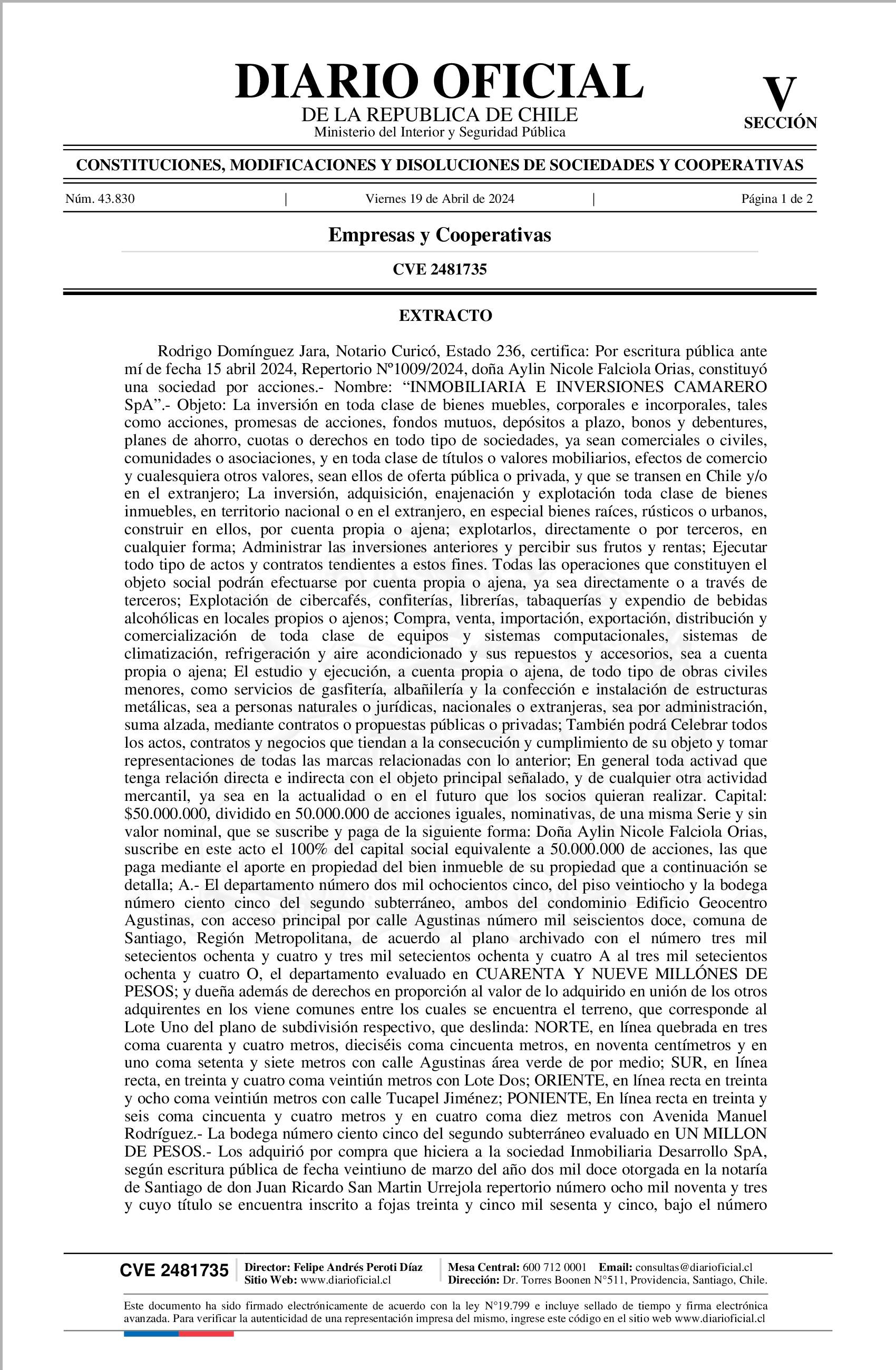 Extracto 19-04-2024 Diario Oficial Edición Electrónica |