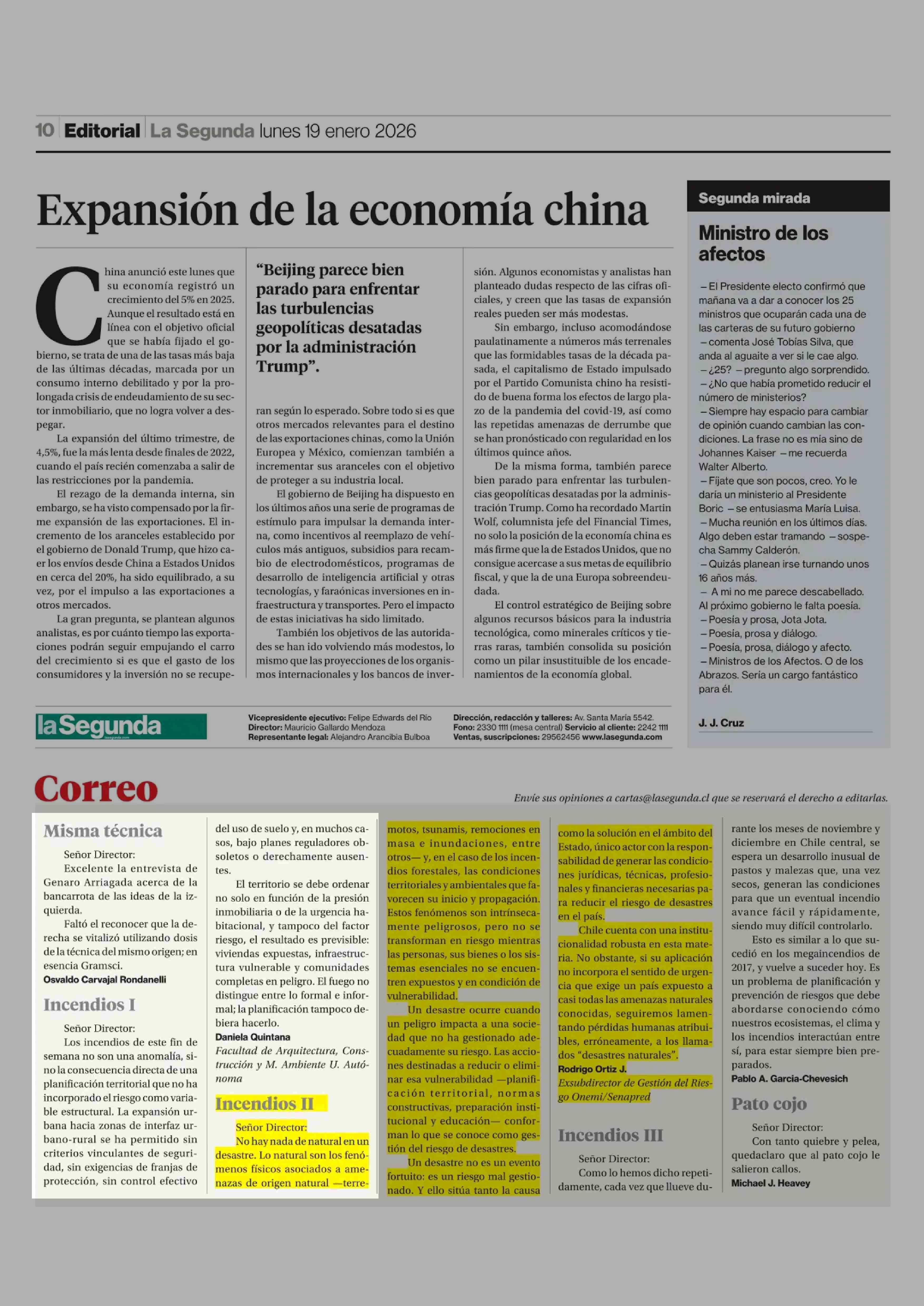 Cartas: Incendios I 19-01-2026 La Segunda |