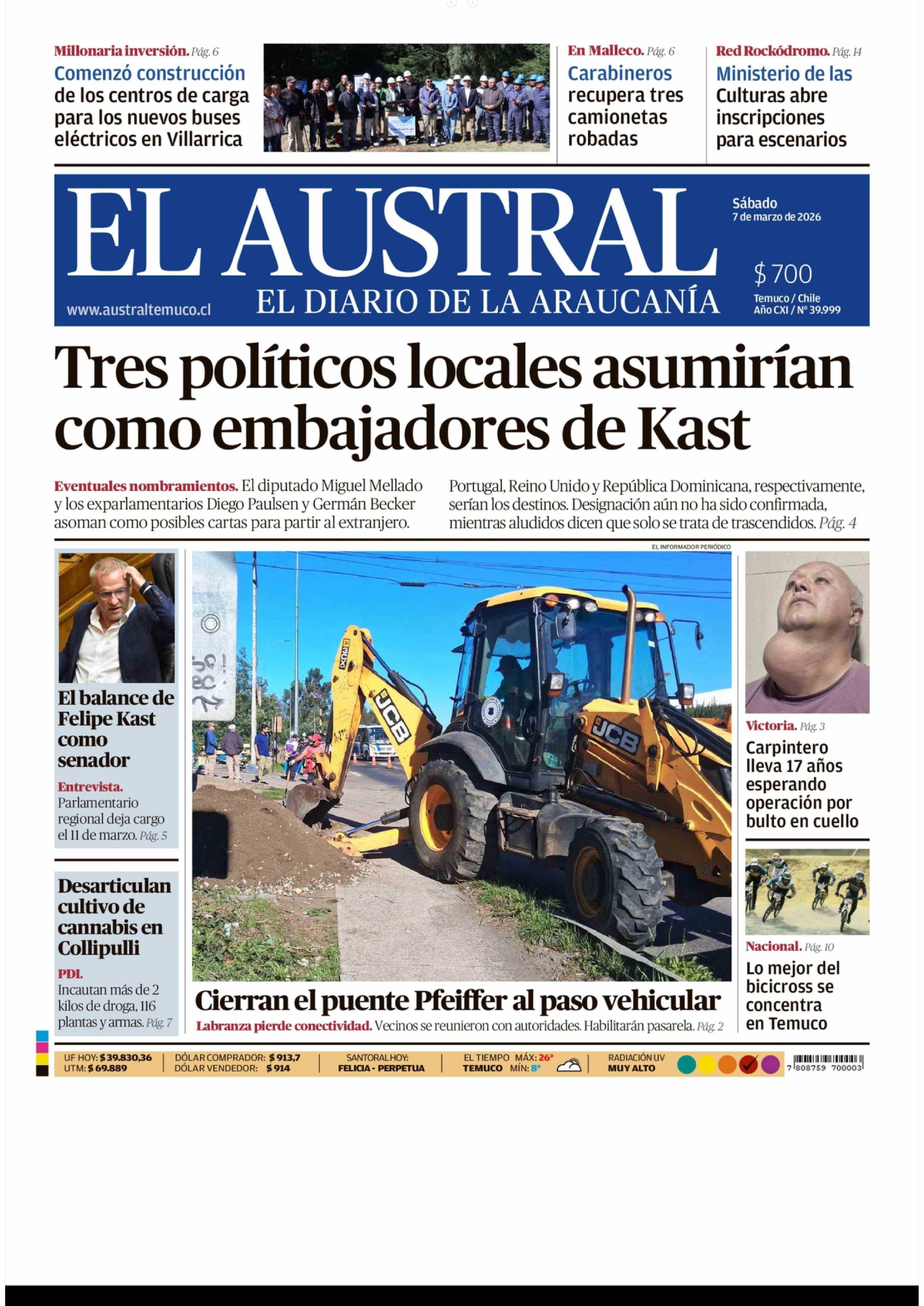 | Fecha: | 07-03-2026 | Sector: | Portada | Región: | Región de la Araucanía |