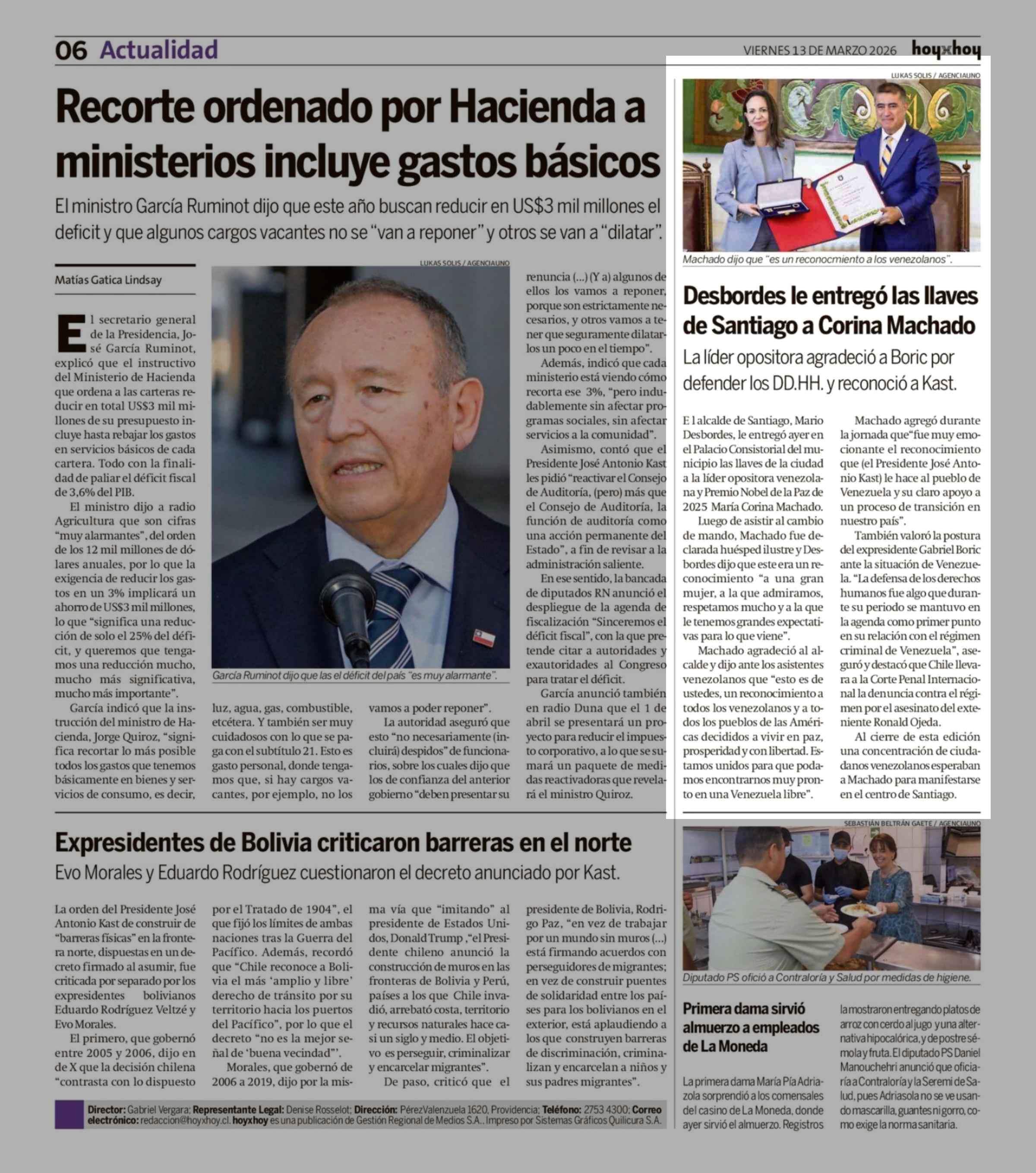 Desbordes le entregó las llaves de Santiago a Corina Machado 13-03-2026 Hoy x Hoy Concepción |