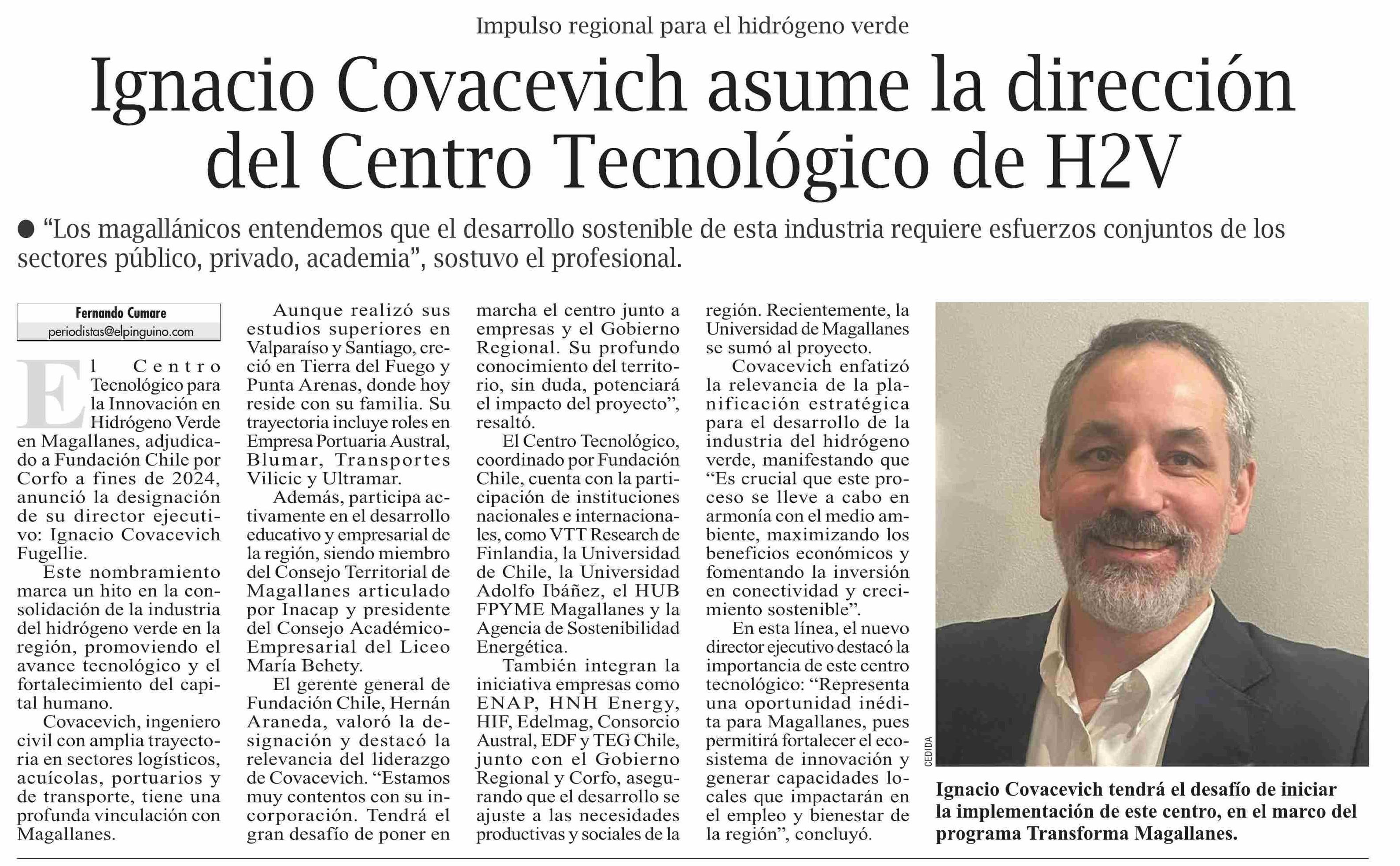 Ignacio Covacevich asume la dirección del Centro Tecnológico de H2V 30-05-2025 El Pingüino |