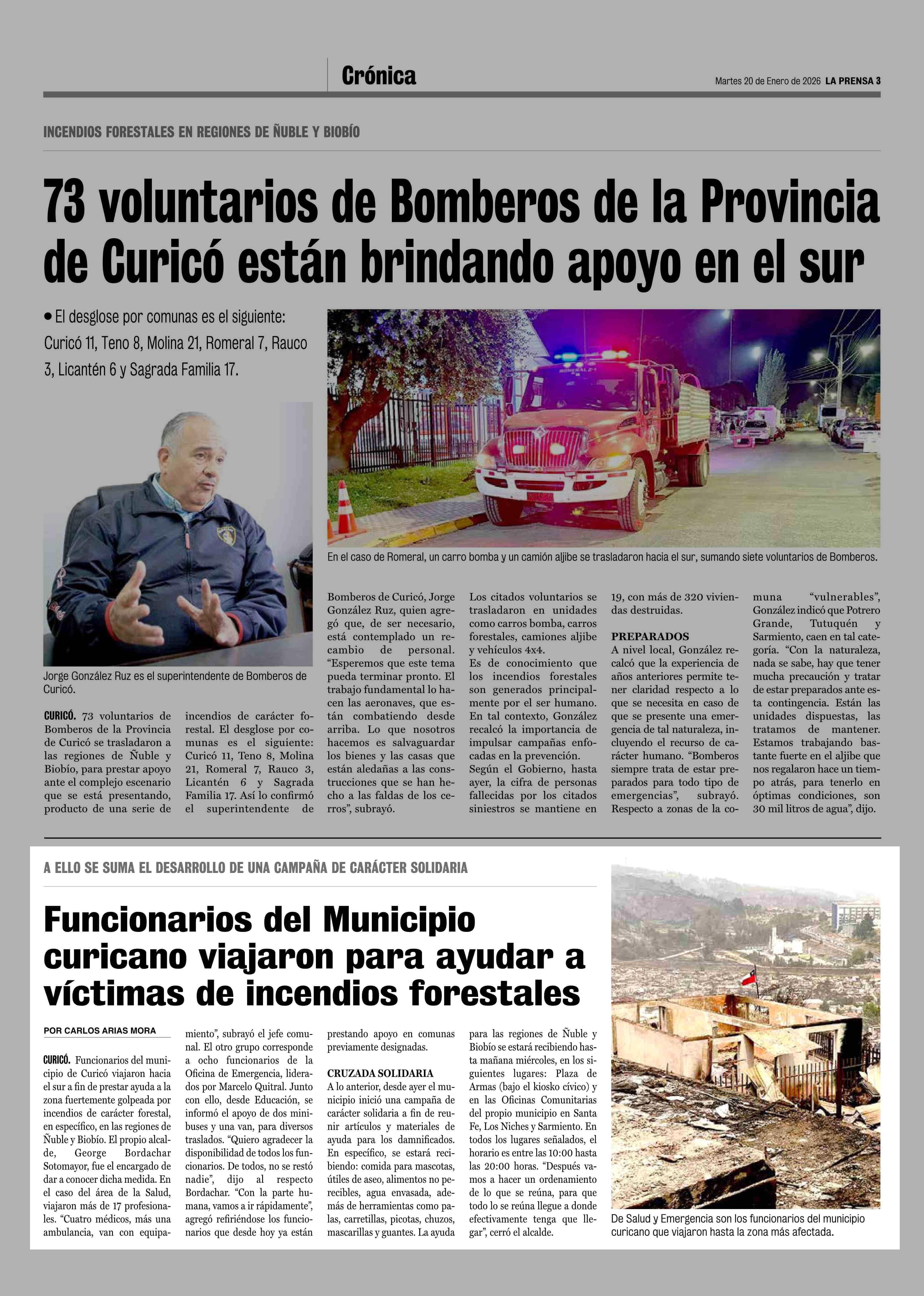 Título: Funcionarios del Municipio curicano viajaron para ayudar a víctimas de incendios forestales