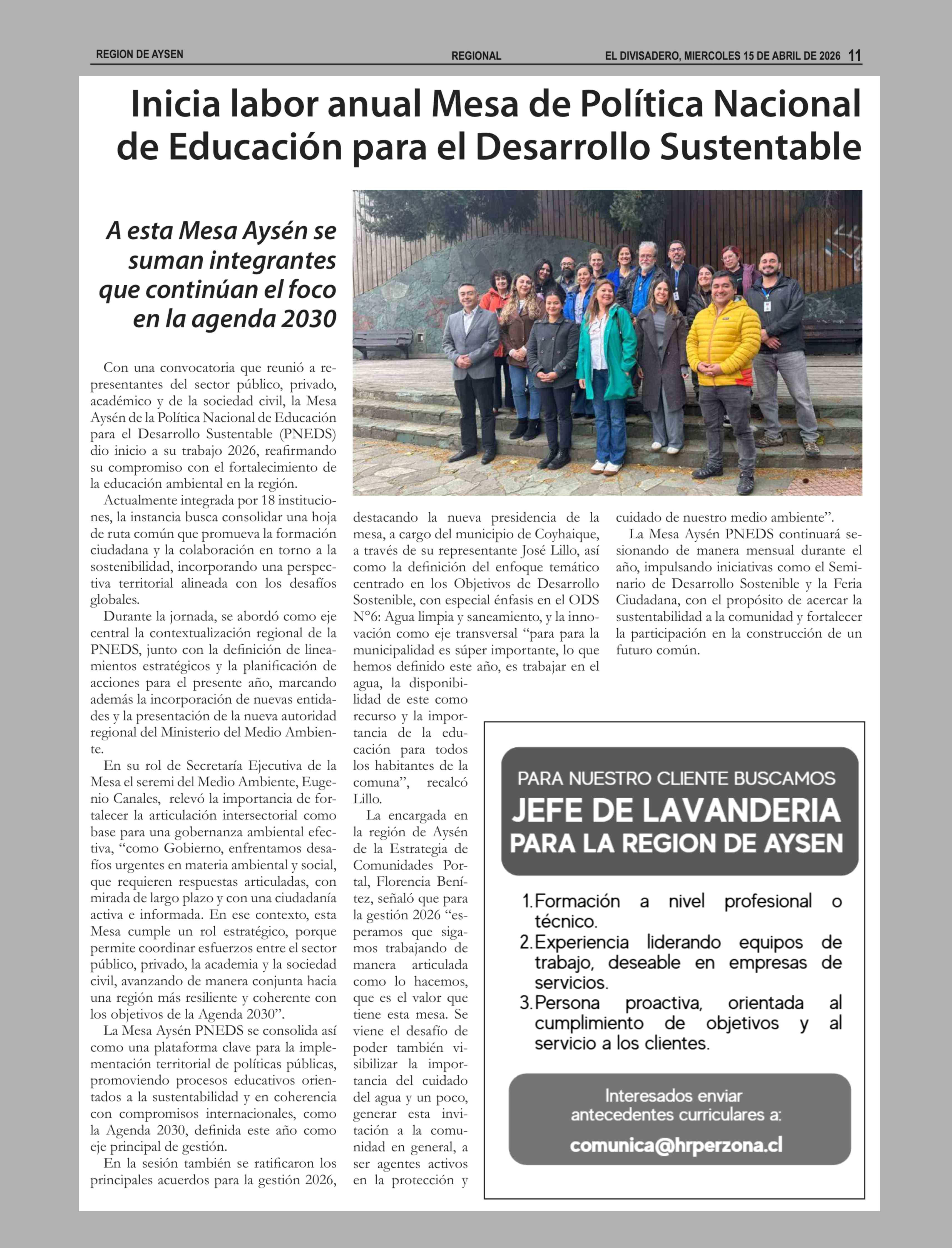 Fecha: 15-04-2026 Sector: Noticia general Región: Región Aysén del General Carlos Ibáñez del Campo