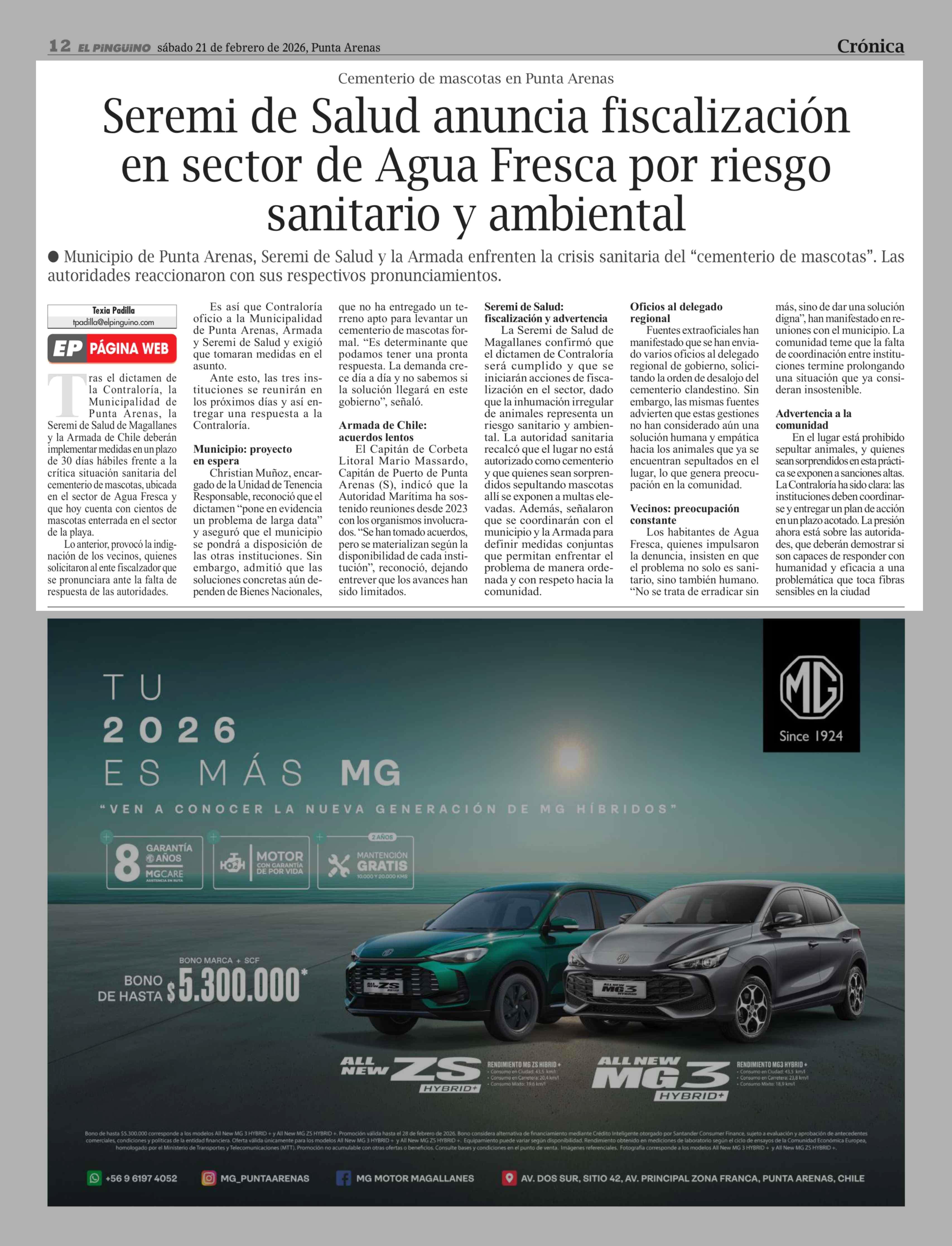 | Fecha: | 21-02-2026 | Sector: | Noticia general | Región: | Región de Magallanes y de la Antártica Chilena |