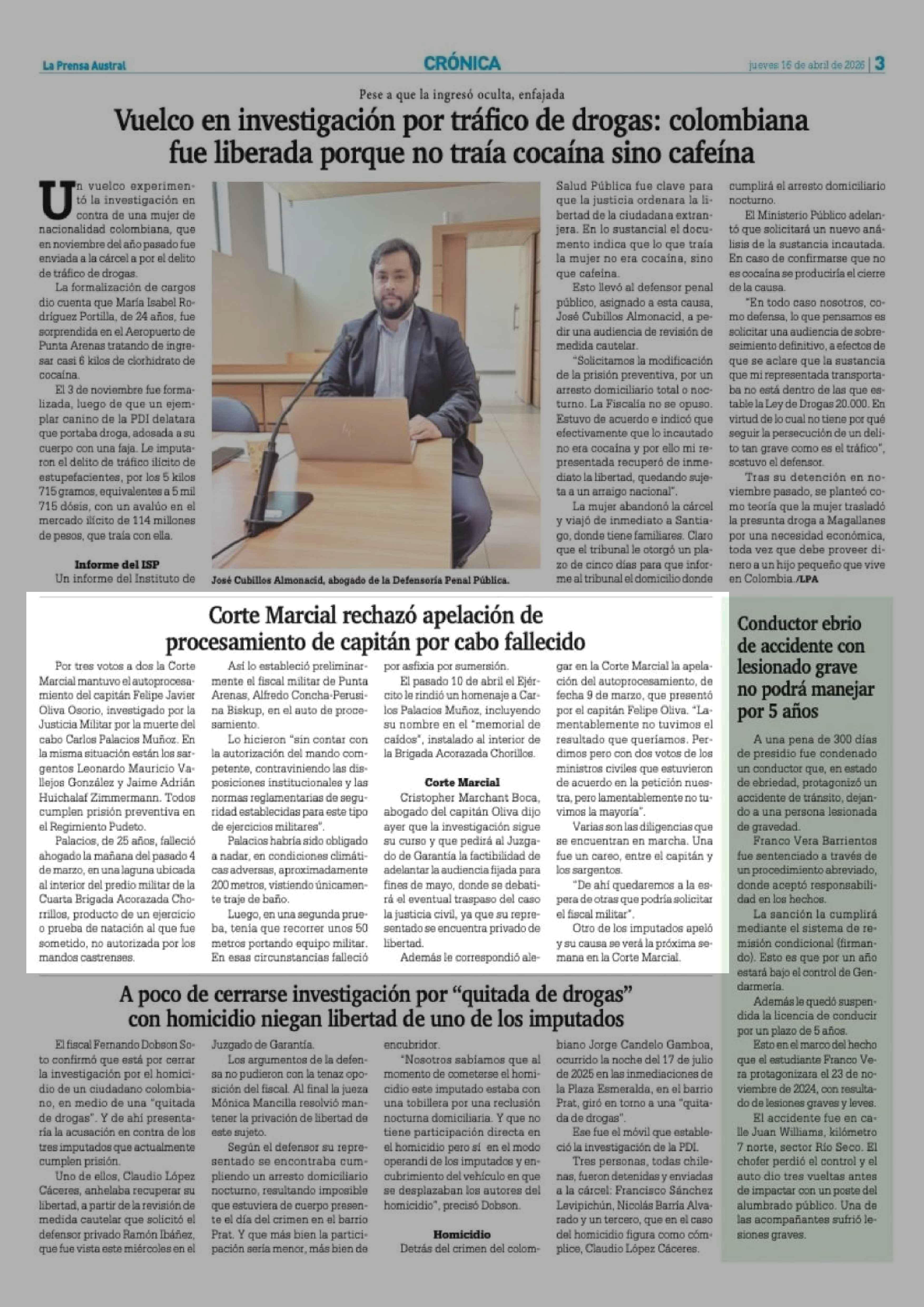 Corte Marcial rechazó apelación de procesamiento de capitán por cabo fallecido 16-04-2026 La Prensa Austral |