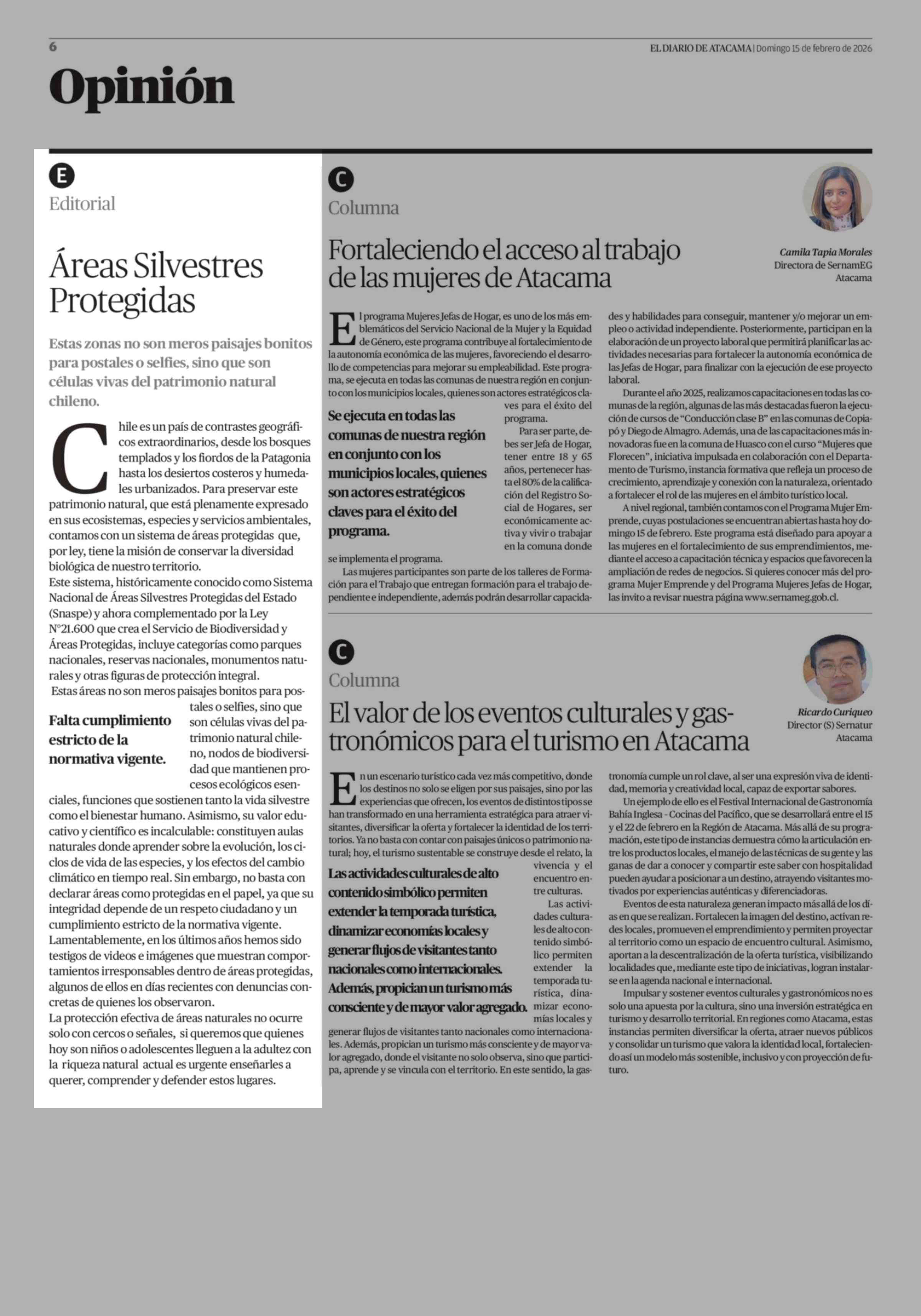 Editorial: Áreas Silvestres Protegidas 15-02-2026 El Diario de Atacama |