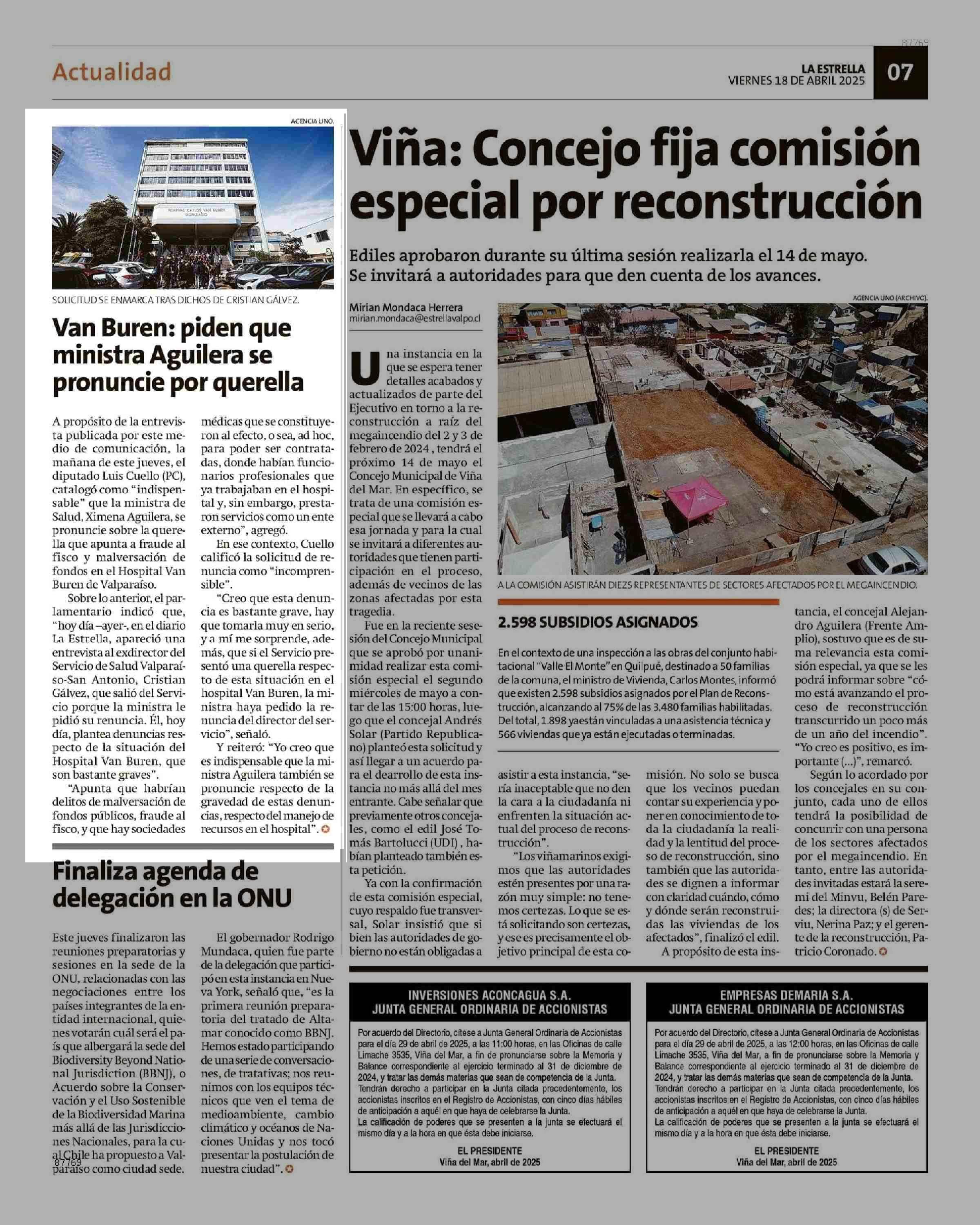 Fecha: 18-04-2025 Sector: Noticia general Región: Región de Valparaíso