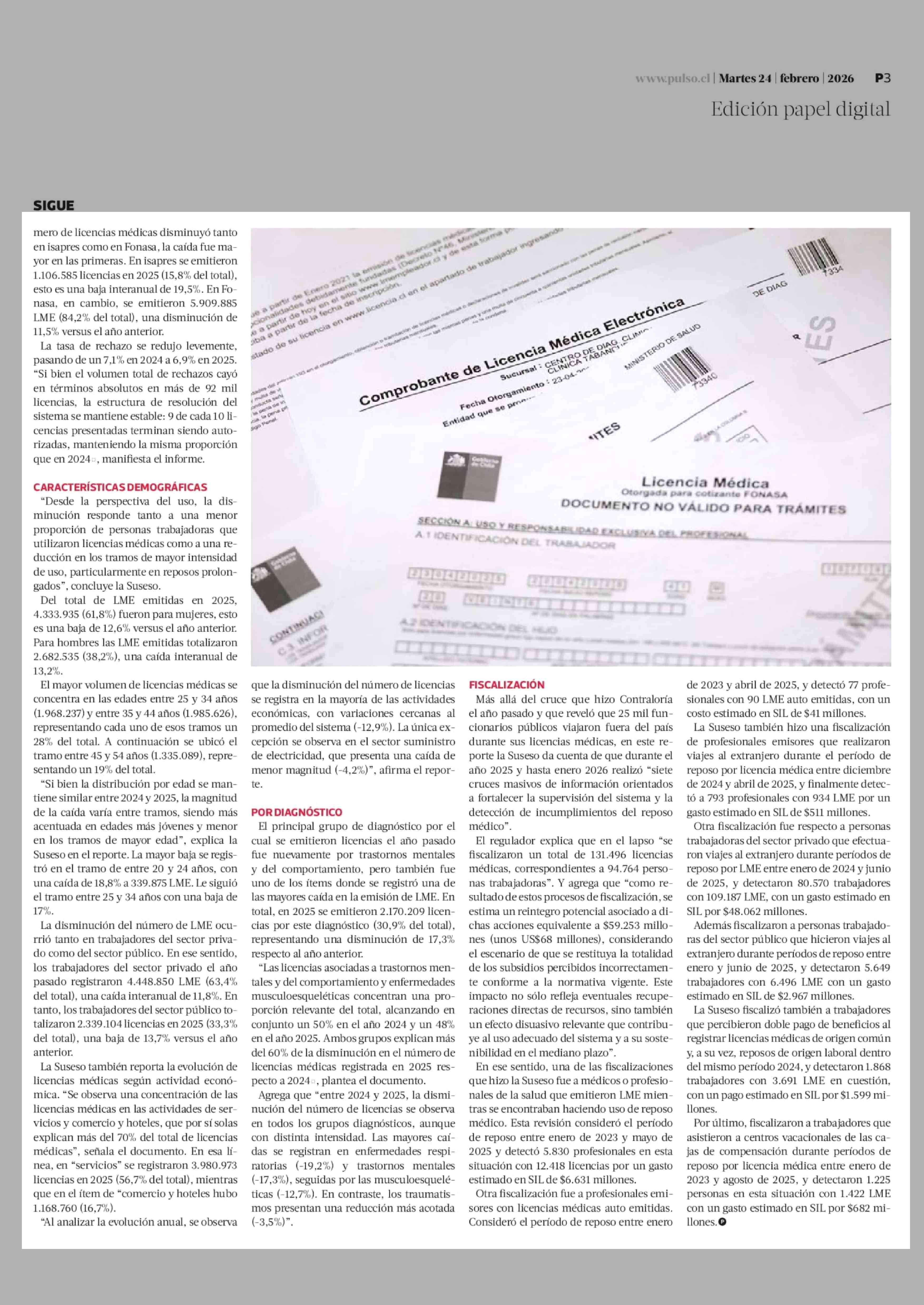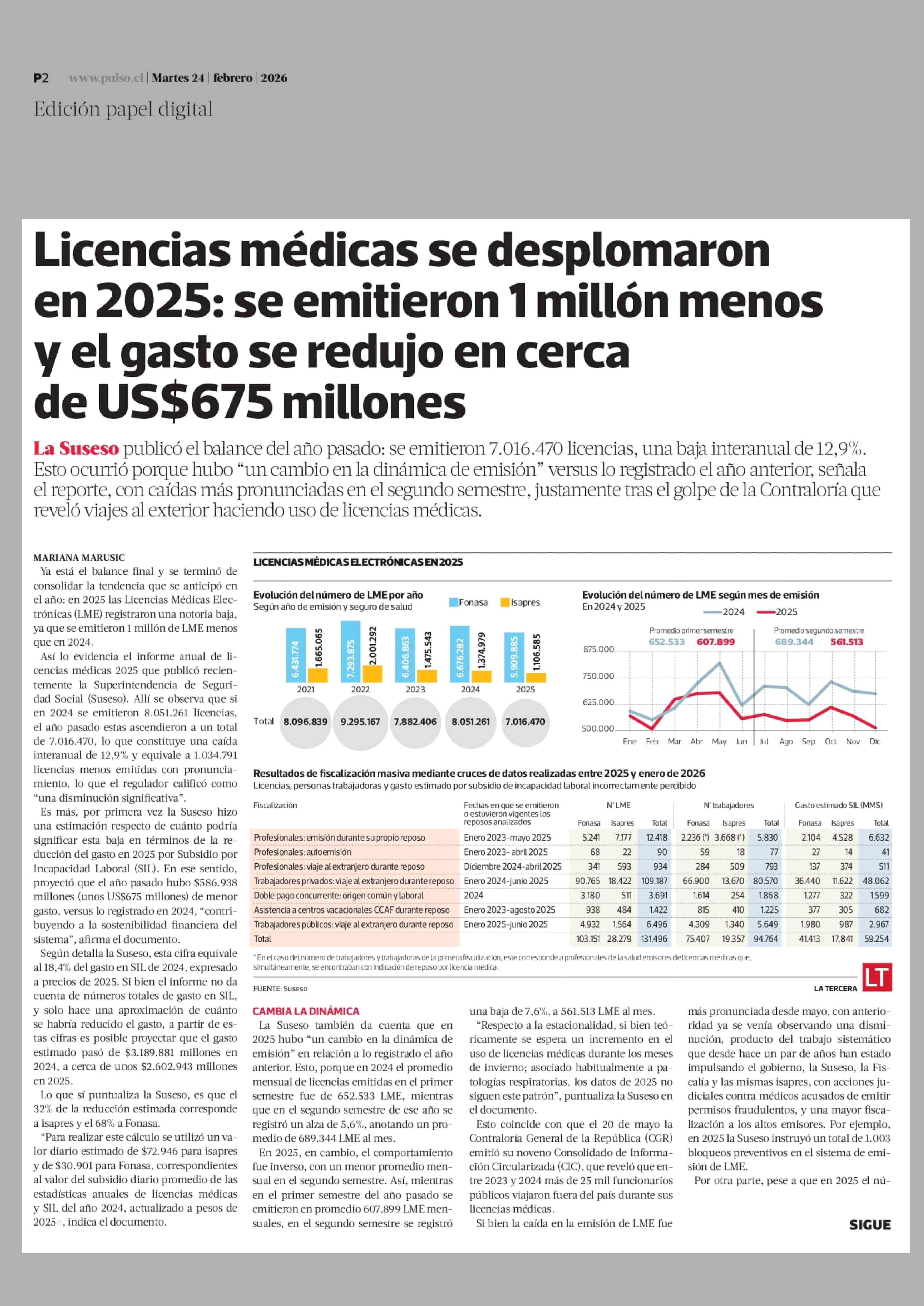 Título: Licencias médicas se desplomaron en 2025: se emitieron 1 millón menos y el gasto se redujo en cerca de US$675 millones