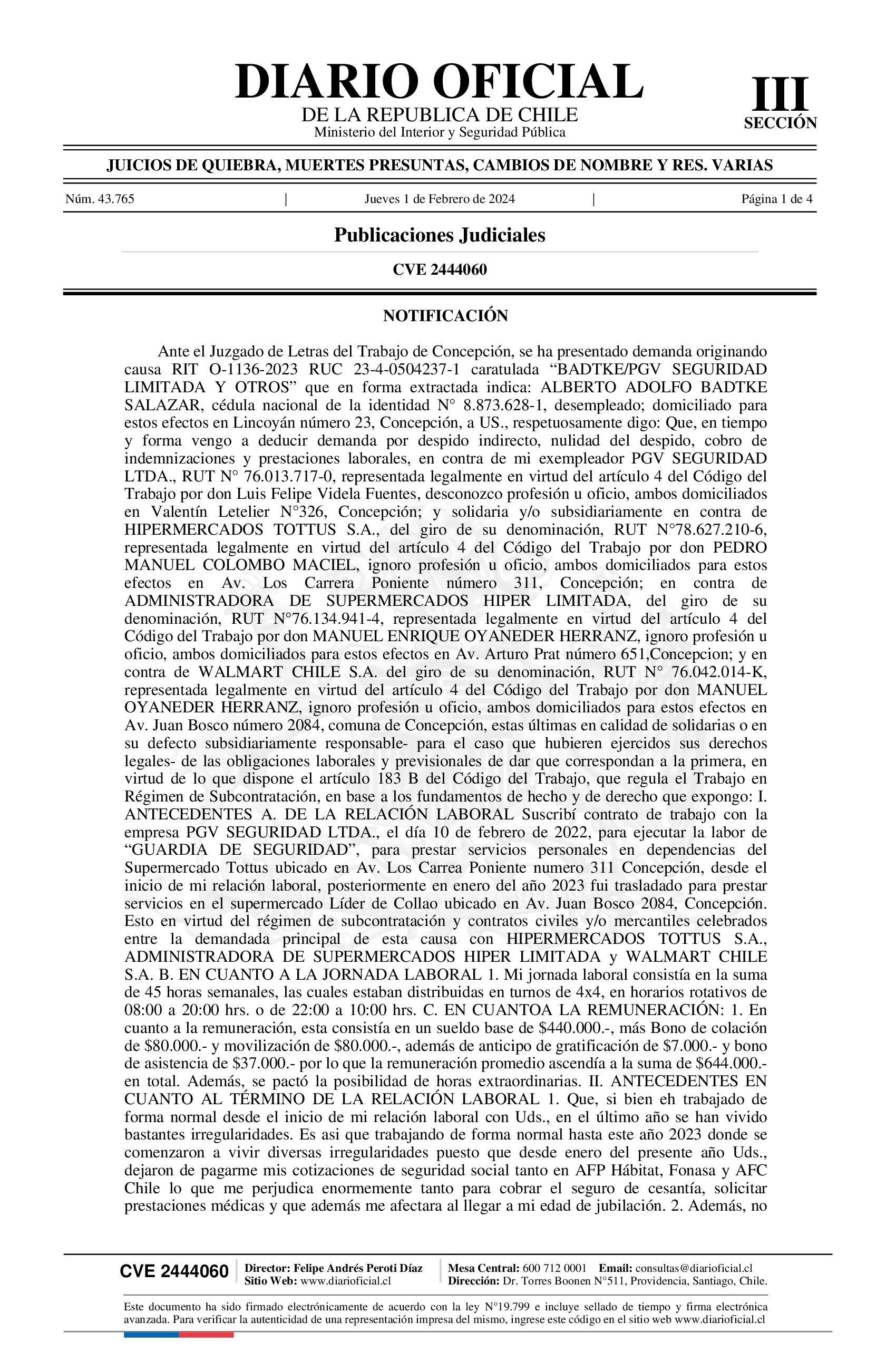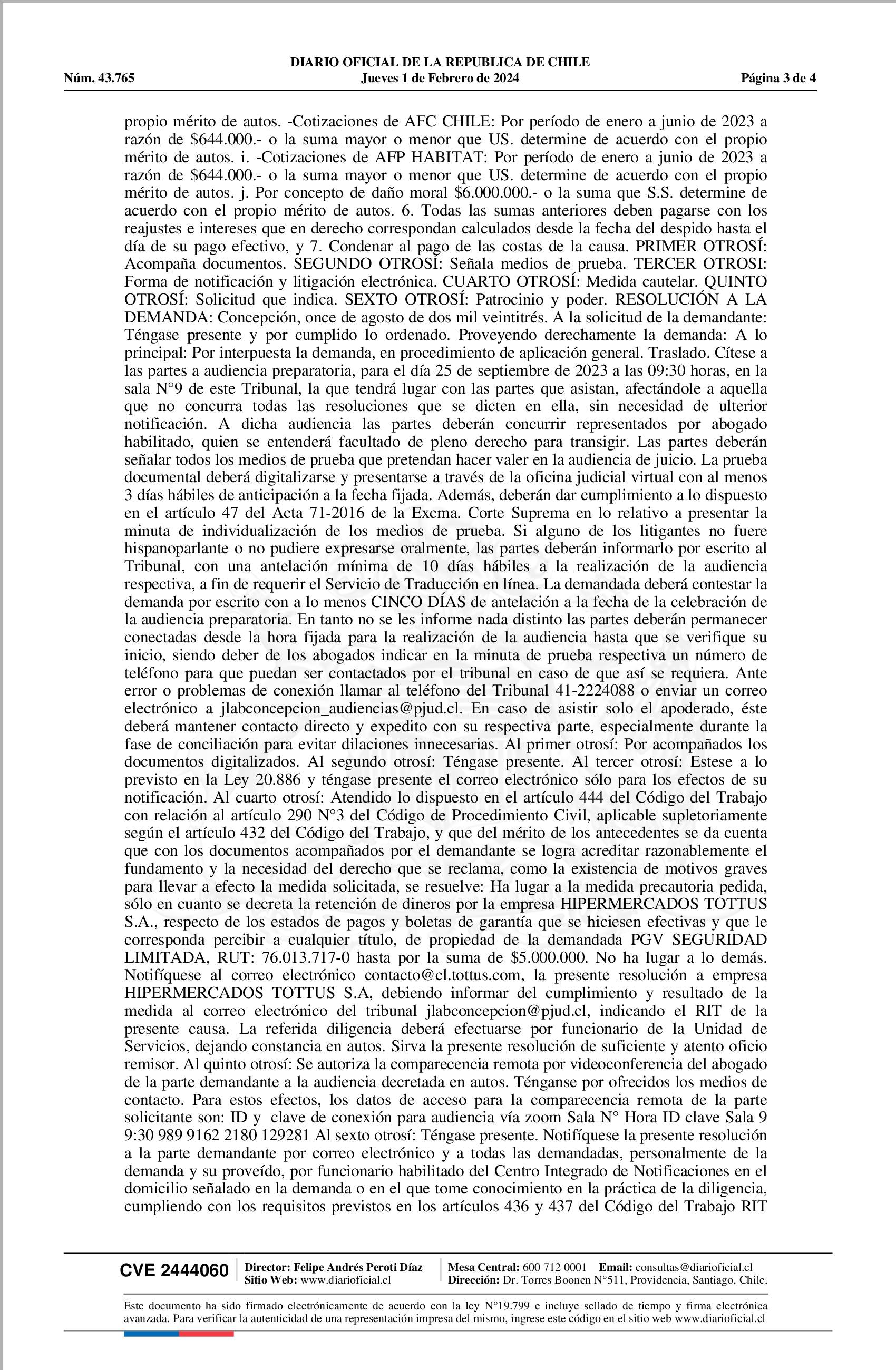 Notificación 01-02-2024 Diario Oficial Edición Electrónica |