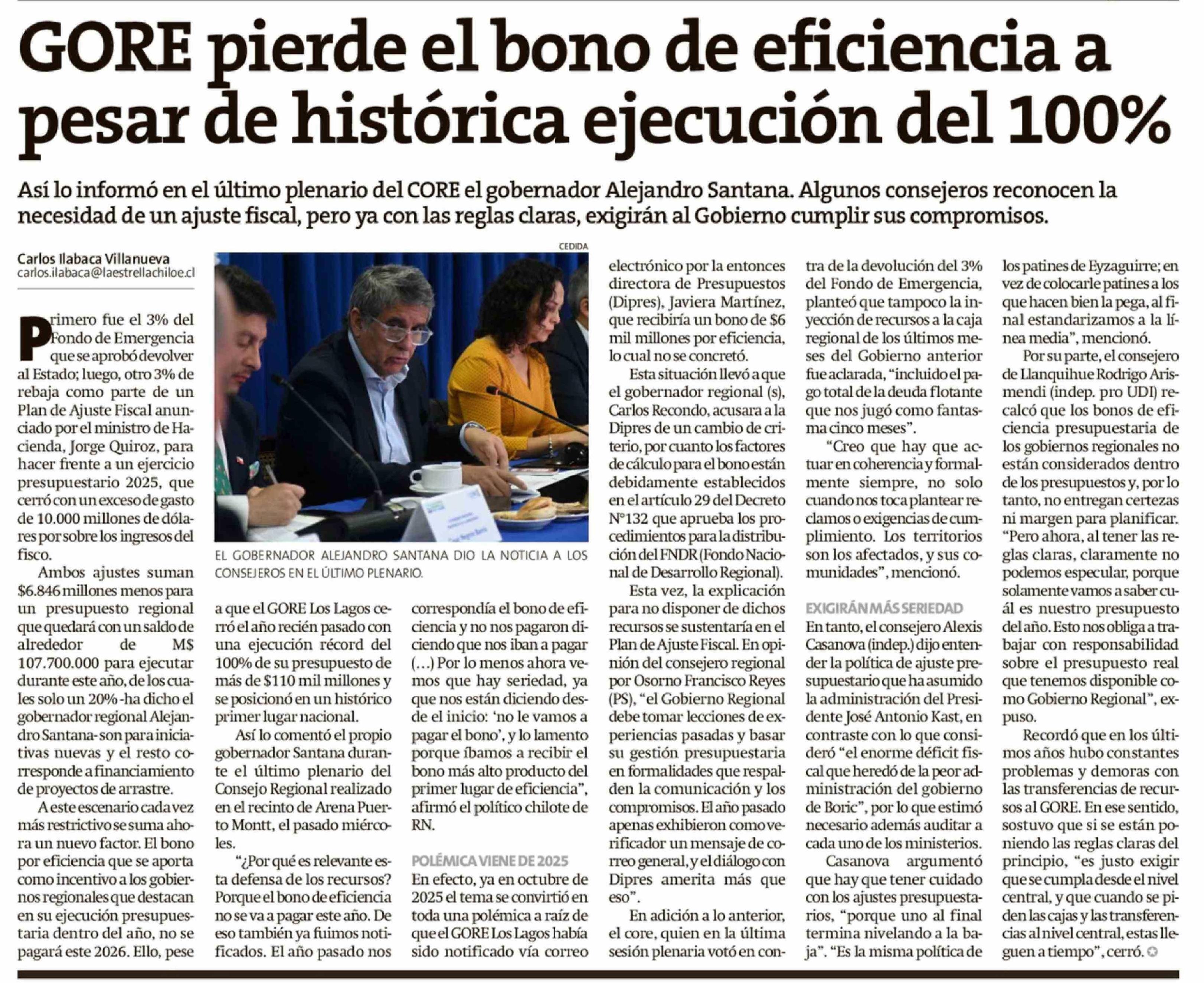 Título: GORE pierde el bono de eficiencia a pesar de histórica ejecución del 100%