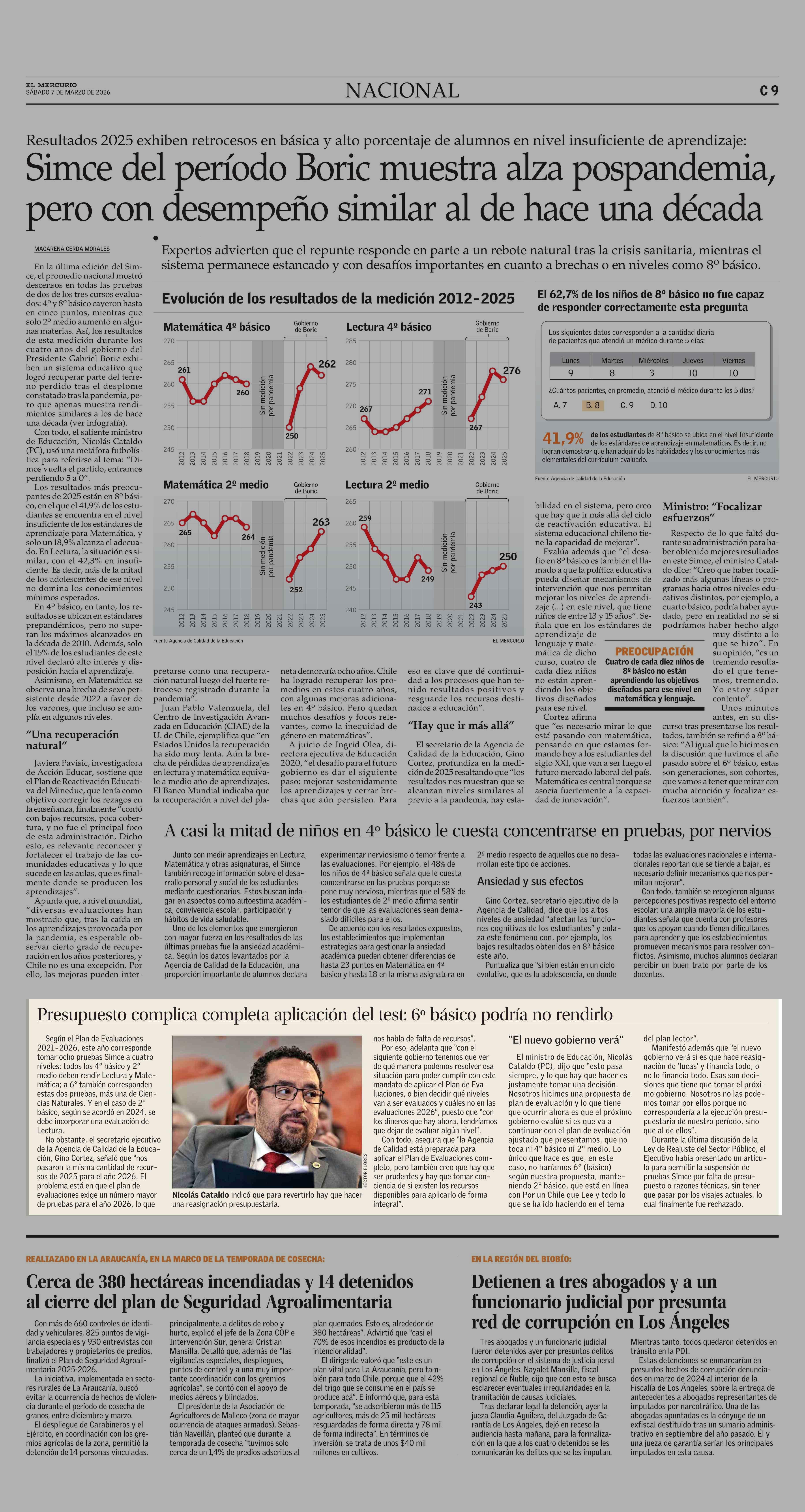Presupuesto complica completa aplicación del test: 6º básico podría no rendirlo 07-03-2026 El Mercurio |