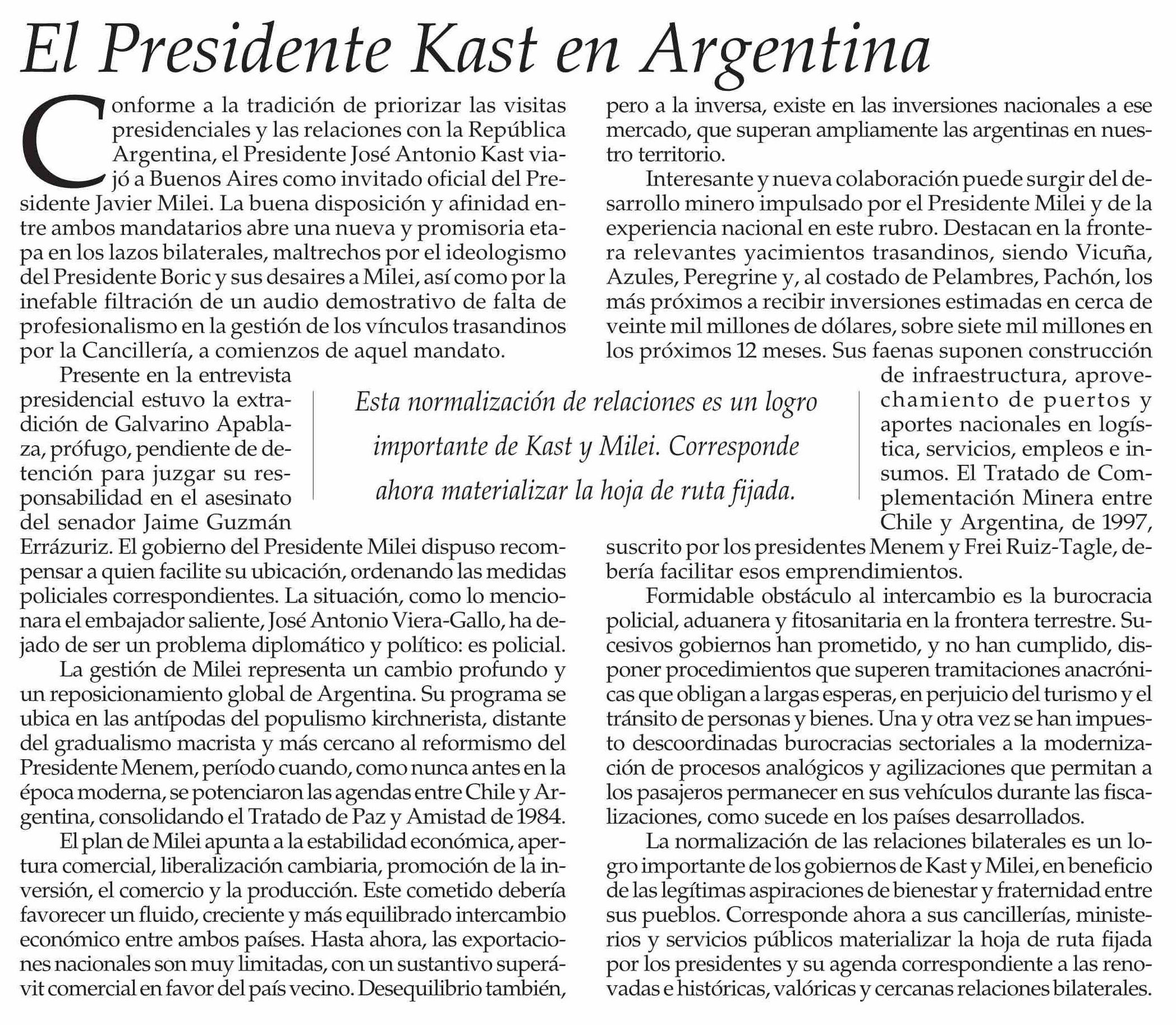 | Título: | Editorial: El Presidente Kast en Argentina |