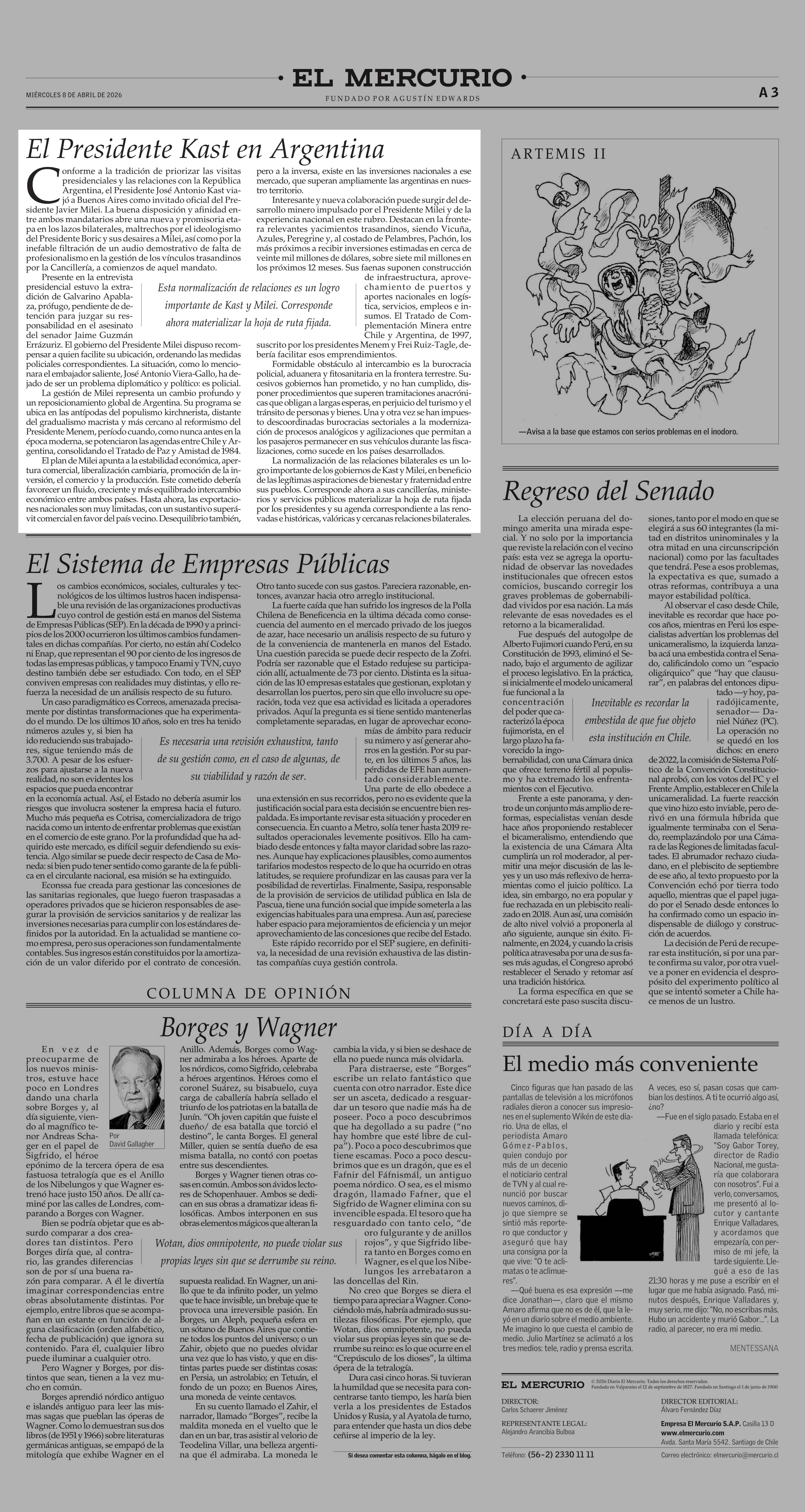 Editorial: El Presidente Kast en Argentina 08-04-2026 El Mercurio |