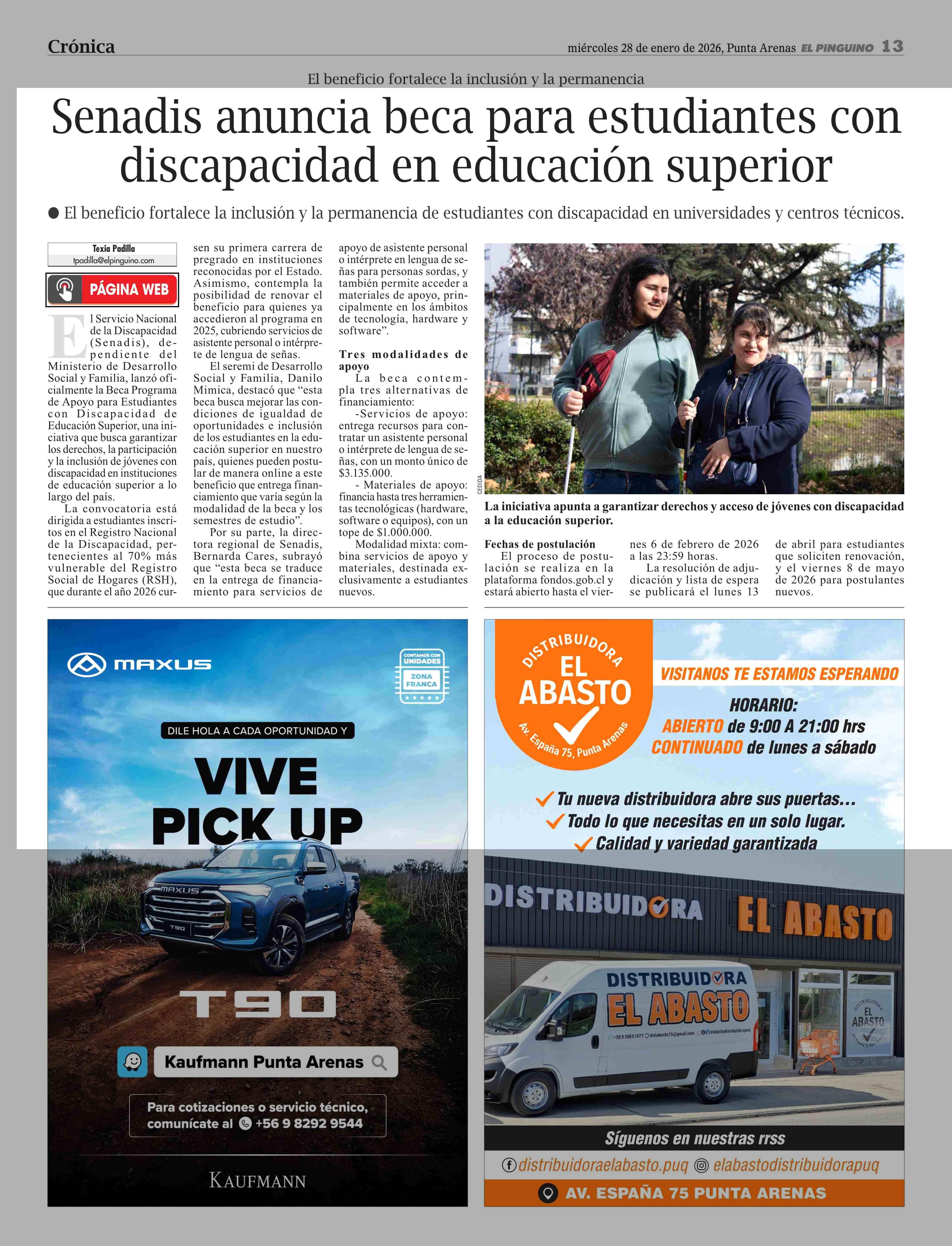 Senadis anuncia beca para estudiantes con disc ap acidad en e duc ación superior 28-01-2026 El Pingüino |