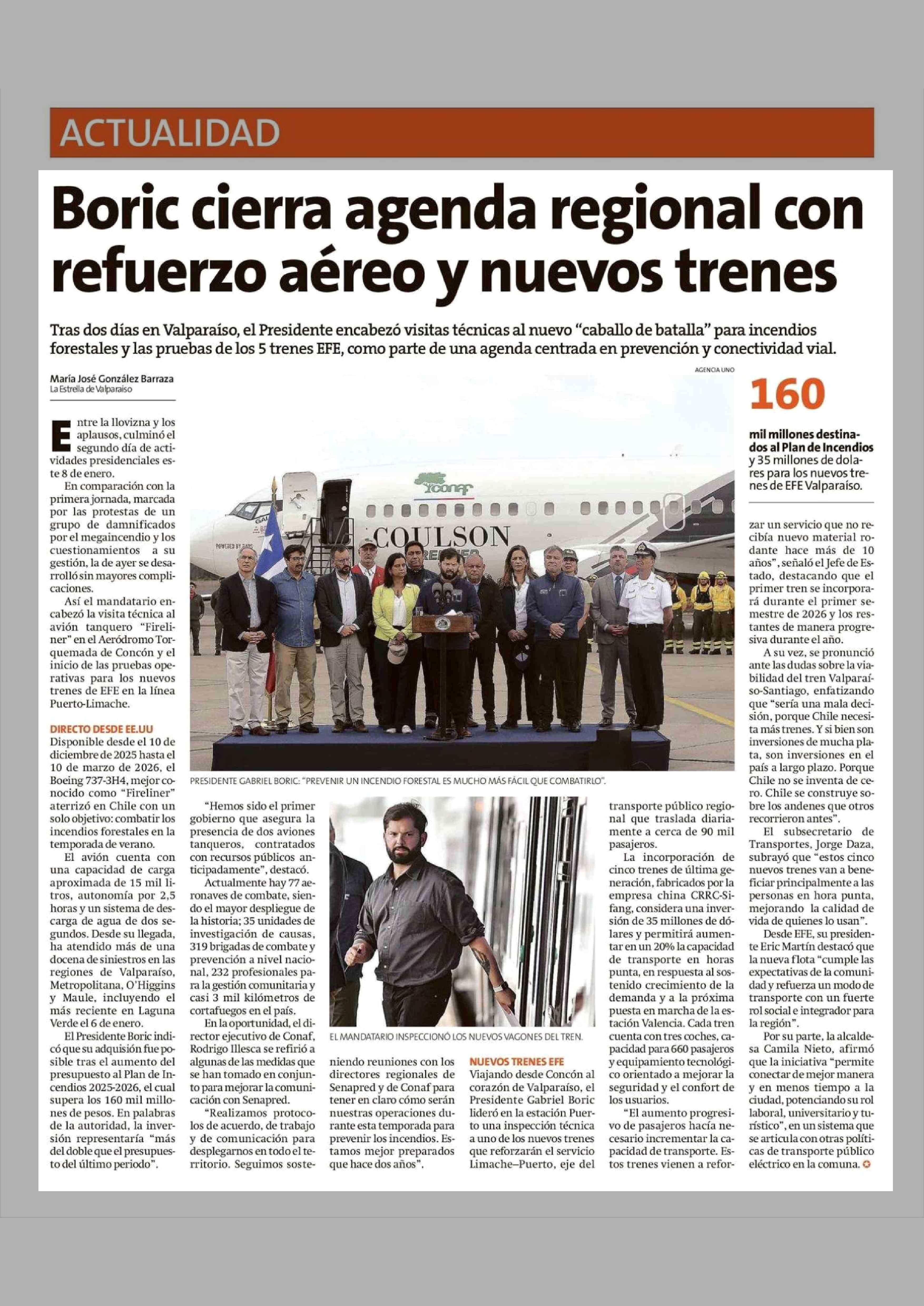 Título: Boric cierra agenda regional con refuerzo aéreo y nuevos trenes
