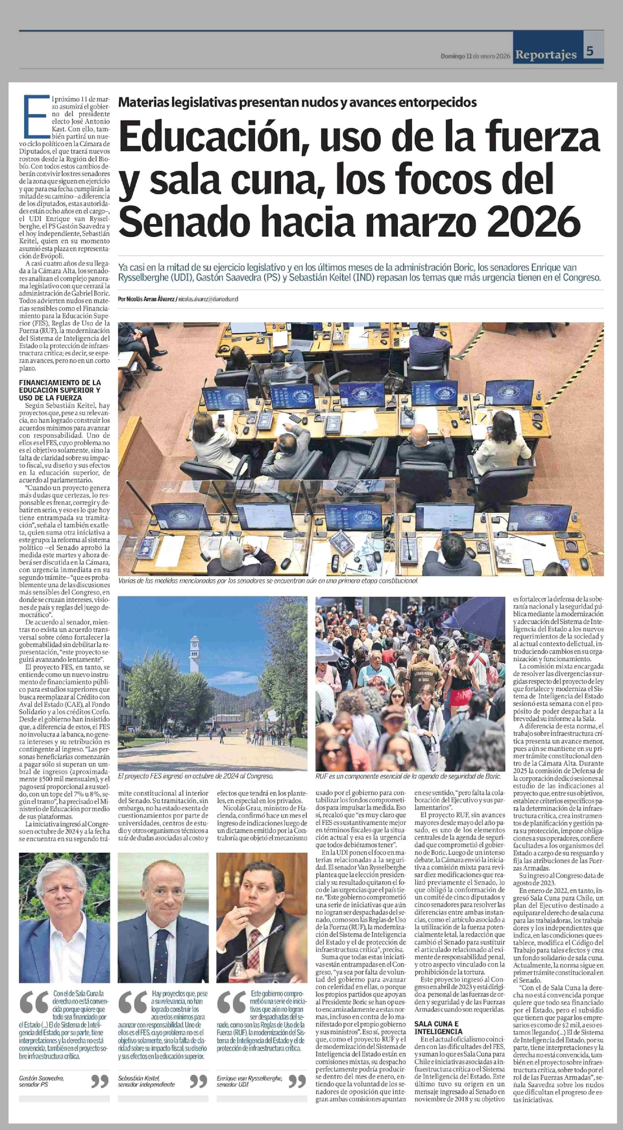 Título: Educación, uso de la fuerza y sala cuna, los focos del Senado hacia marzo 2026