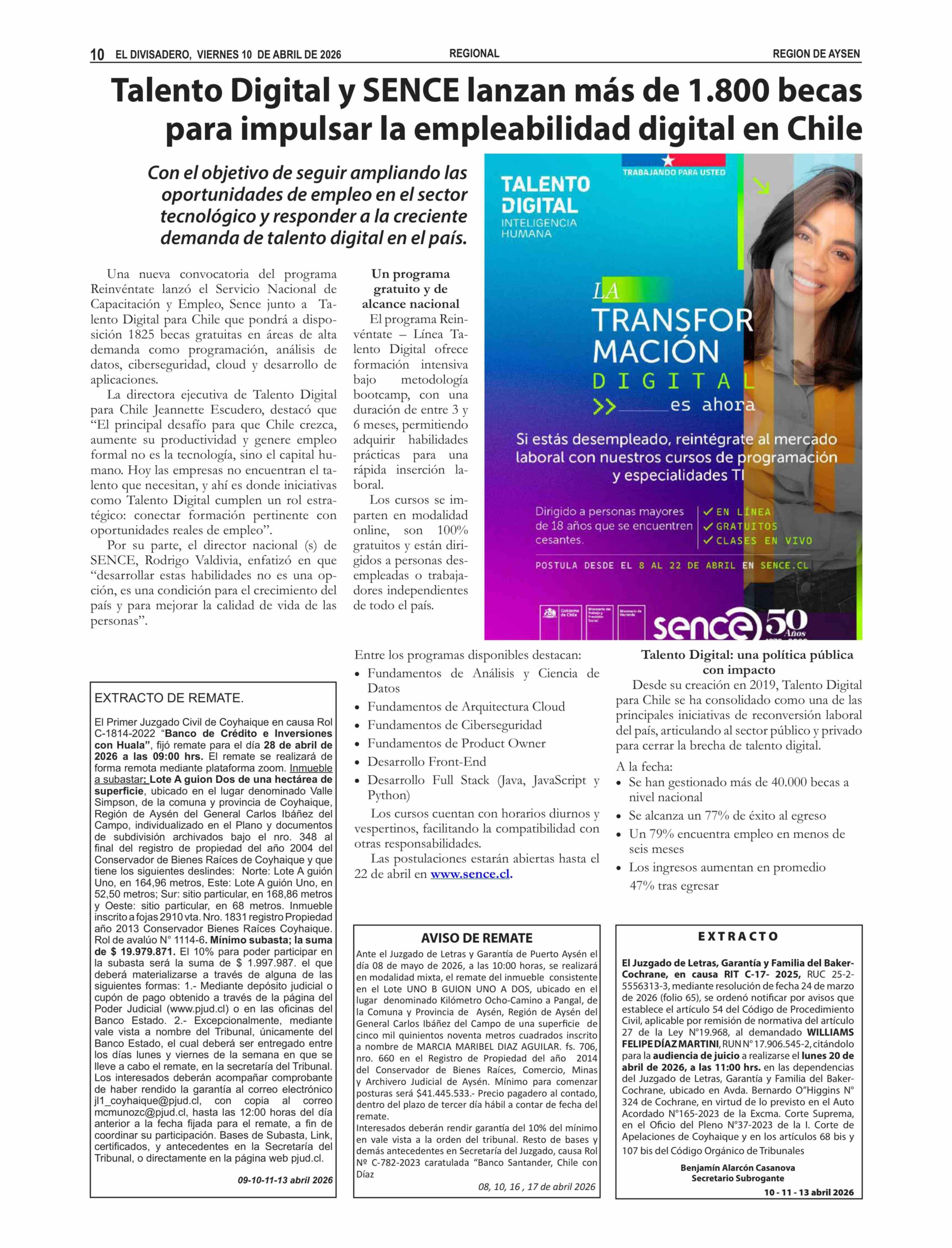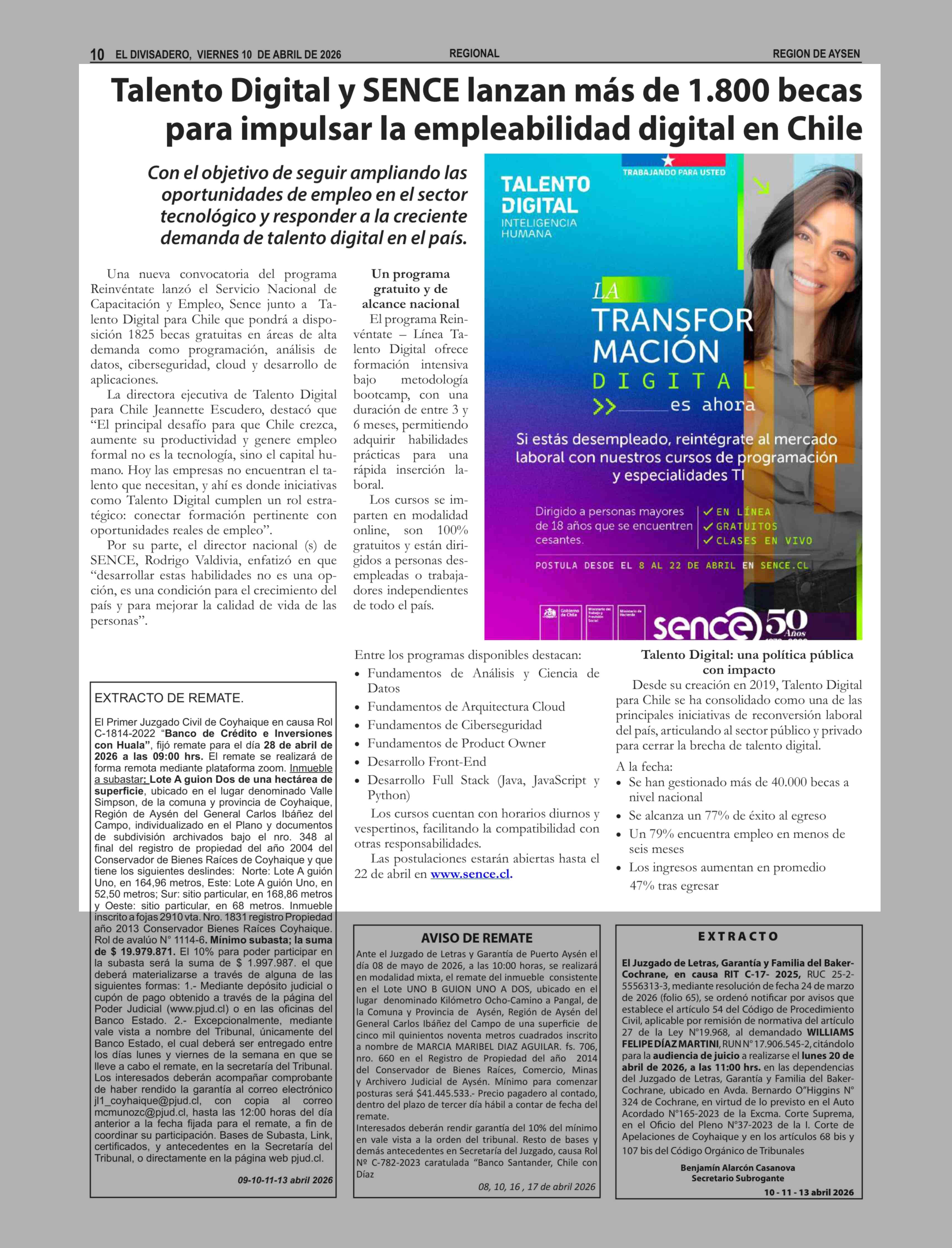 Fecha: 10-04-2026 Sector: Noticia general Región: Región Aysén del General Carlos Ibáñez del Campo