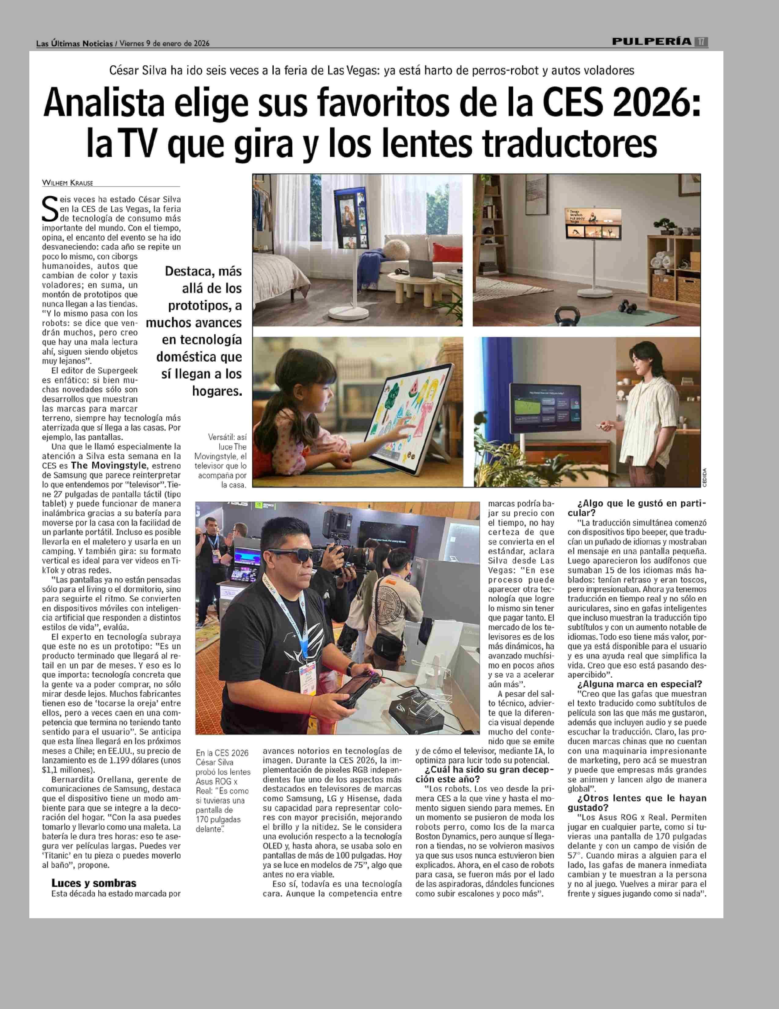 Analista elige sus favoritos de la CES 2026: la TV que gira y los lentes traductores 09-01-2026 Las Últimas Noticias |
