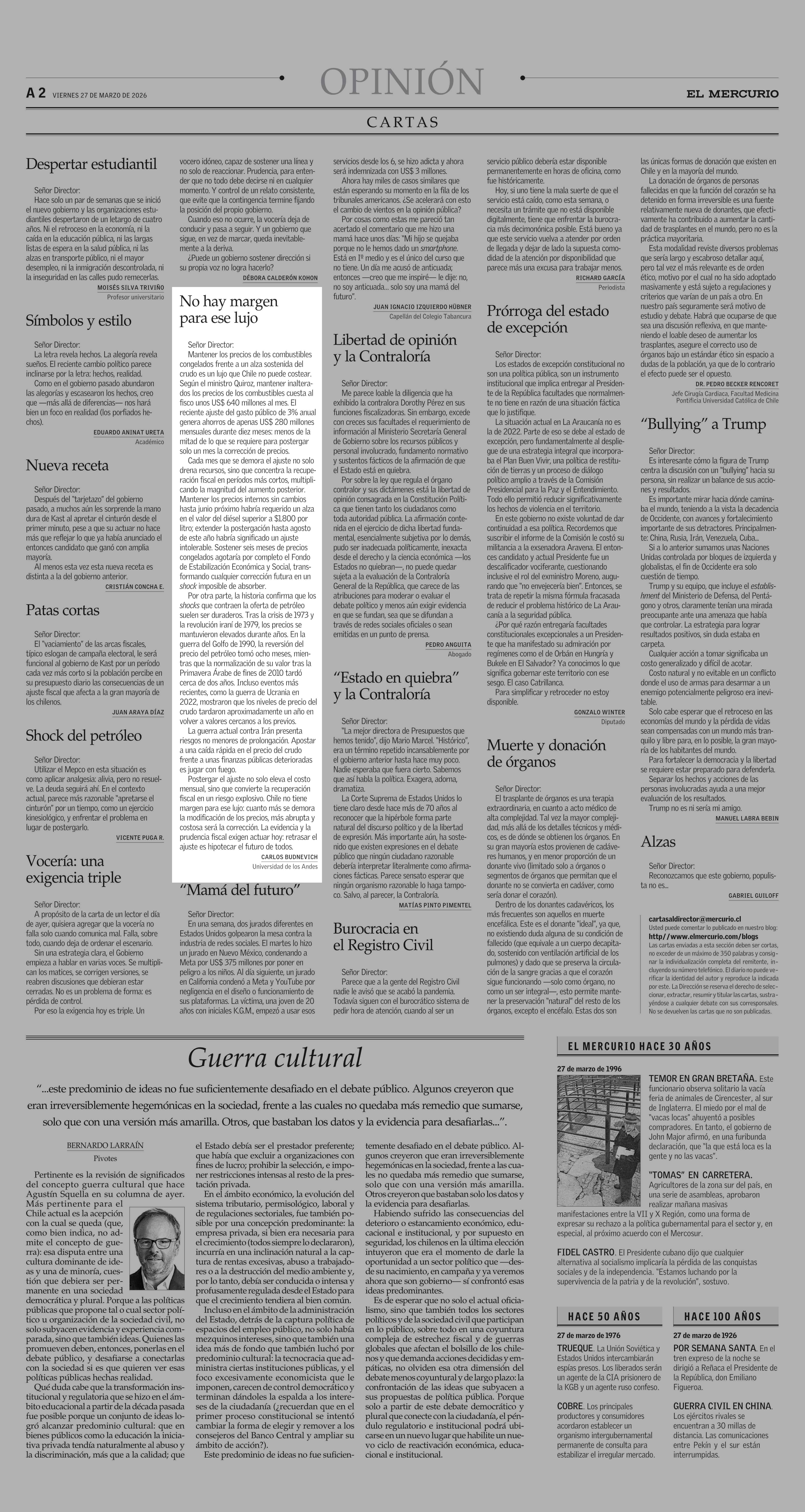 Cartas: No hay margen para ese lujo 27-03-2026 El Mercurio |