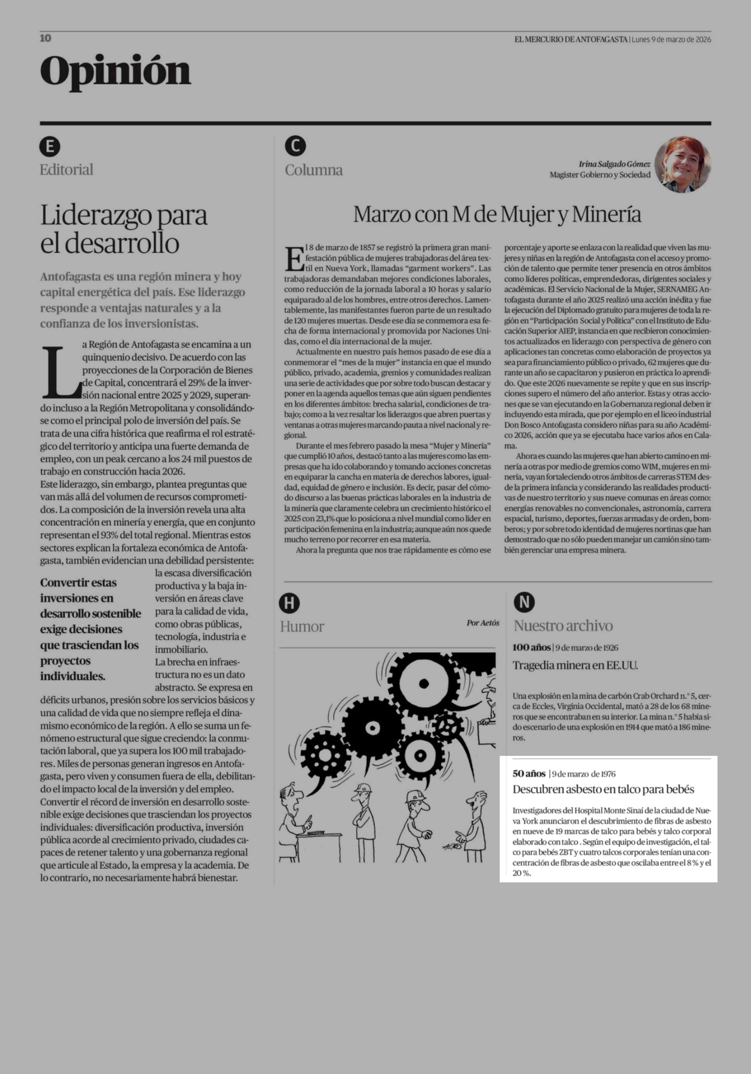 | Fecha: | 09-03-2026 | Sector: | Noticia general | Región: | Región de Antofagasta |