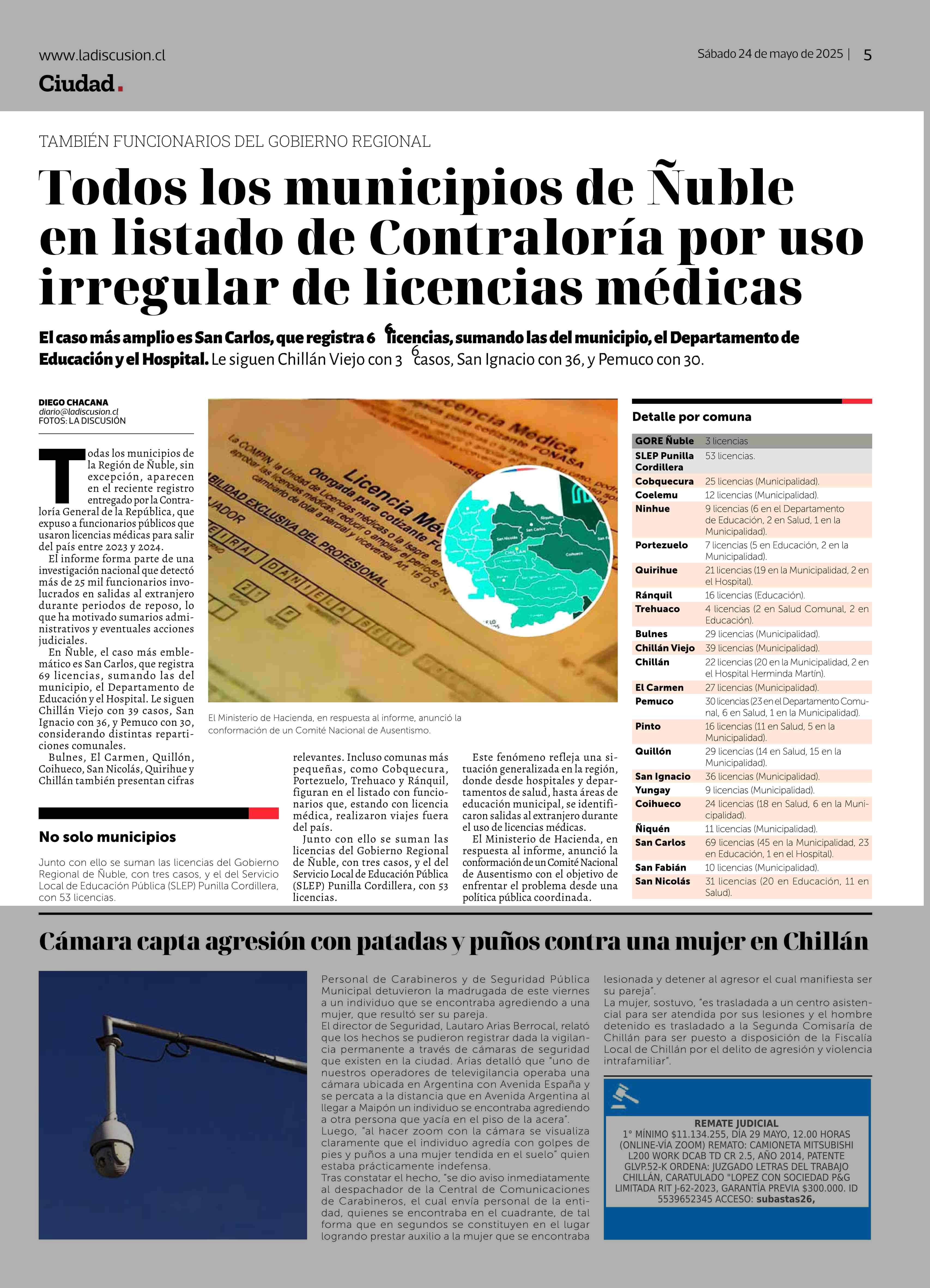Todos los municipios de Ñuble en listado de Contraloría por uso irregular de licencias médicas 24-05-2025 La Discusión |