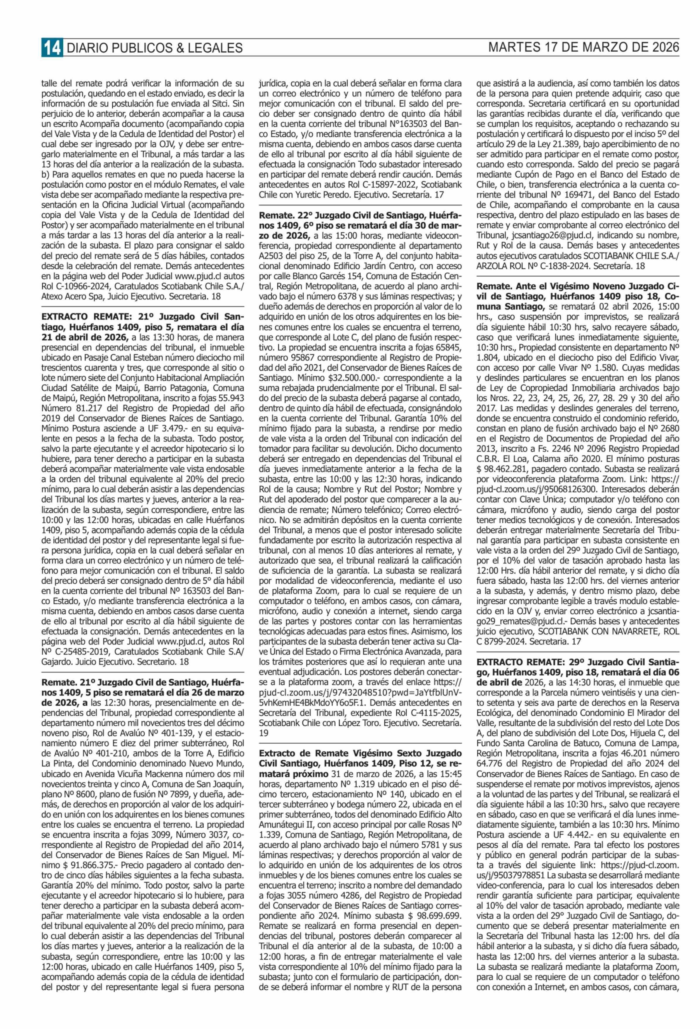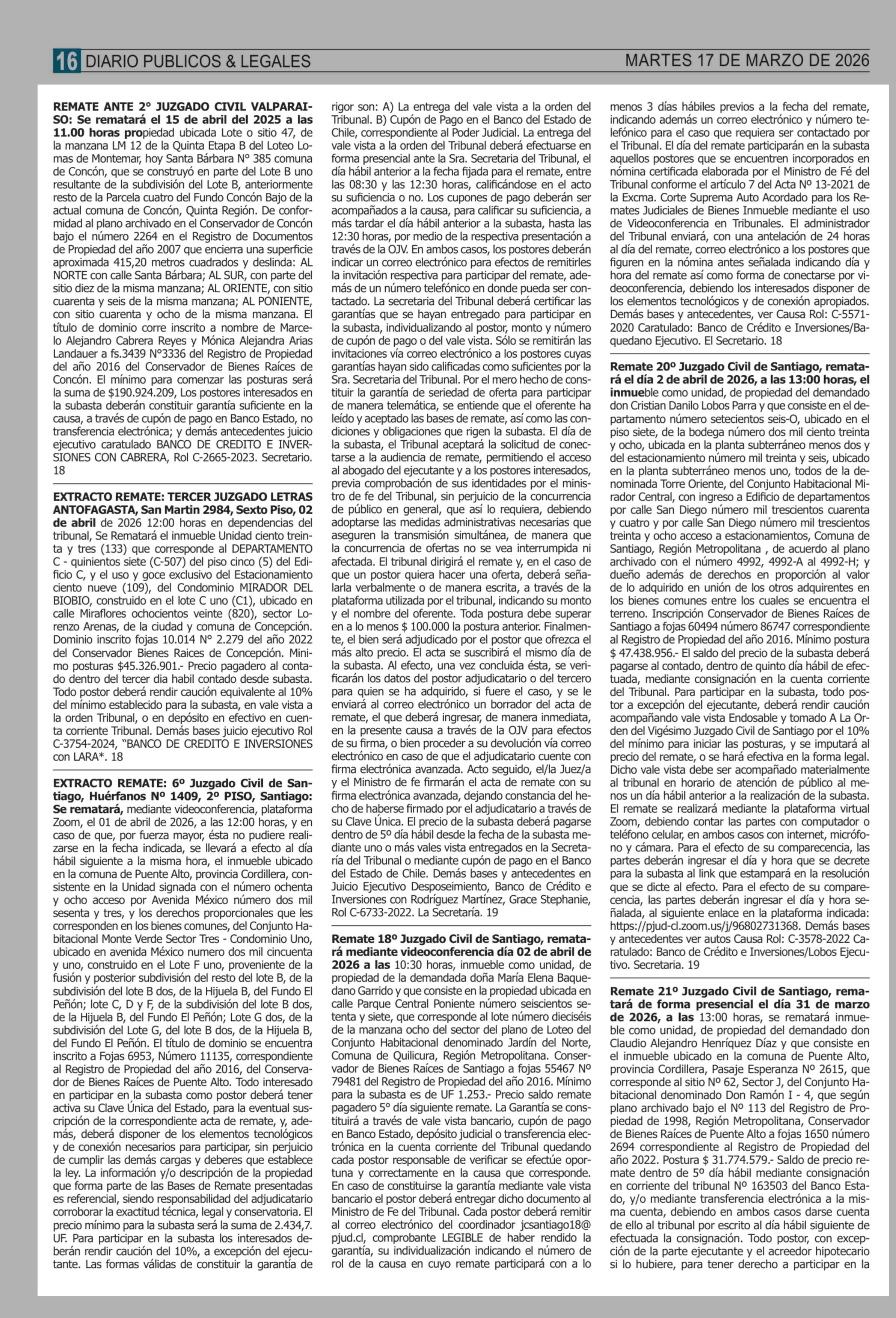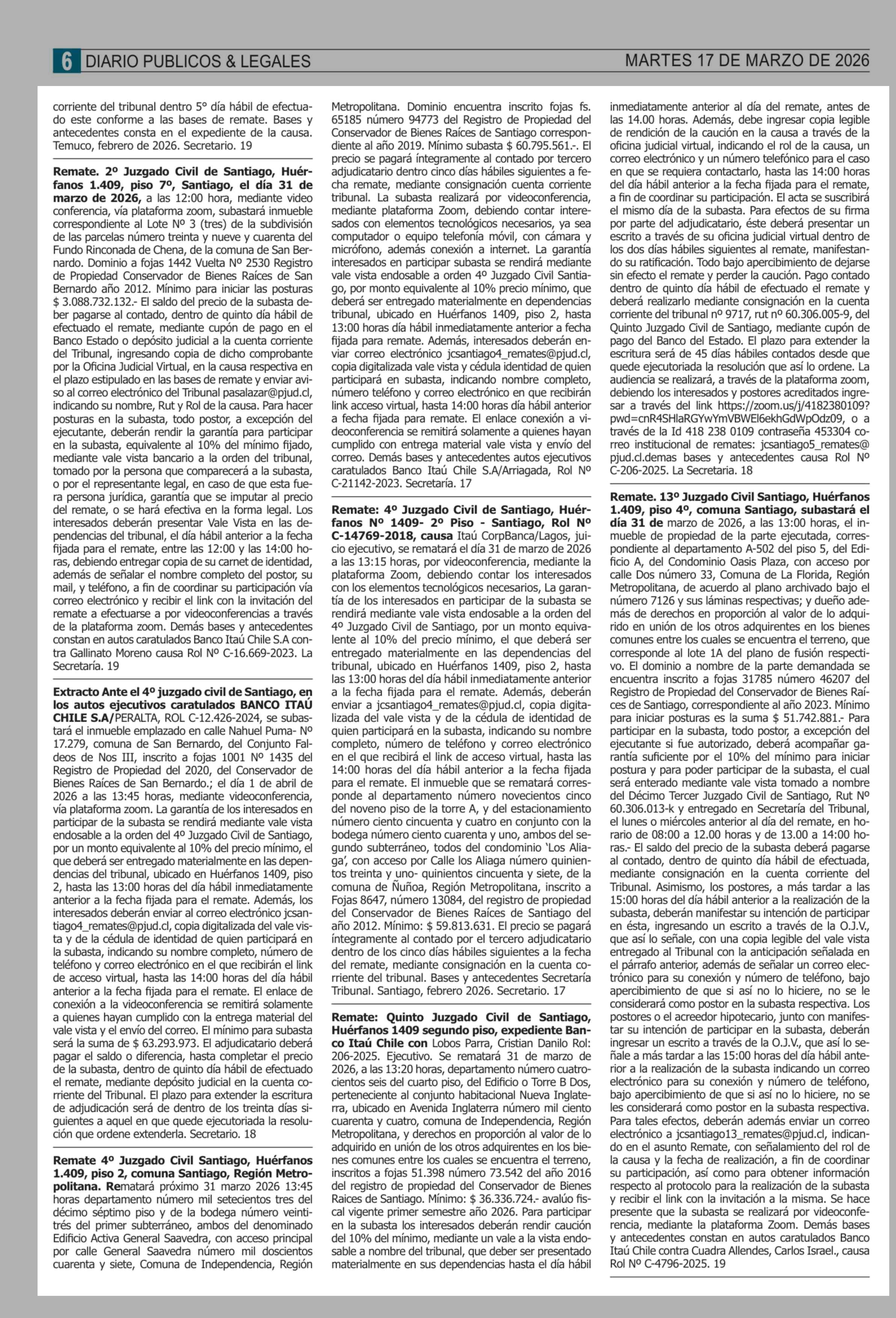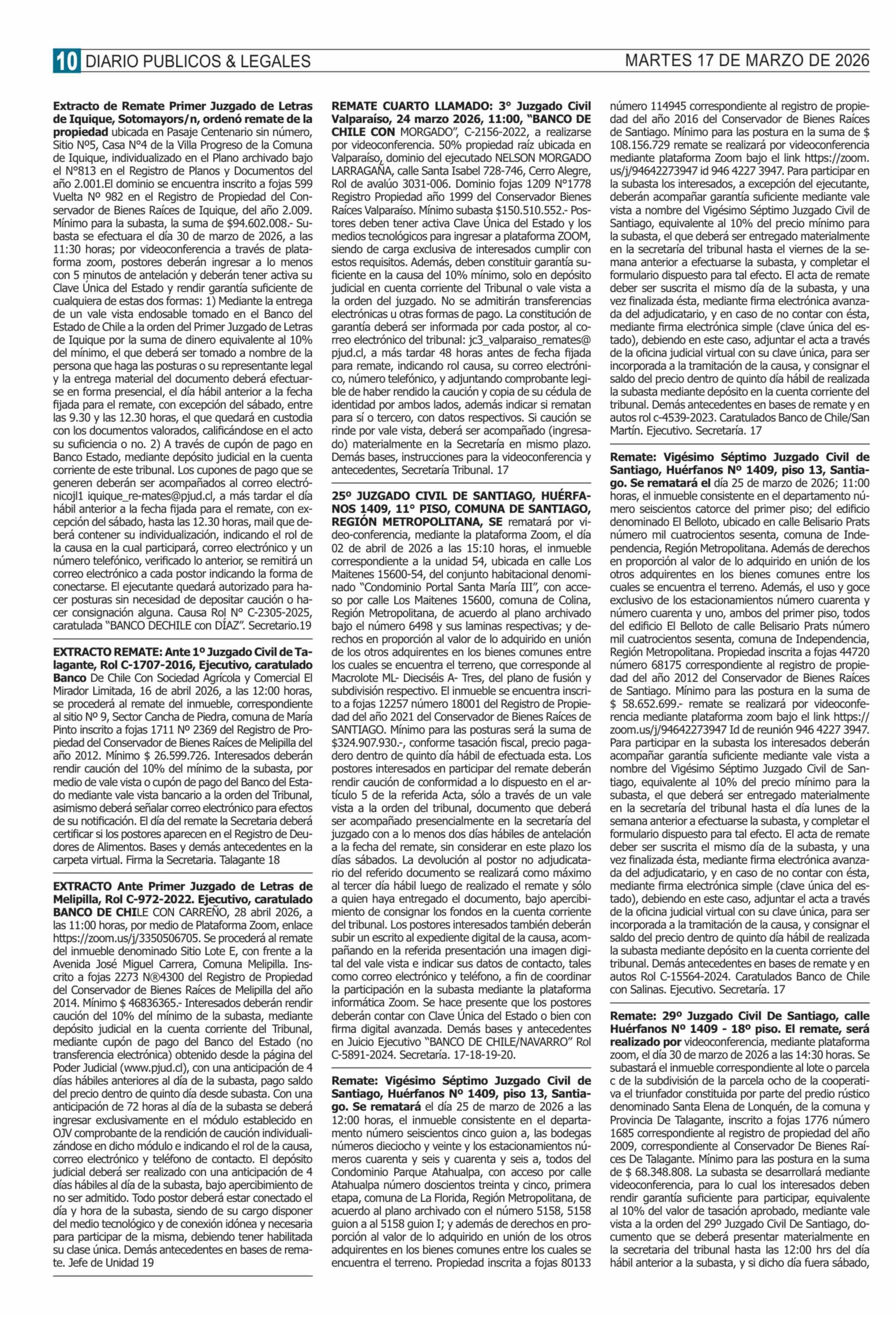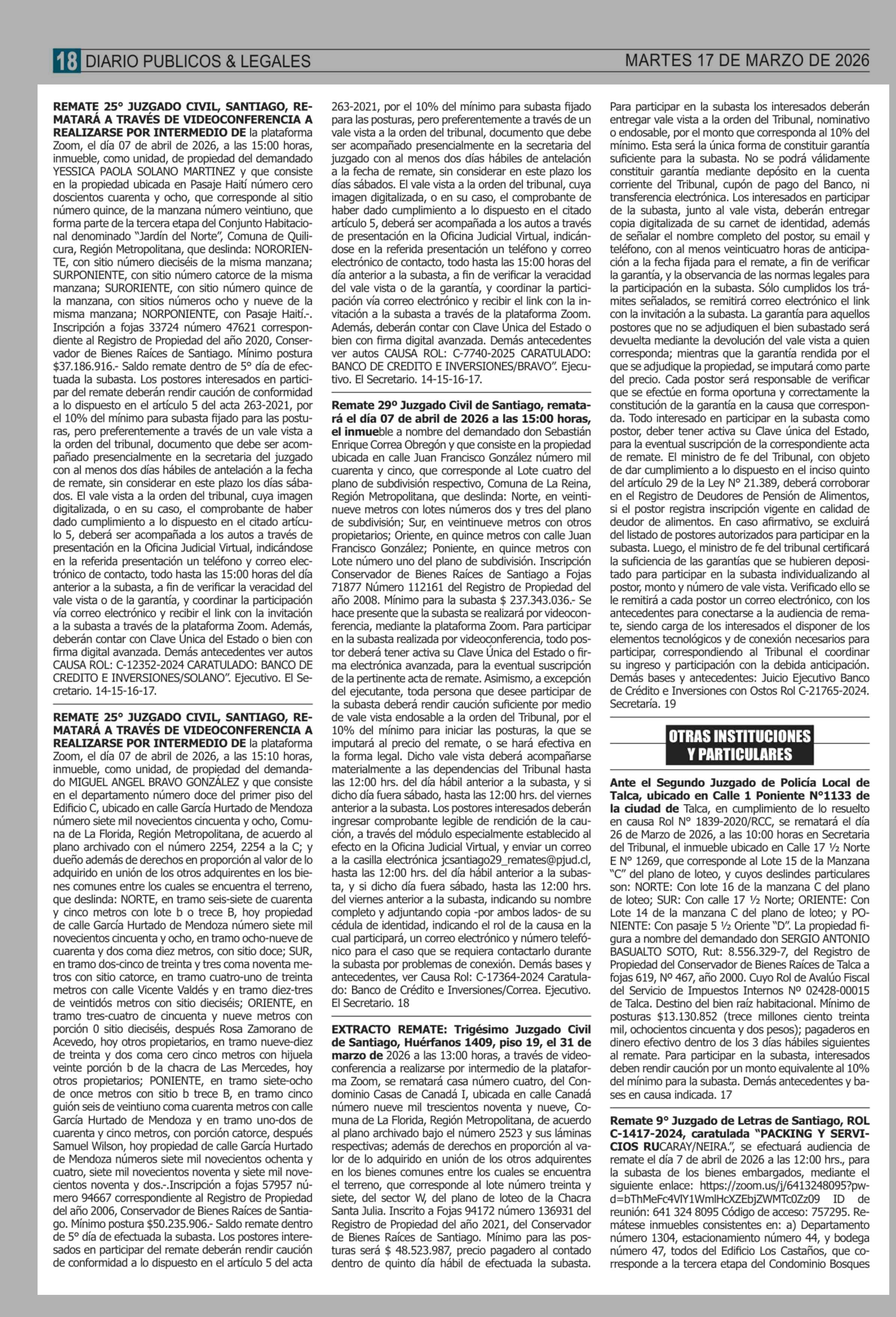 Fecha: 17-03-2026 Sector: Remates Región: Región Metropolitana de Santiago