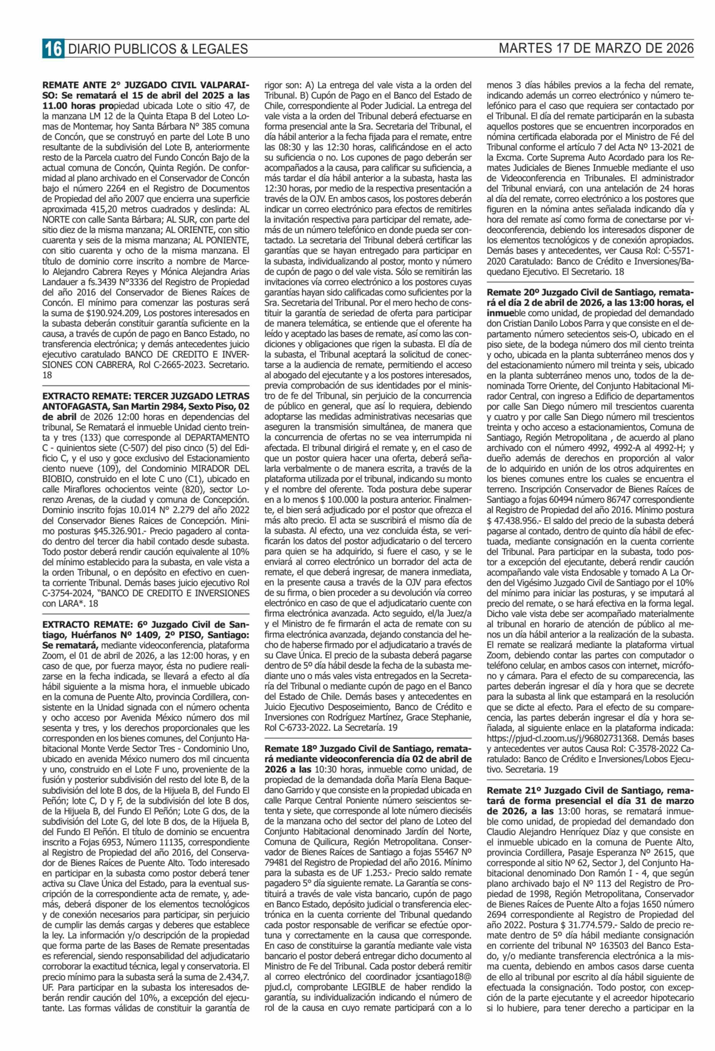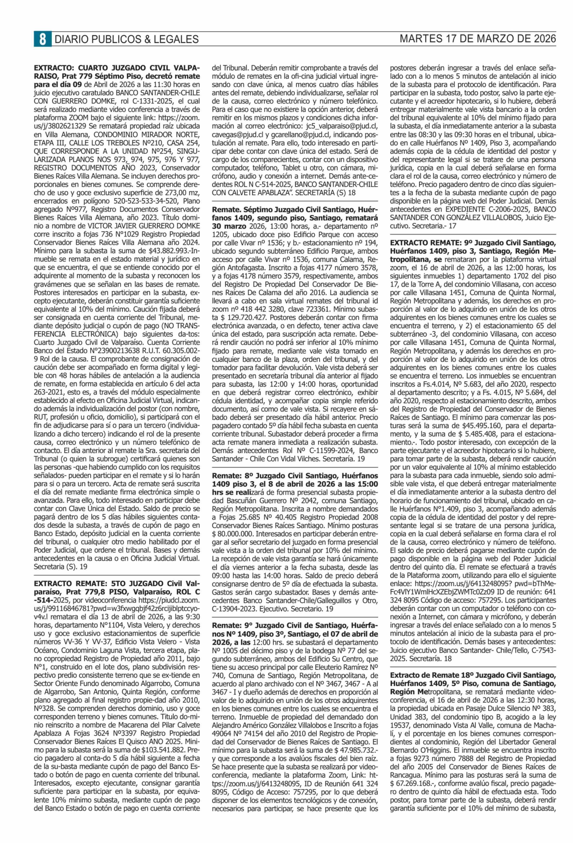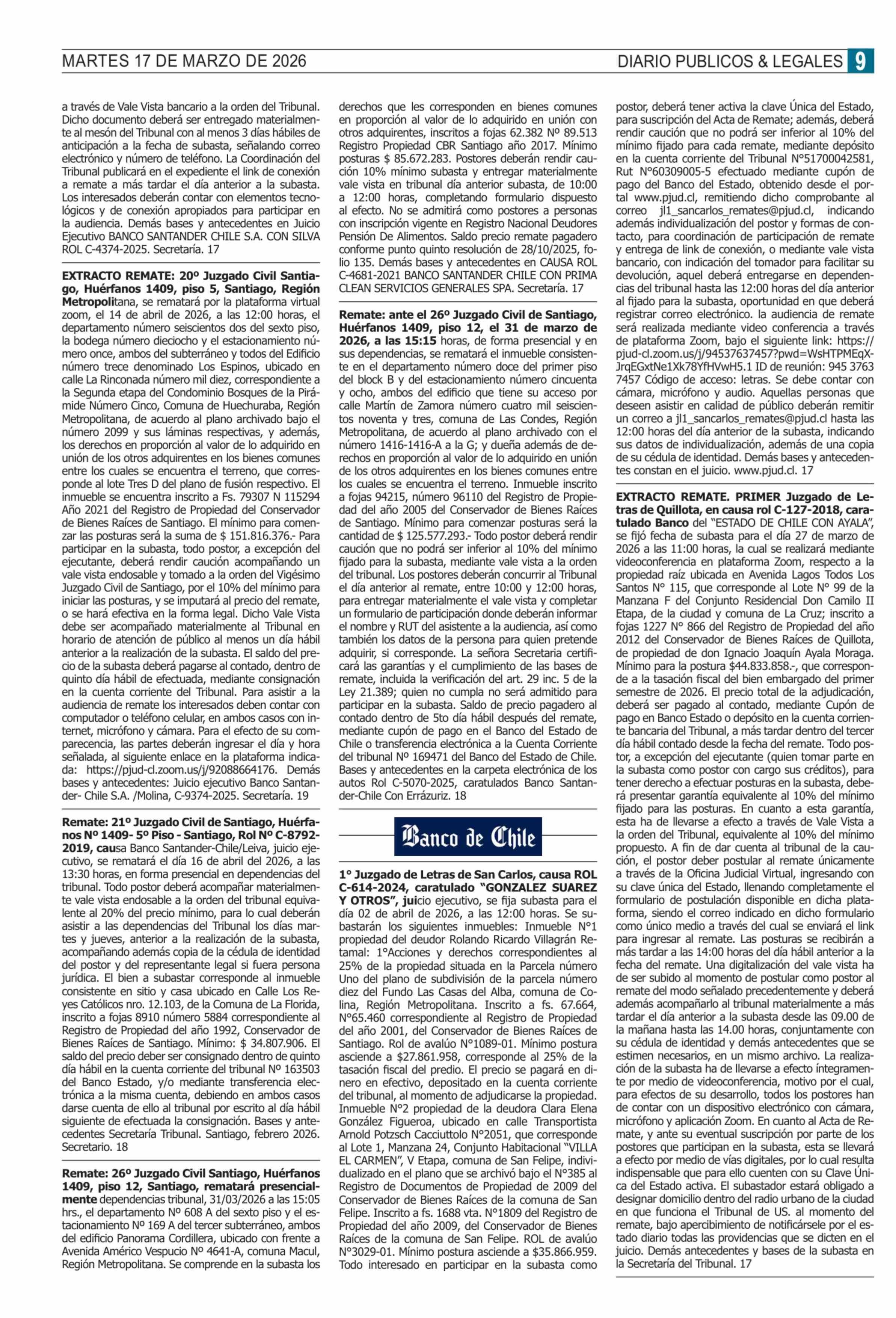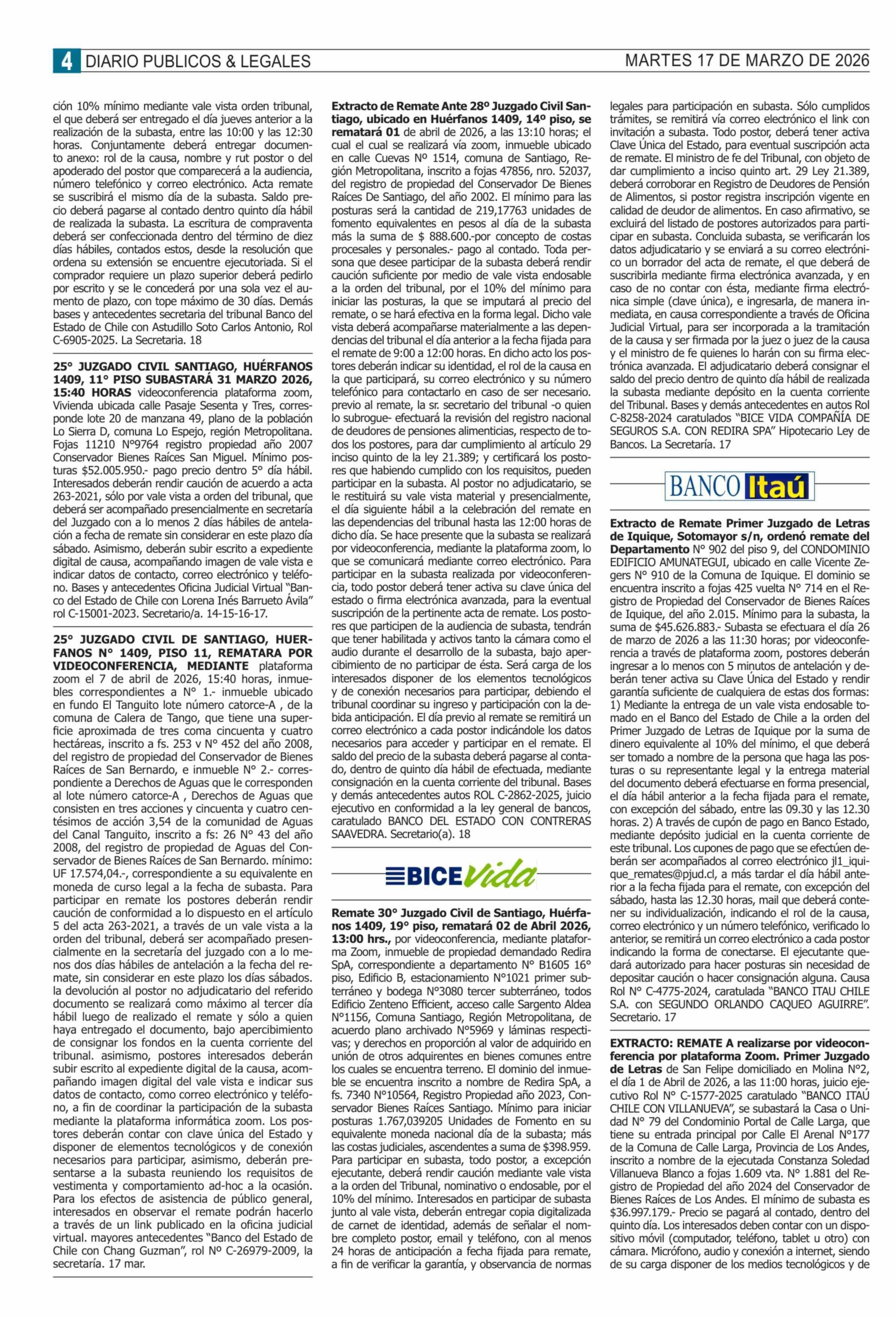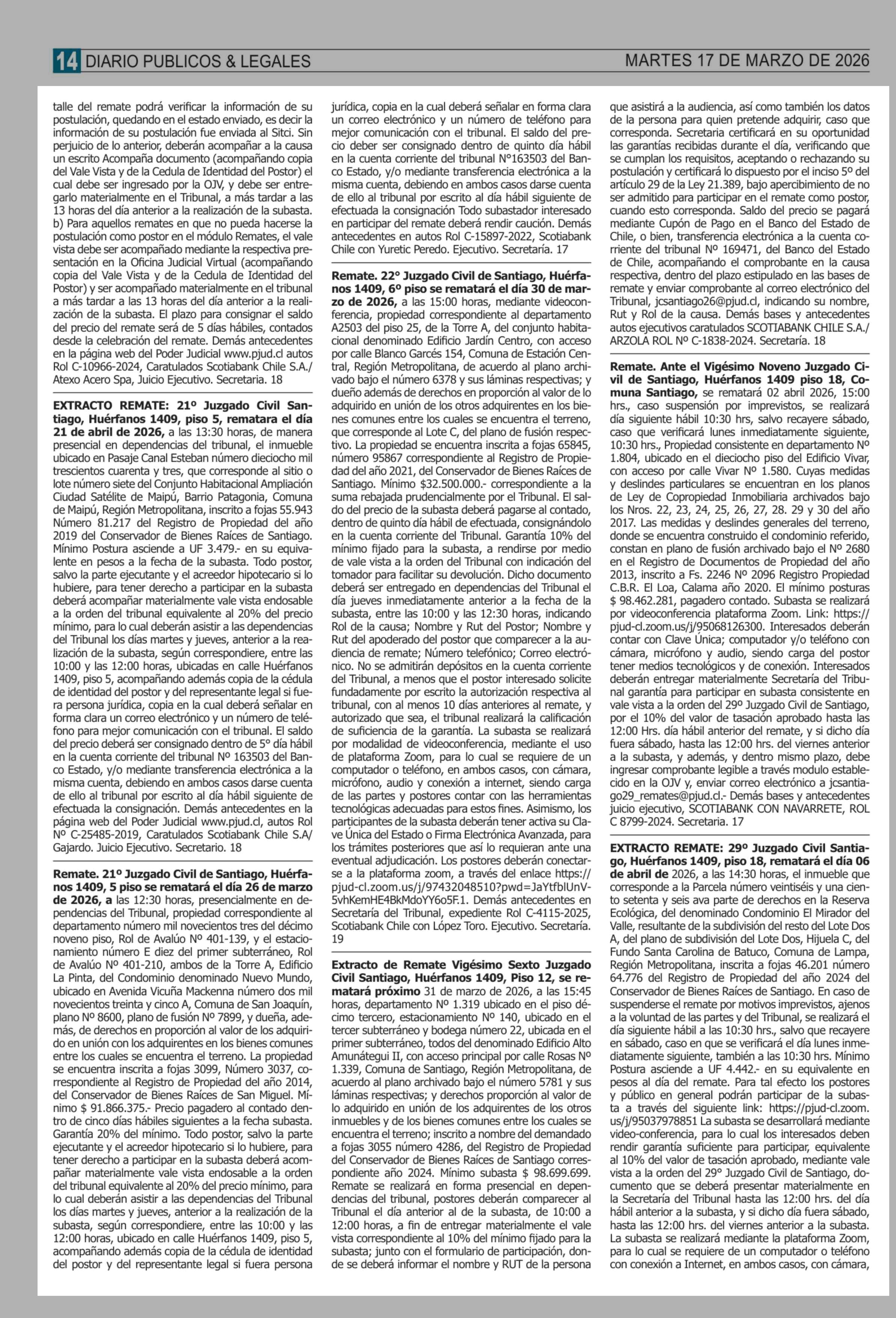 Fecha: 17-03-2026 Sector: Remates Región: Región Metropolitana de Santiago