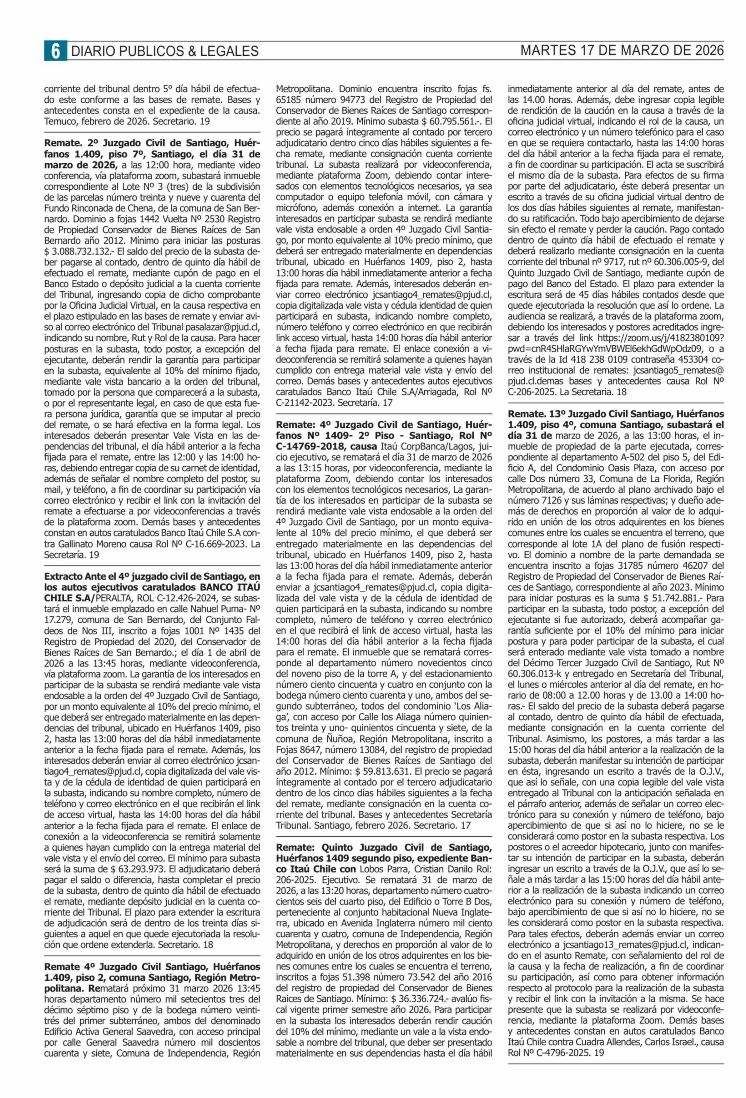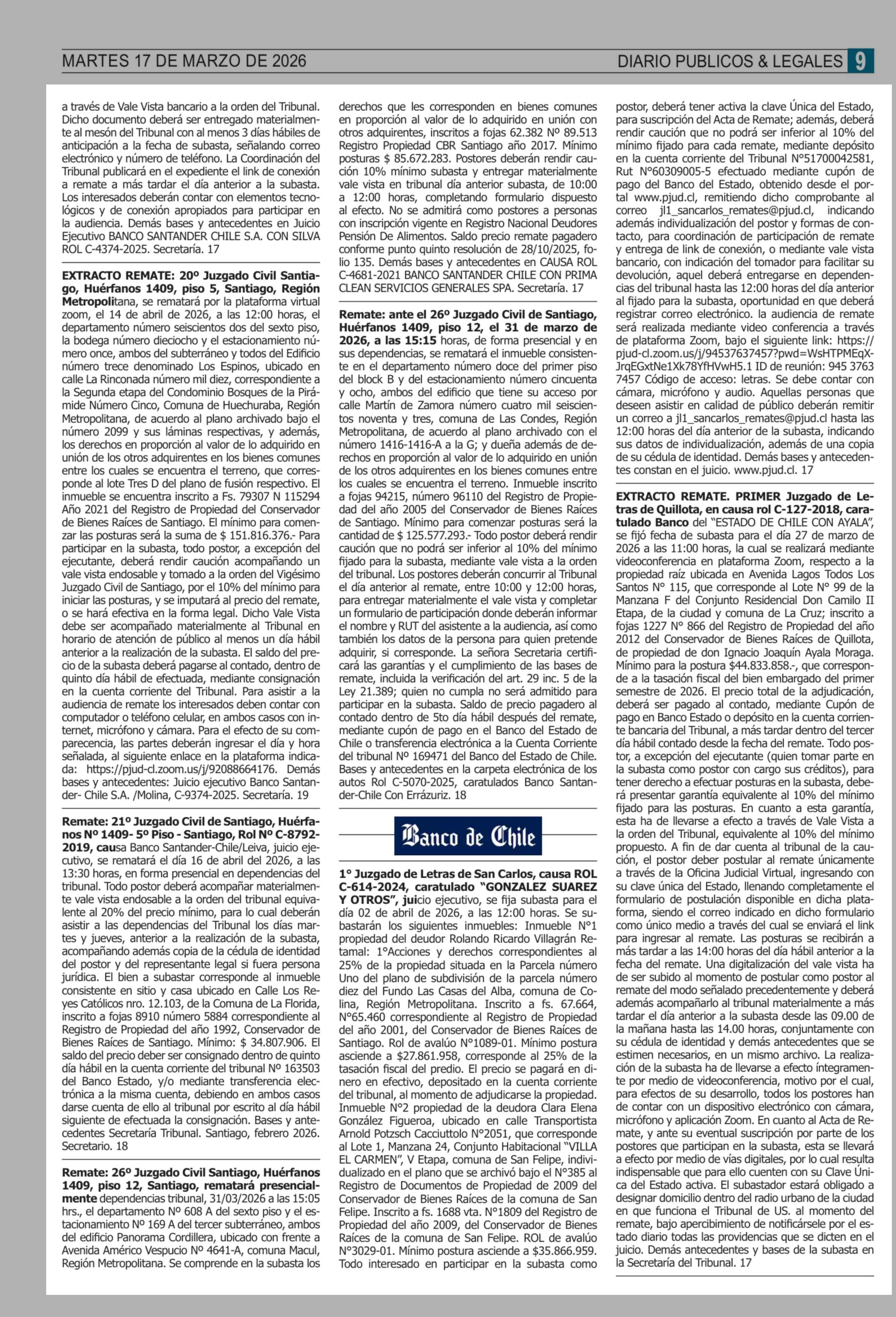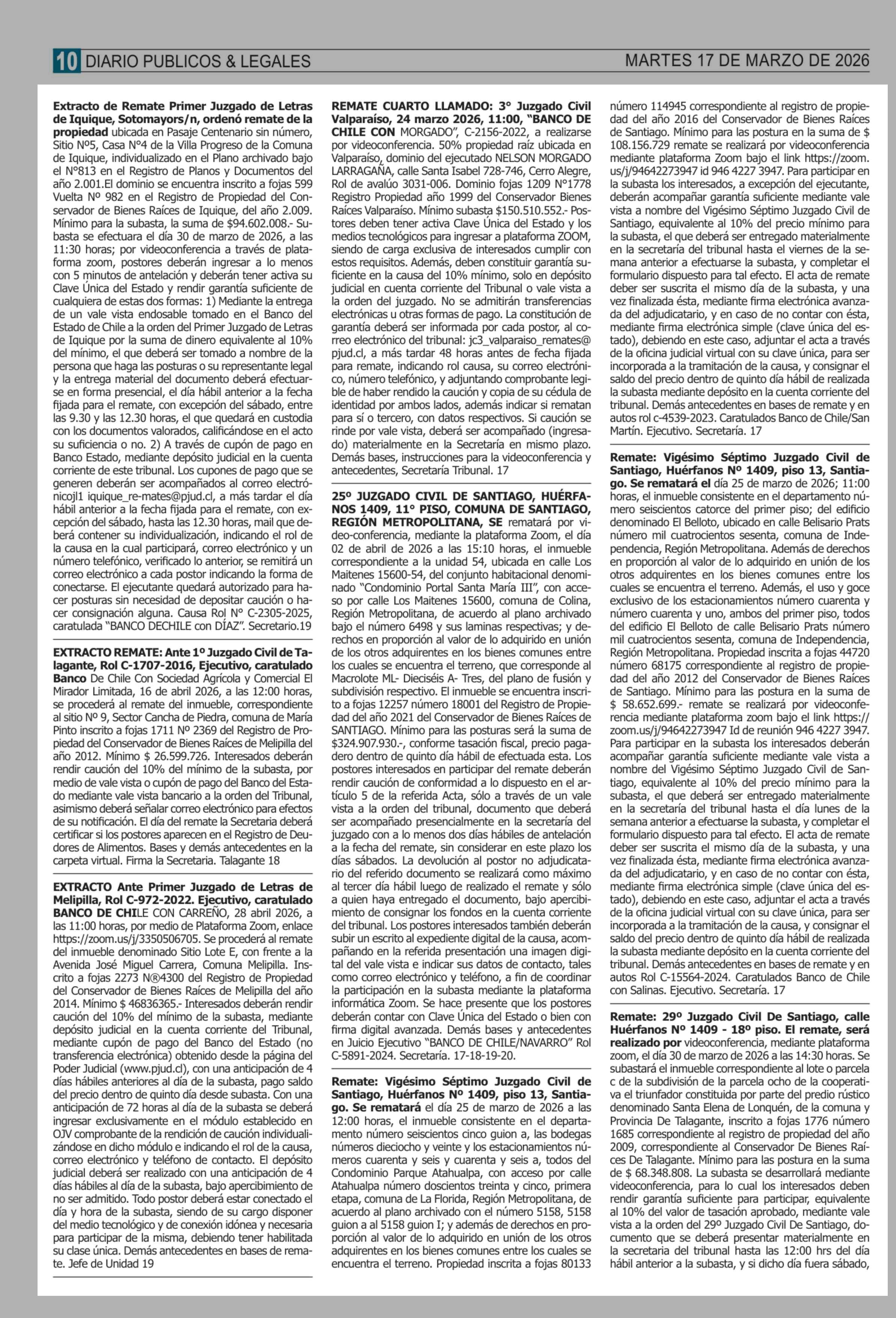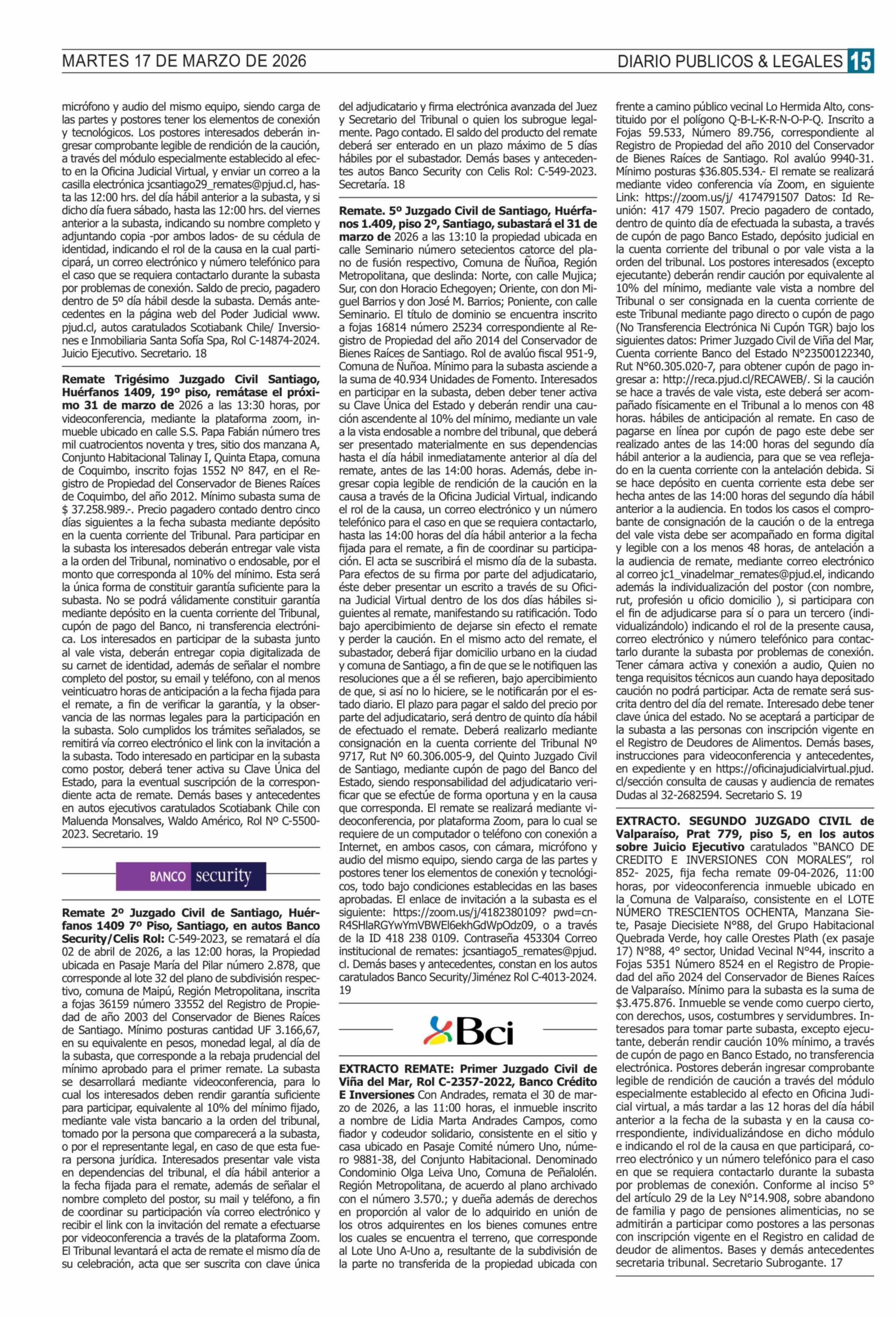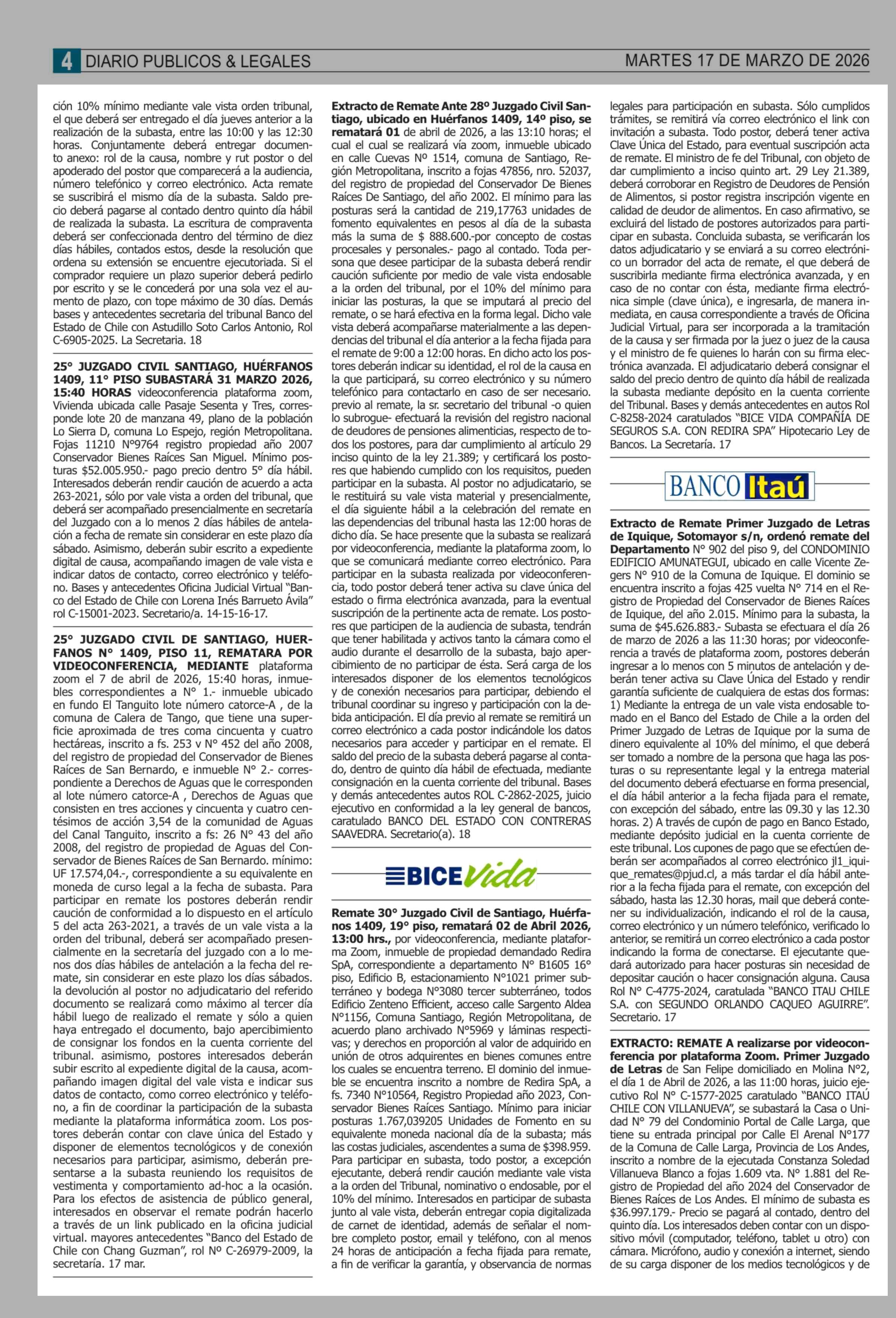 Fecha: 17-03-2026 Sector: Remates Región: Región Metropolitana de Santiago