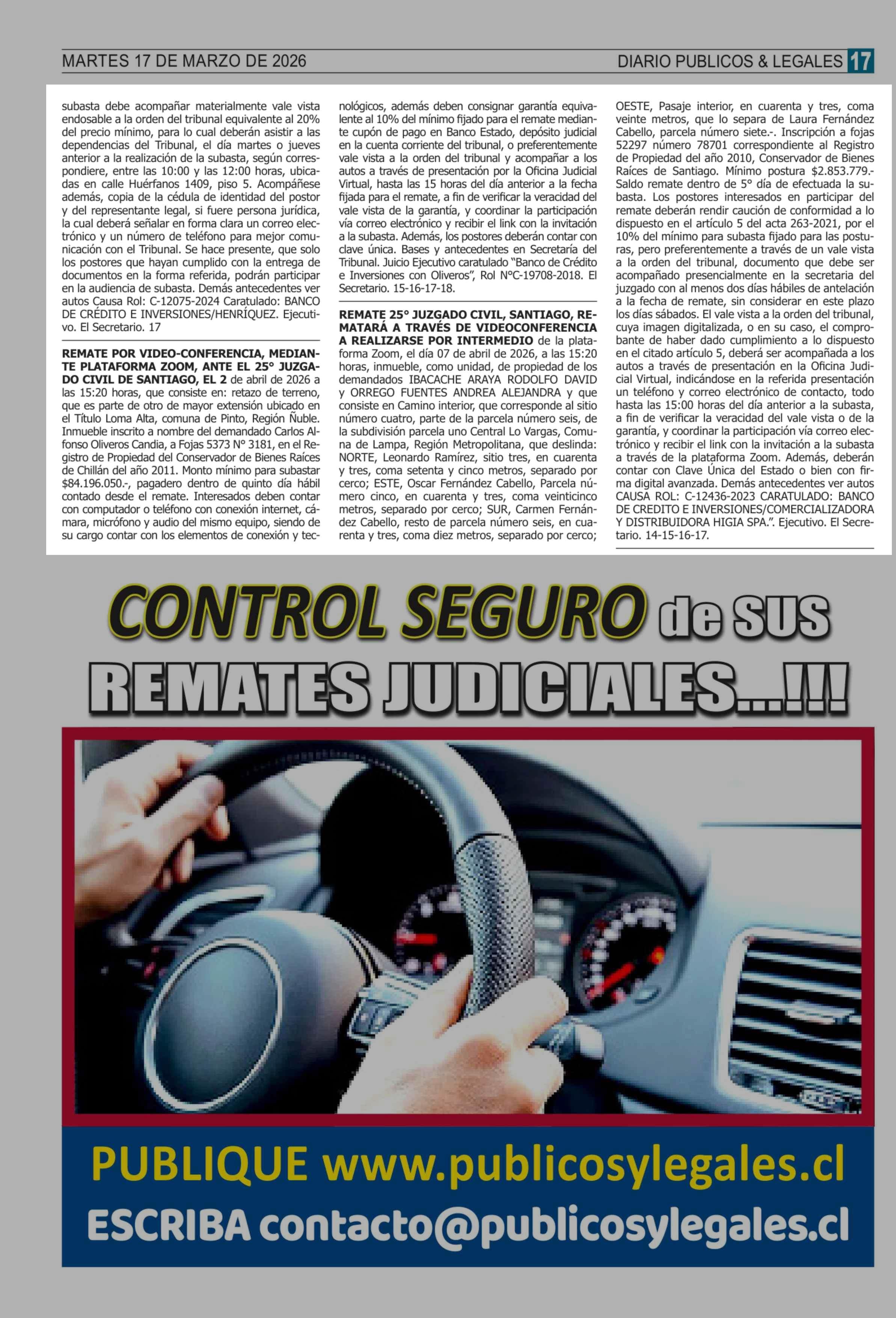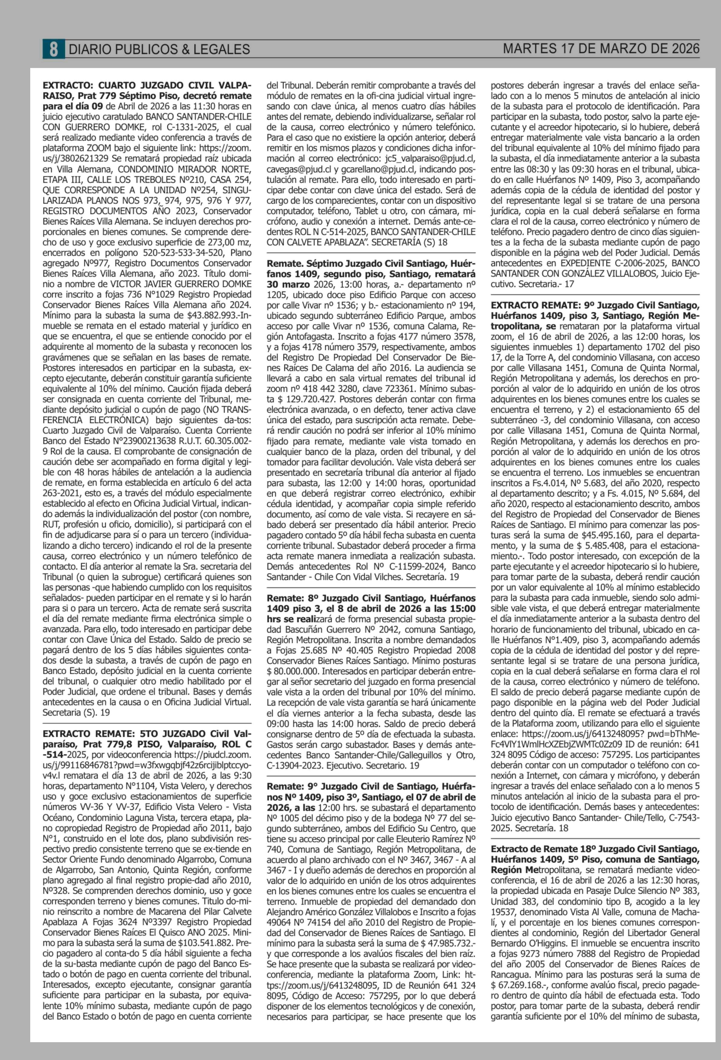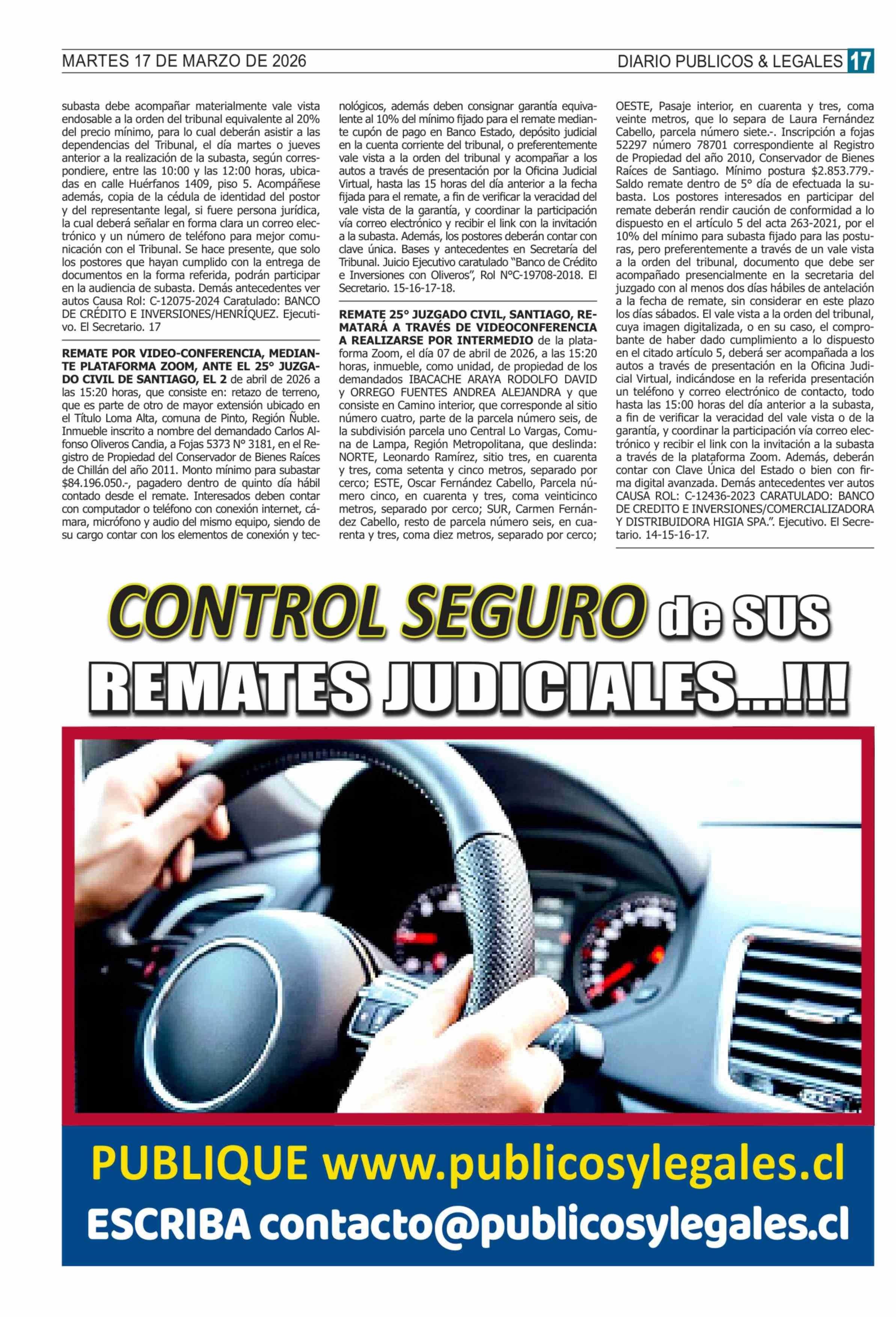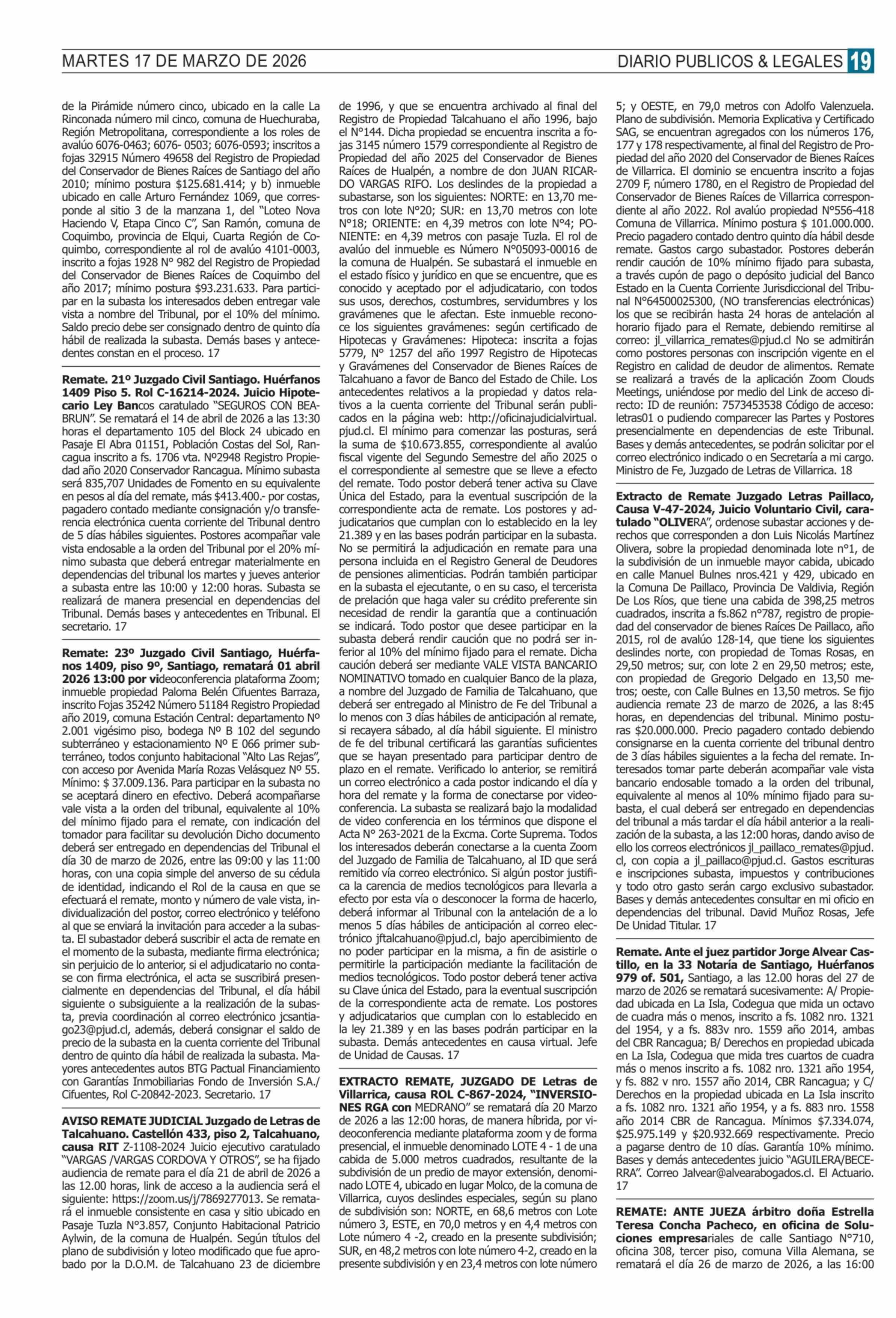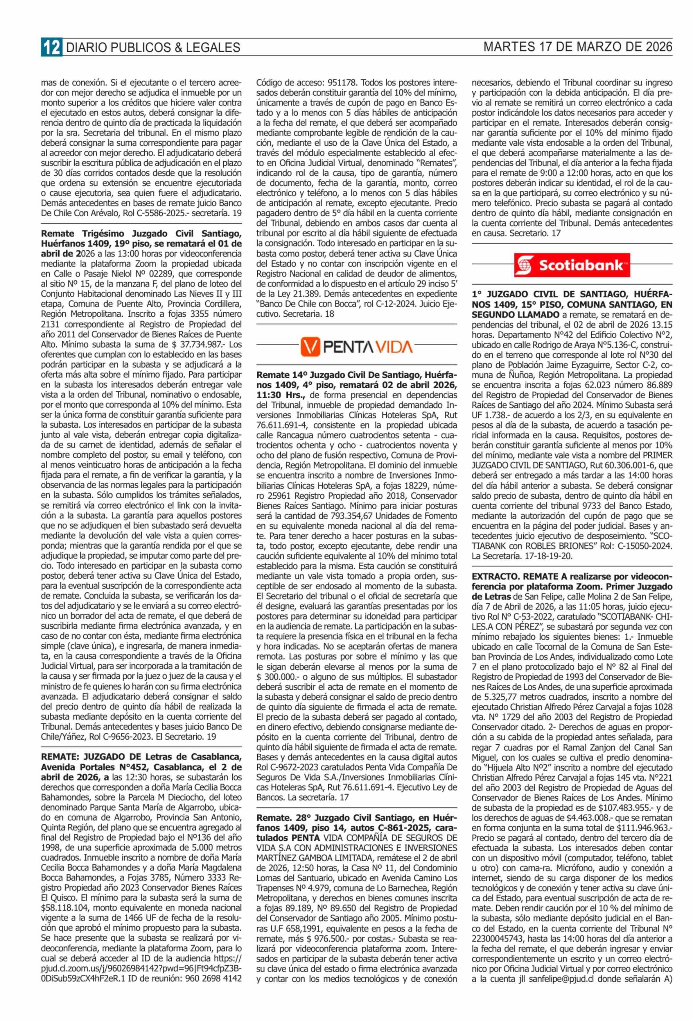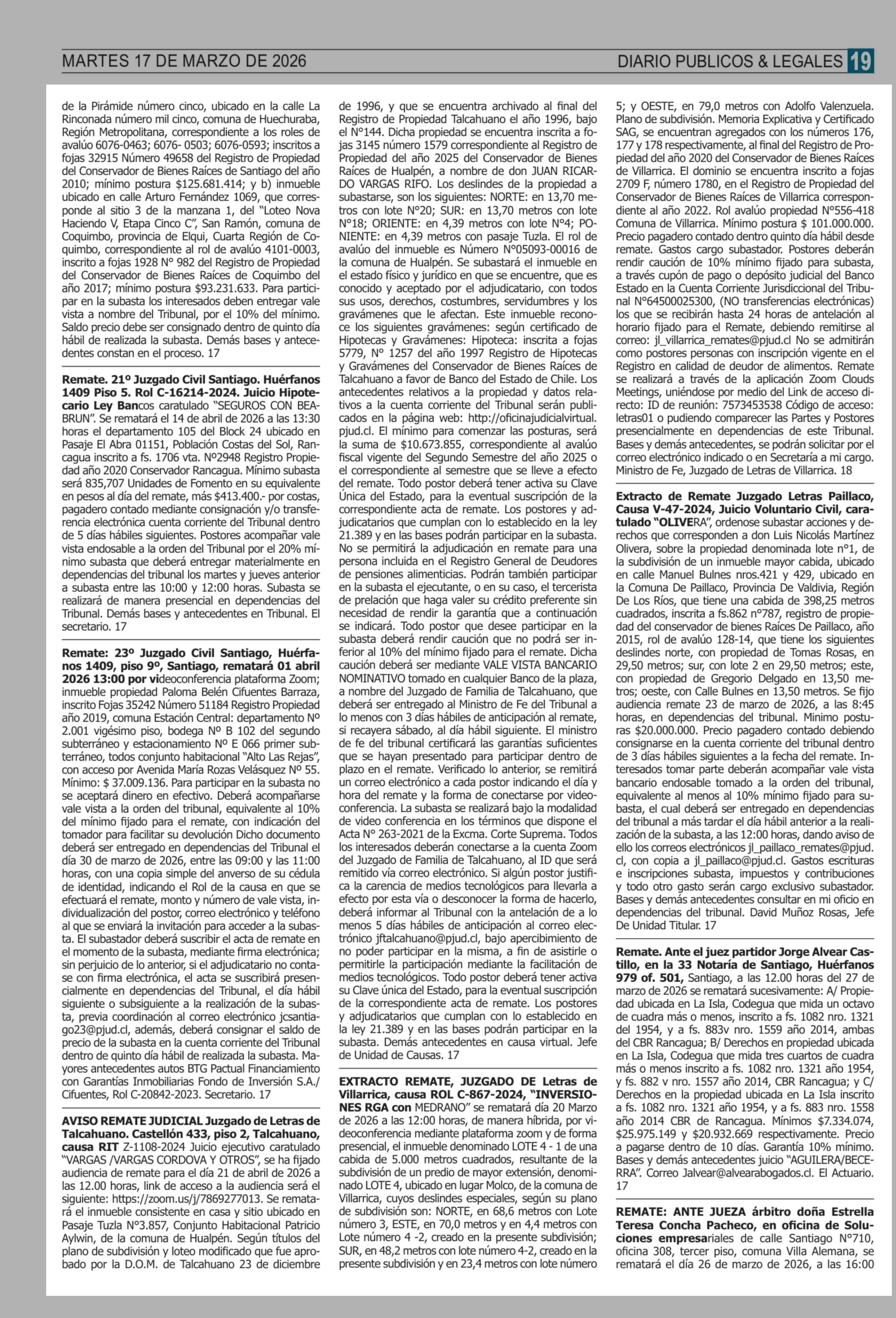 Fecha: 17-03-2026 Sector: Remates Región: Región Metropolitana de Santiago